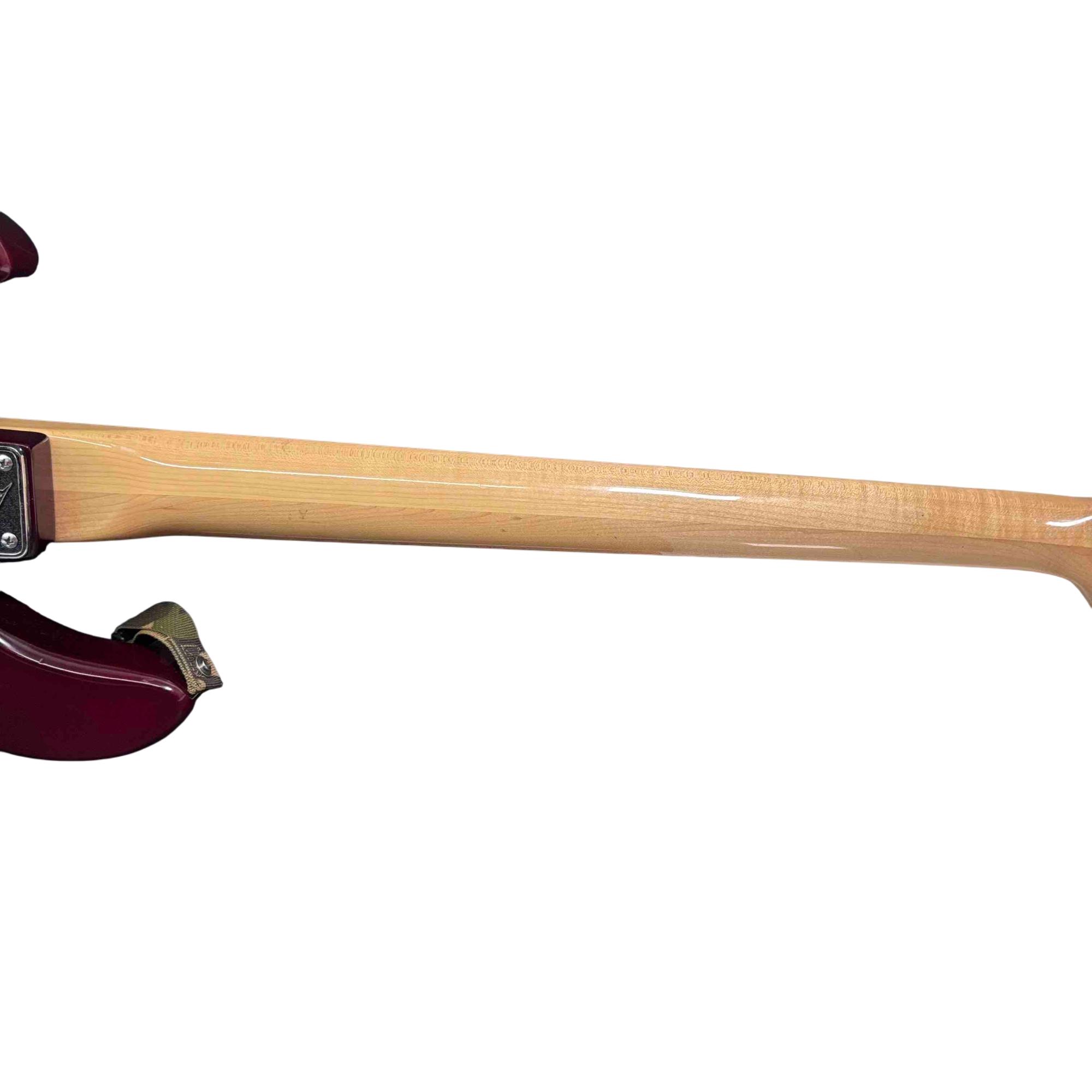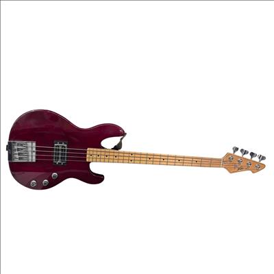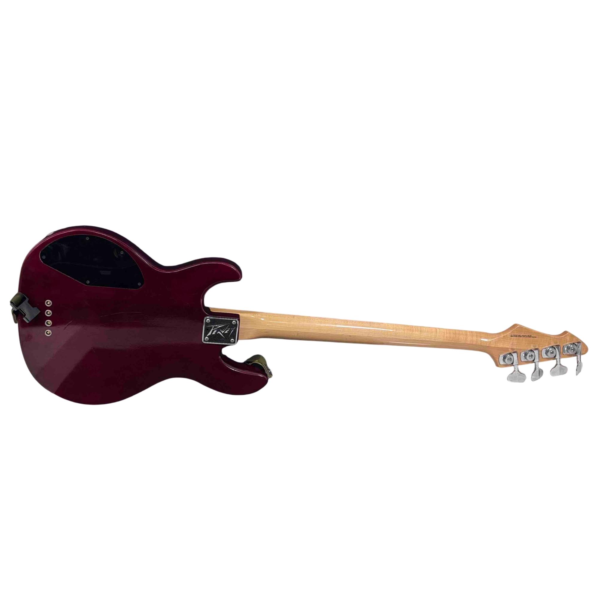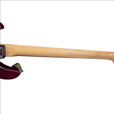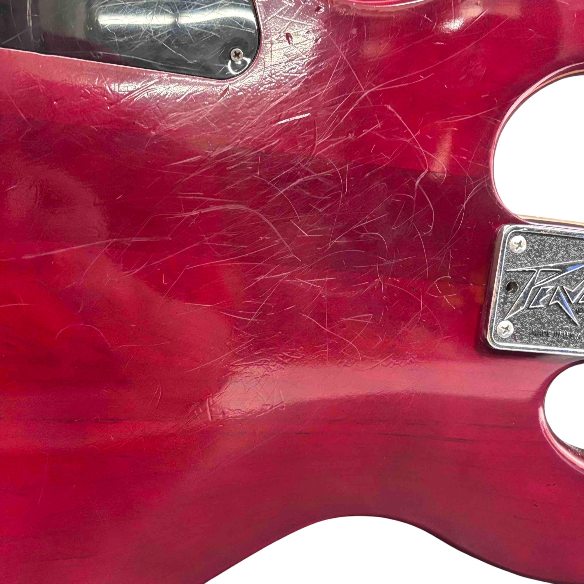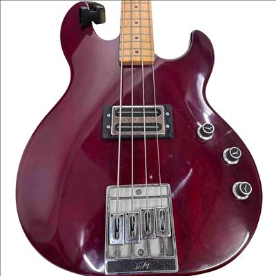 Peavey T-45 Electric Bass Guitar with Hard Case - Burgundy, Made in USA. This classic electric bass features a rich burgundy finish and is crafted in the USA, offering solid build quality and vintage tone. It comes with a protective hard case and showcases detailed craftsmanship including fine tuning hardware and a smooth playing neck ideal for professional musicians.