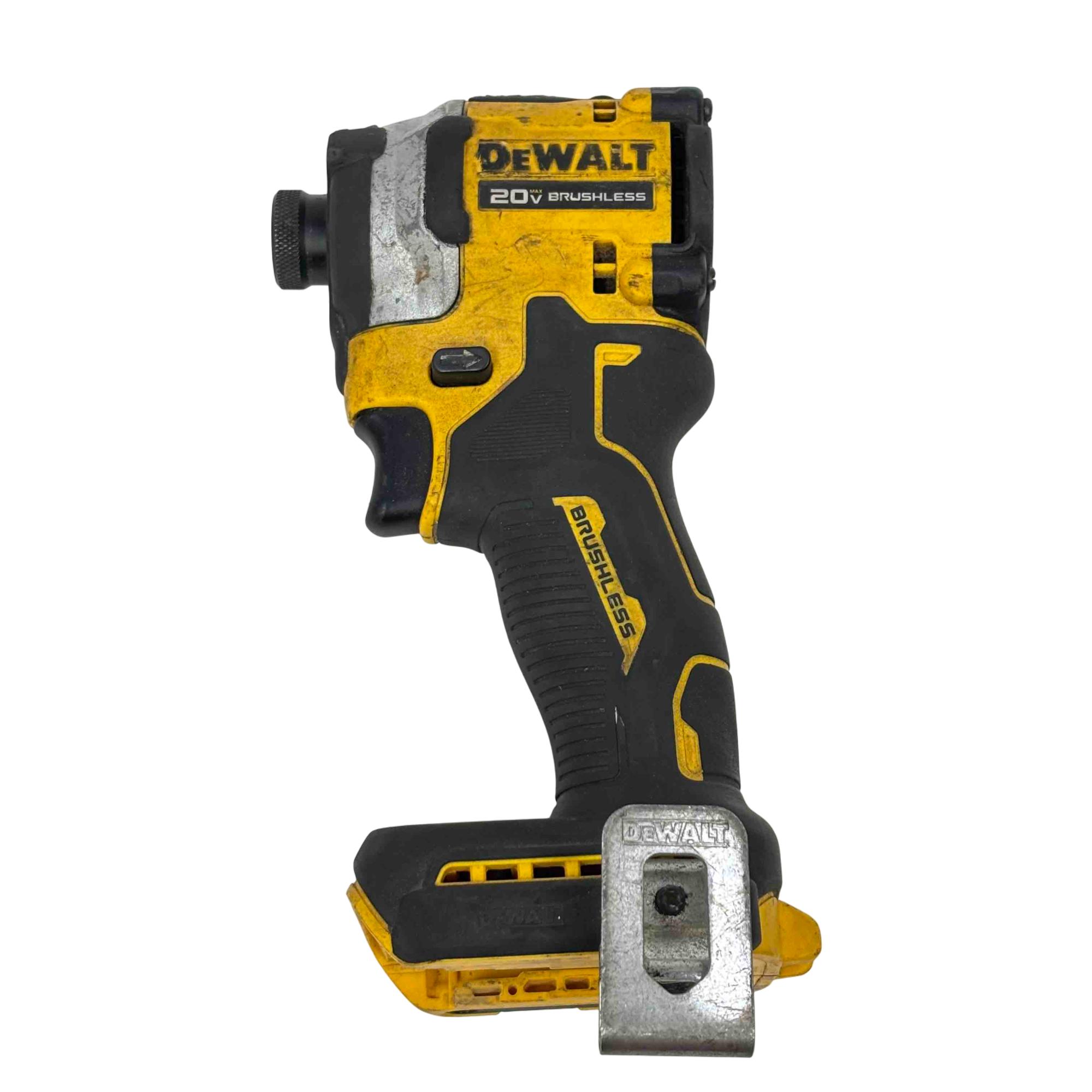 The DeWALT 20V MAX Brushless Cordless 1/4" Impact Driver features a powerful brushless motor delivering up to 3,250 RPM and 3,800 impacts per minute for efficient fastening. This compact, yellow and black cordless impact driver is designed for heavy-duty performance in handheld drilling and impact driving applications, compatible with DEWALT 20V batteries (sold separately).