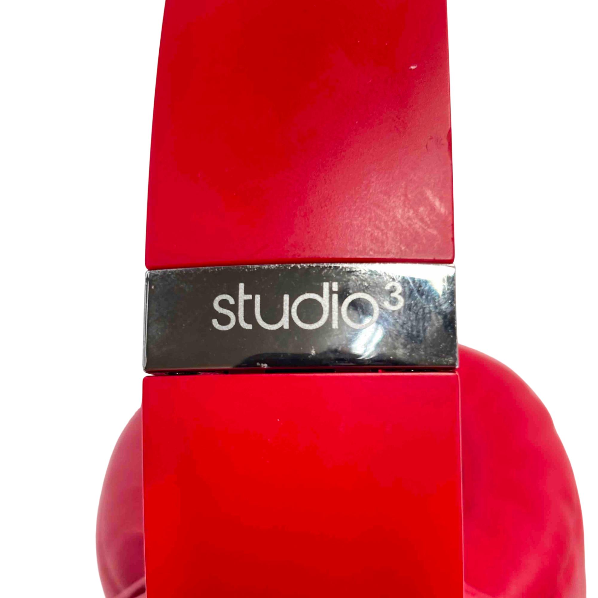 The Apple Beats Studio3 Wireless Over-Ear Headphones deliver premium, noise-canceling sound with sleek red leather ear cushions and a durable design. These refurbished studio-quality headphones feature ergonomic ear cups and advanced wireless technology for an immersive audio experience.