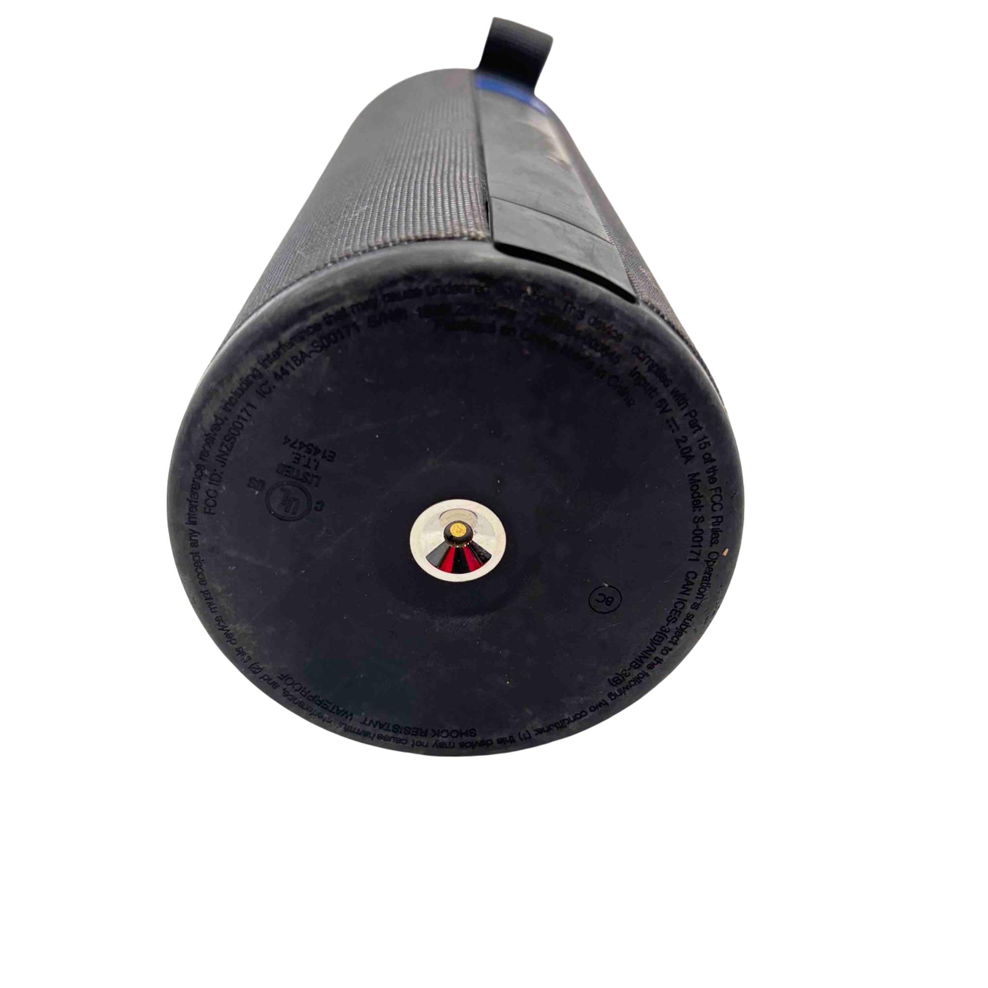 The Ultimate Ears Boom 3 Portable Waterproof Bluetooth Speaker delivers powerful 360-degree sound with deep bass and clear highs. This rugged, waterproof speaker features a sleek black design with distinctive white and black stripes, making it perfect for outdoor and indoor use. Enjoy wireless Bluetooth connectivity and durable construction optimized for active lifestyles.