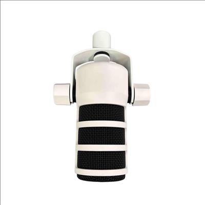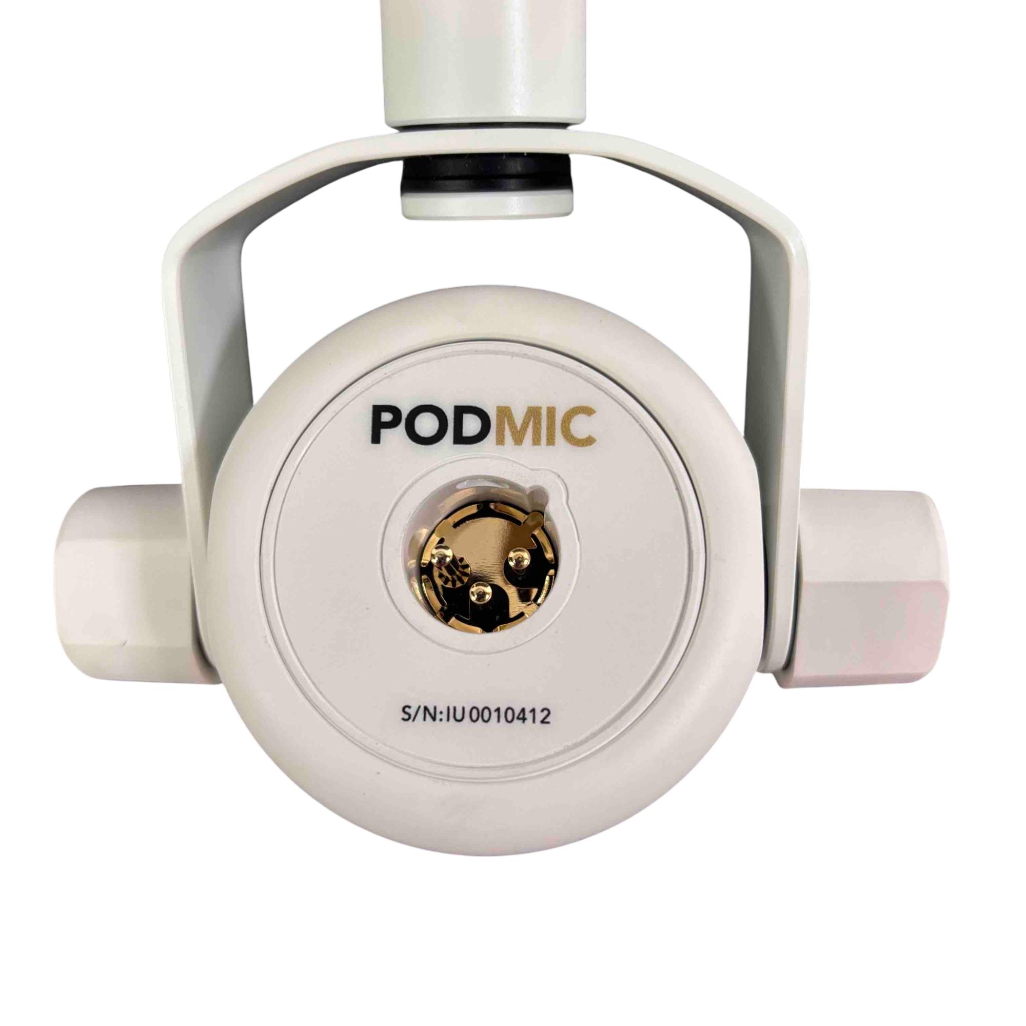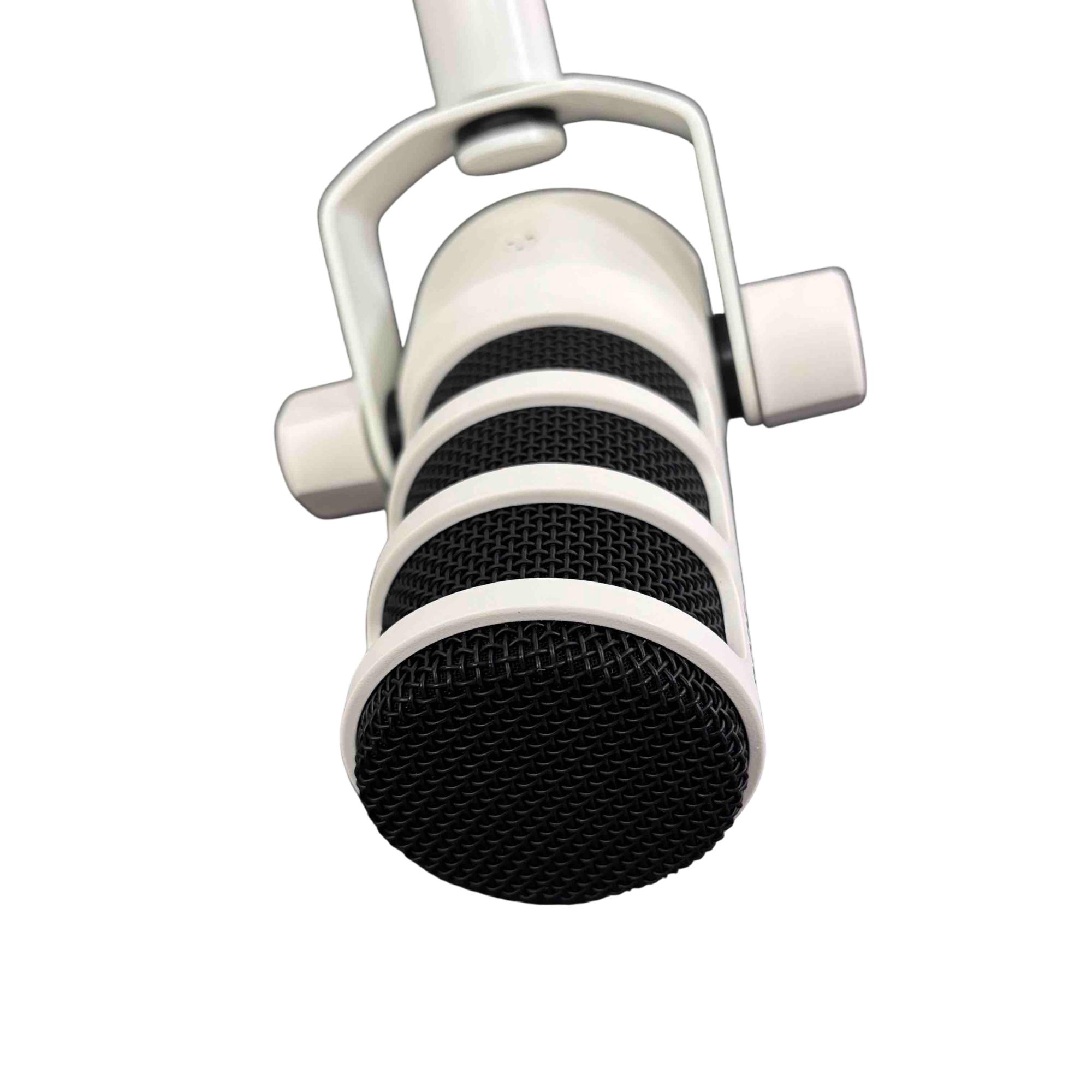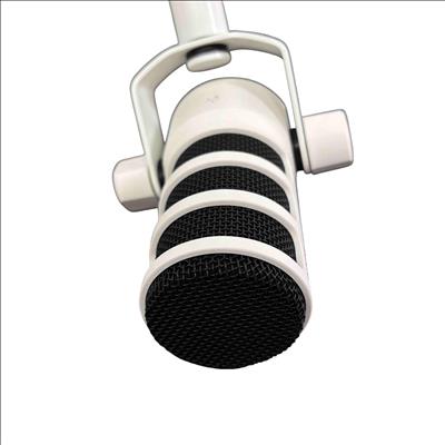 RØDE PodMic Dynamic Podcasting Microphone - White Limited Edition features a robust dynamic design with an internal pop filter and cardioid polar pattern for focused sound capture, ideal for podcasting and broadcasting. Its durable construction and professional-grade components deliver clear, rich audio with minimal background noise, making it perfect for vocal recording and live streaming setups.