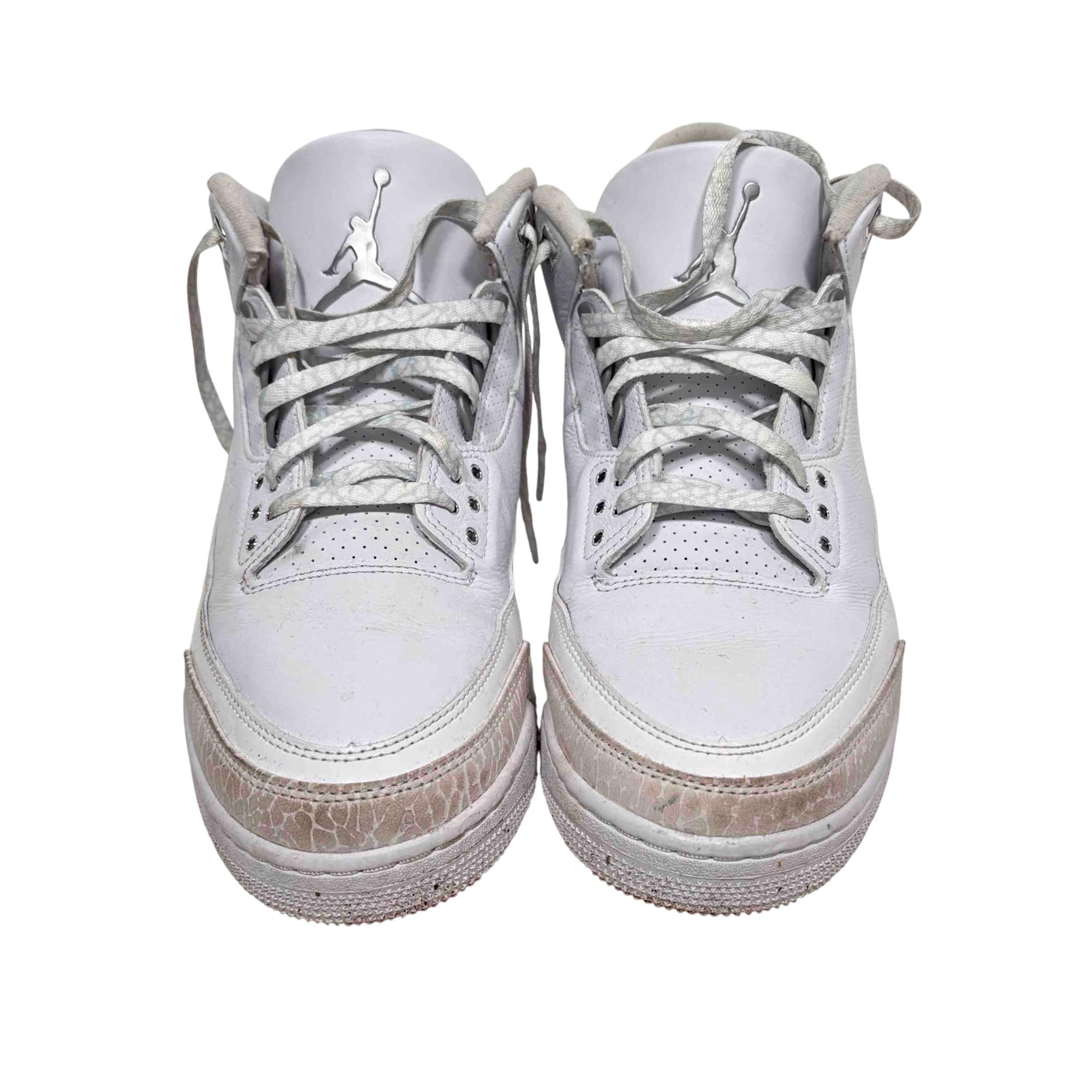 Nike Air Jordan 3 Retro Pure Money CT8532-111 - Pure Money 2025 features a clean, all-white leather design with subtle detailing for a sleek and timeless look. This iconic sneaker combines premium materials with classic basketball styling, making it a versatile choice for both athletic and casual wear.