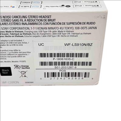 Sony WF-LS910N/BZ LinkBuds Fit Black Noise Cancelling Stereo Headset features advanced noise cancelling technology for immersive stereo sound. This wireless headset includes a charging case and USB Type-C cable, designed for secure fit and high-resolution audio performance.