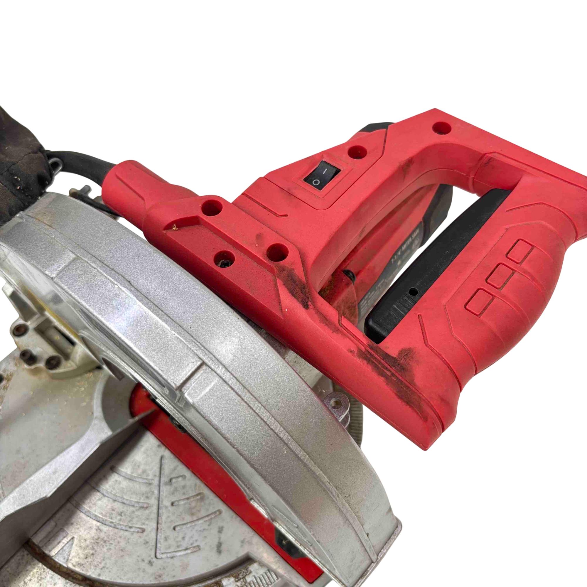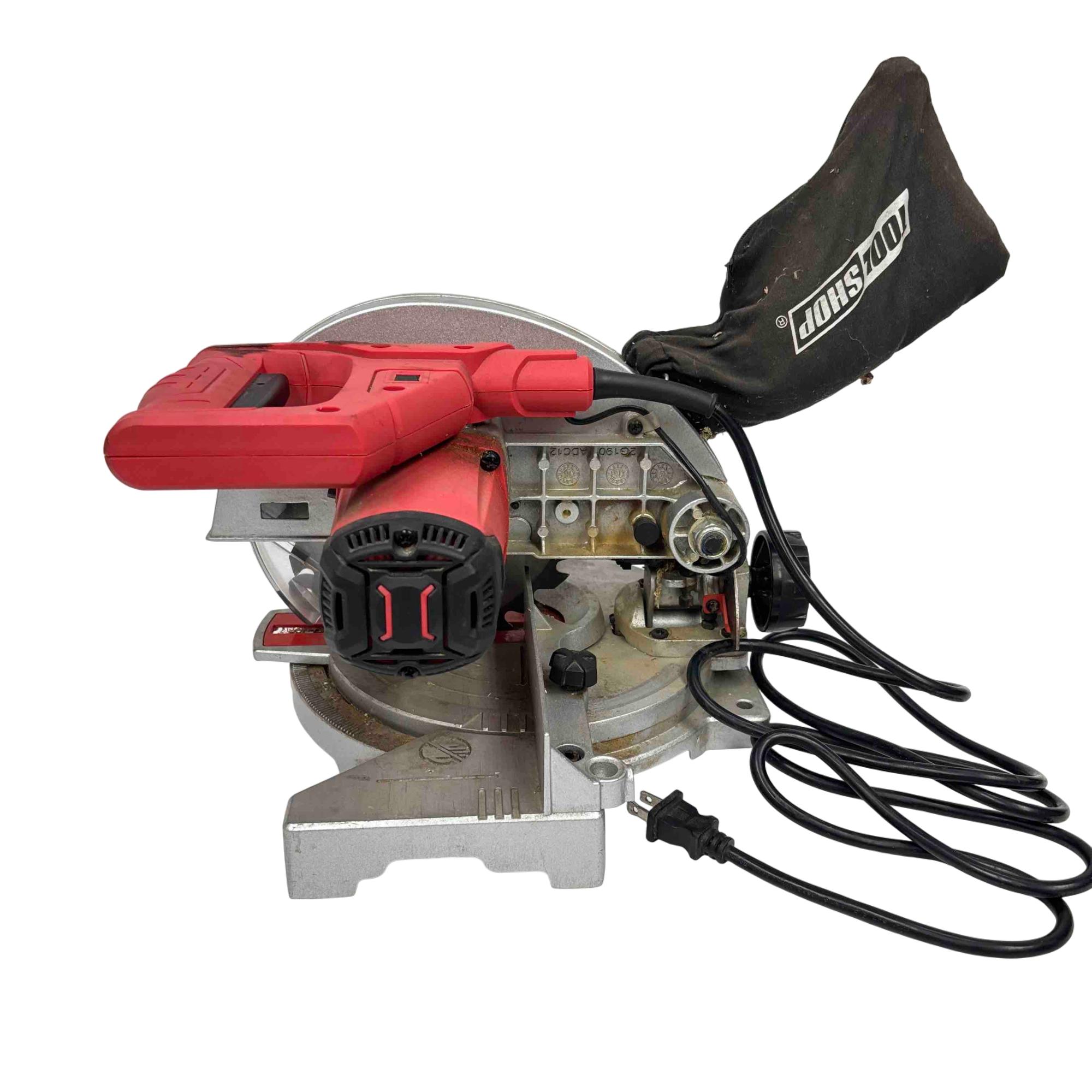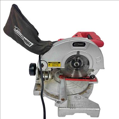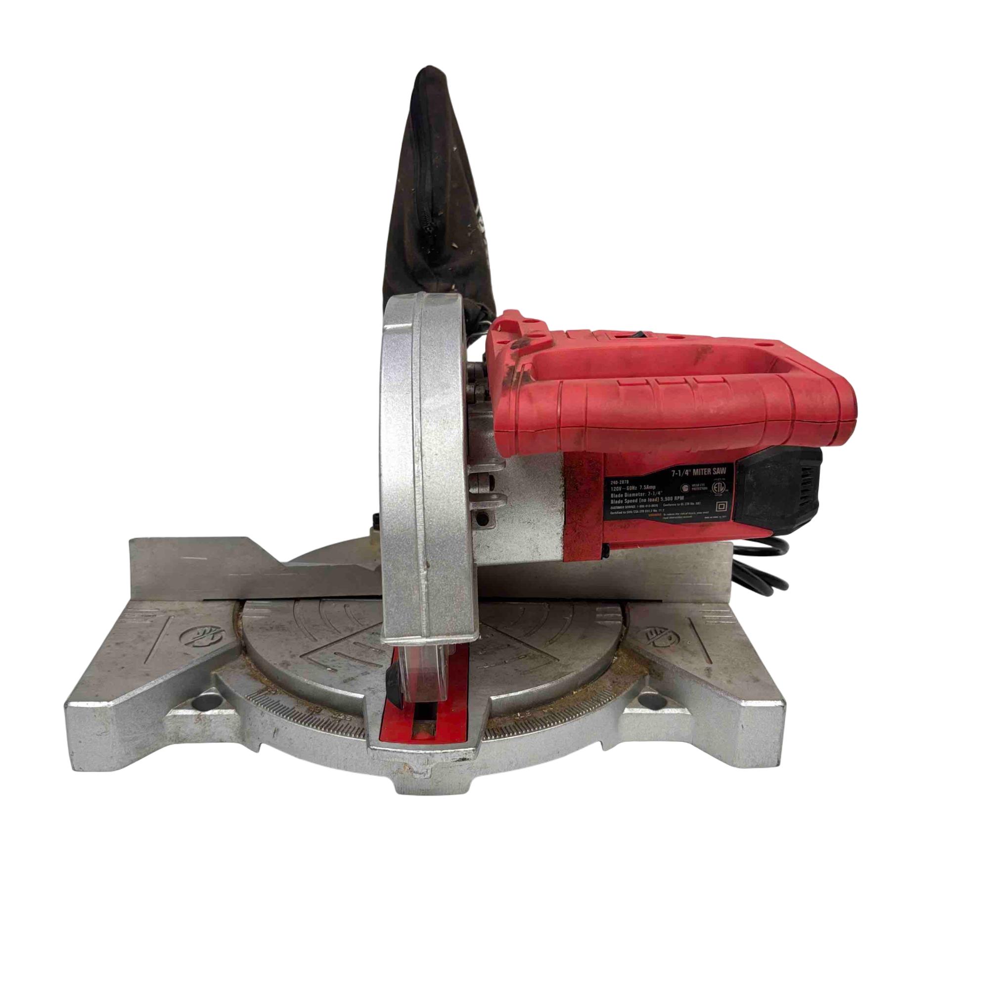 The Tool Shop 7-1/4" Miter Saw operates on 120V at 7.5 amps and features a 7-1/4 inch blade diameter capable of reaching 5,500 RPM no load speed. Designed with safety in mind, it displays caution warnings and conforms to UL and CSA safety standards. This powerful saw is ideal for precise crosscuts and angled cuts in various woodworking and construction projects.