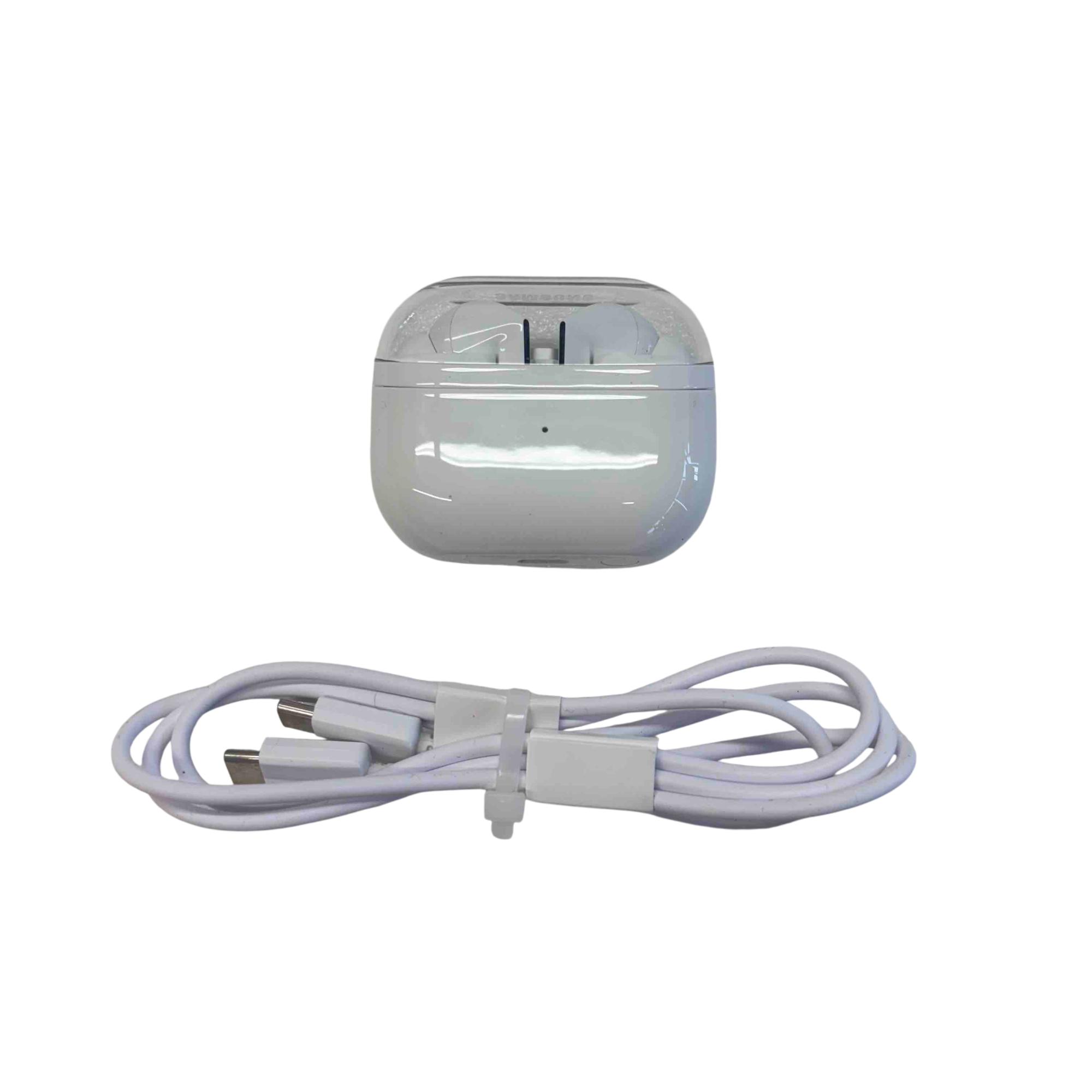 Samsung Galaxy Buds3 Pro True Wireless Earbuds (SM-R630) offer an immersive audio experience with advanced noise cancellation and a comfortable, ergonomic design. These earbuds feature seamless Bluetooth connectivity and deliver rich, high-quality sound for music, calls, and more. The sleek white finish and compact charging case with USB-C cable provide convenient portability and style.