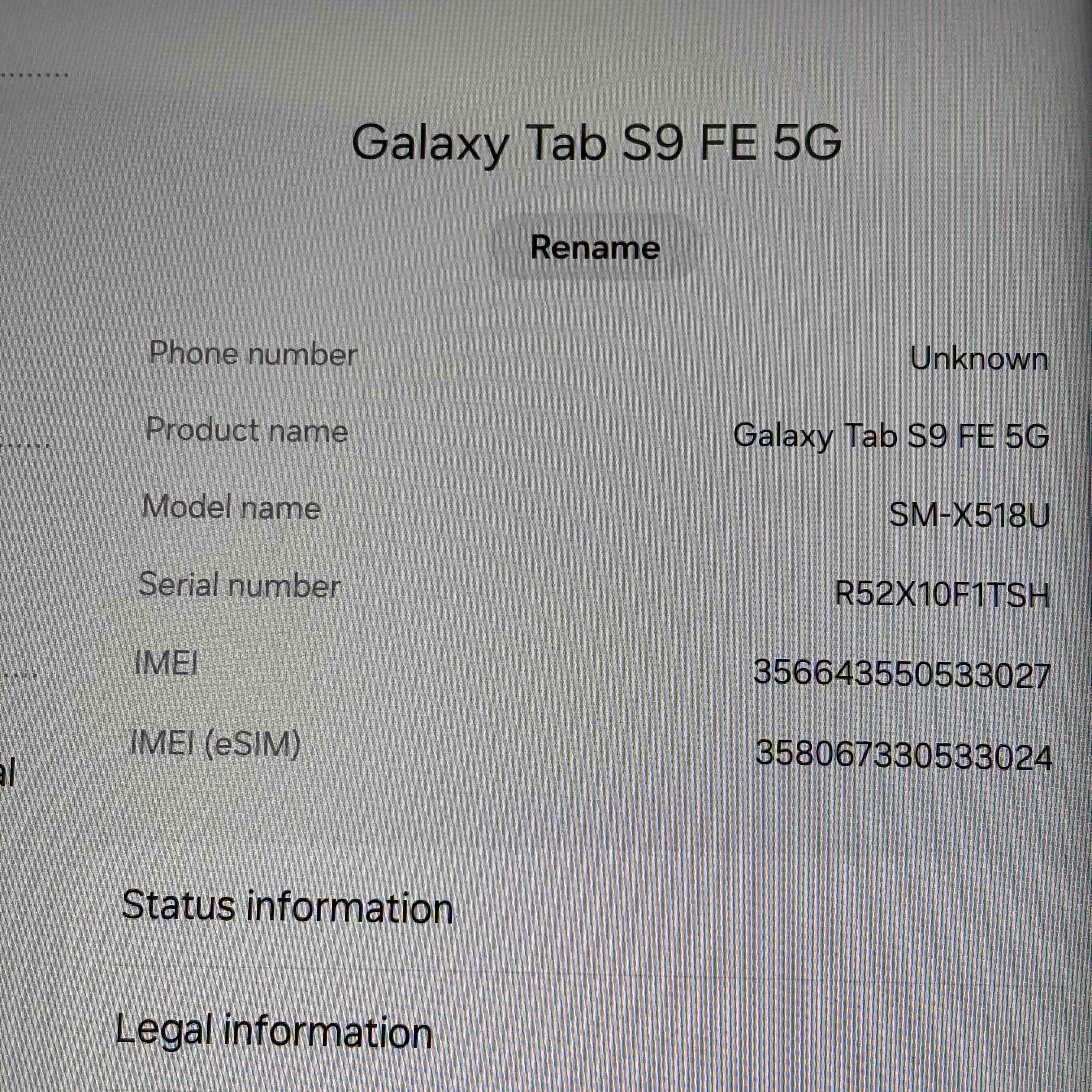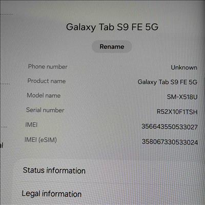 Model: Galaxy Tab S9 FE 5G SM-X518U