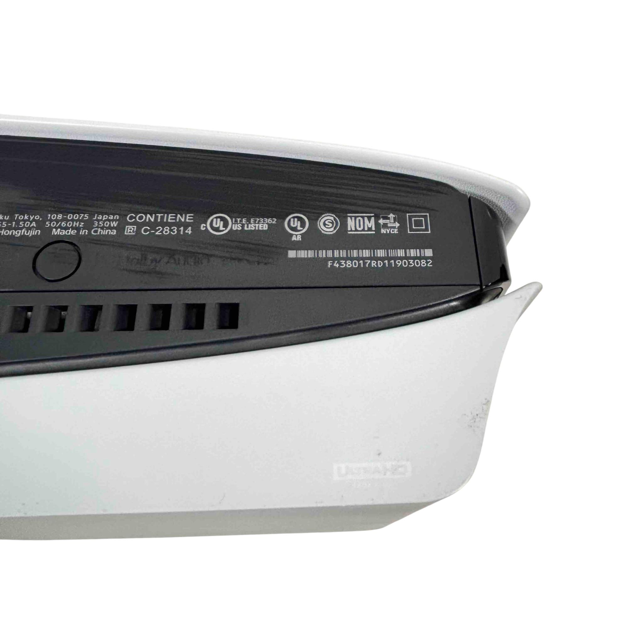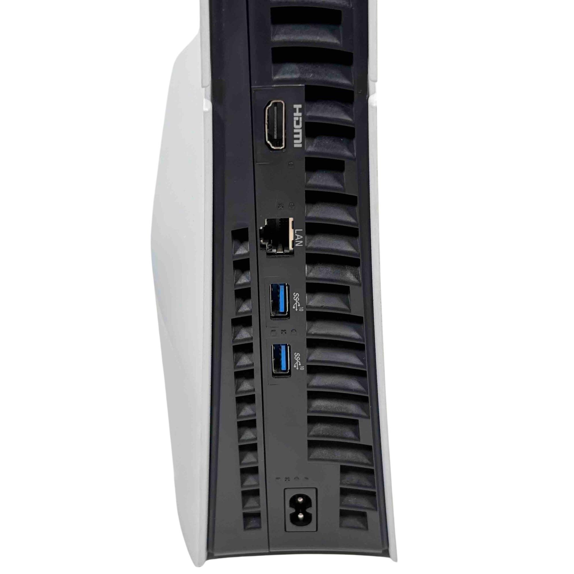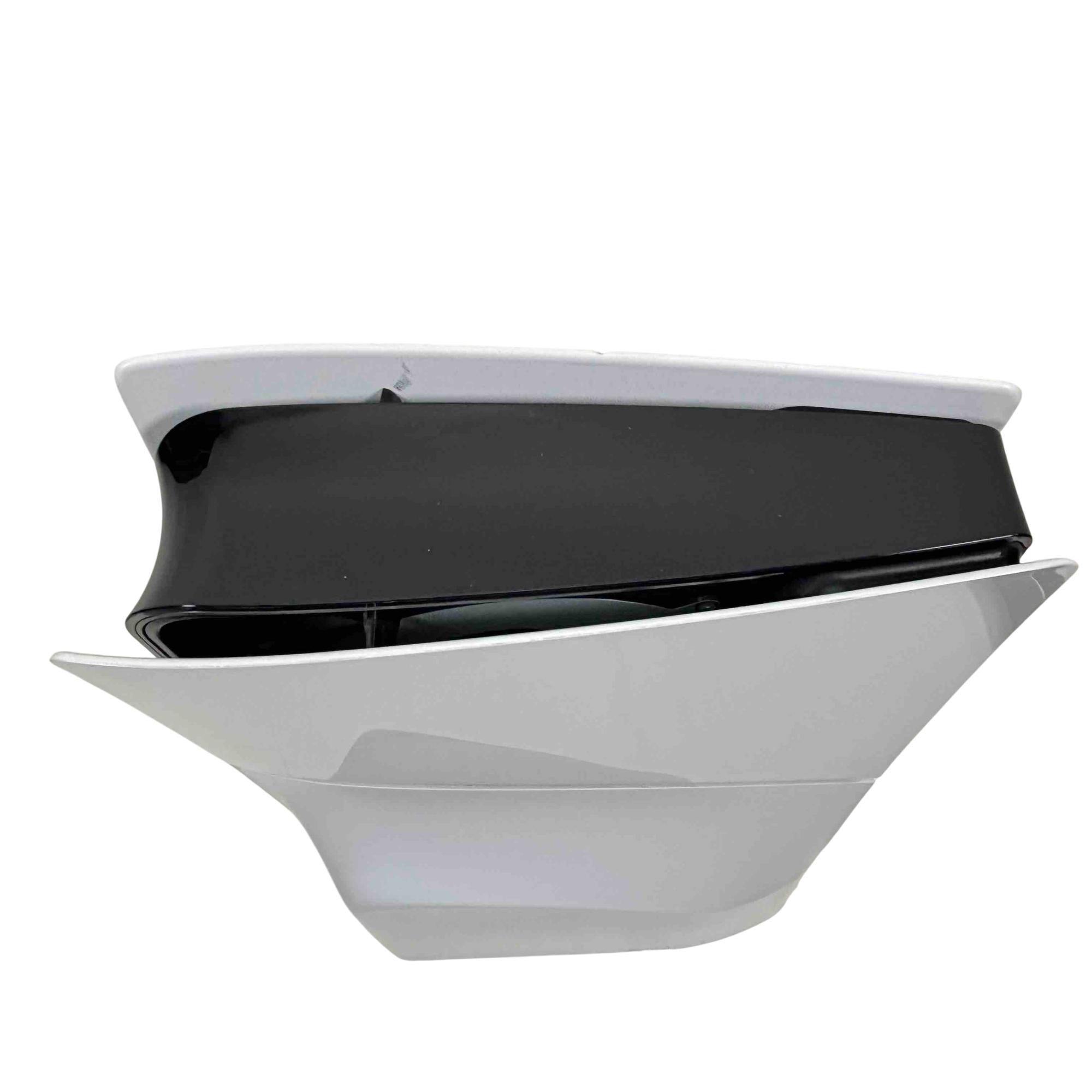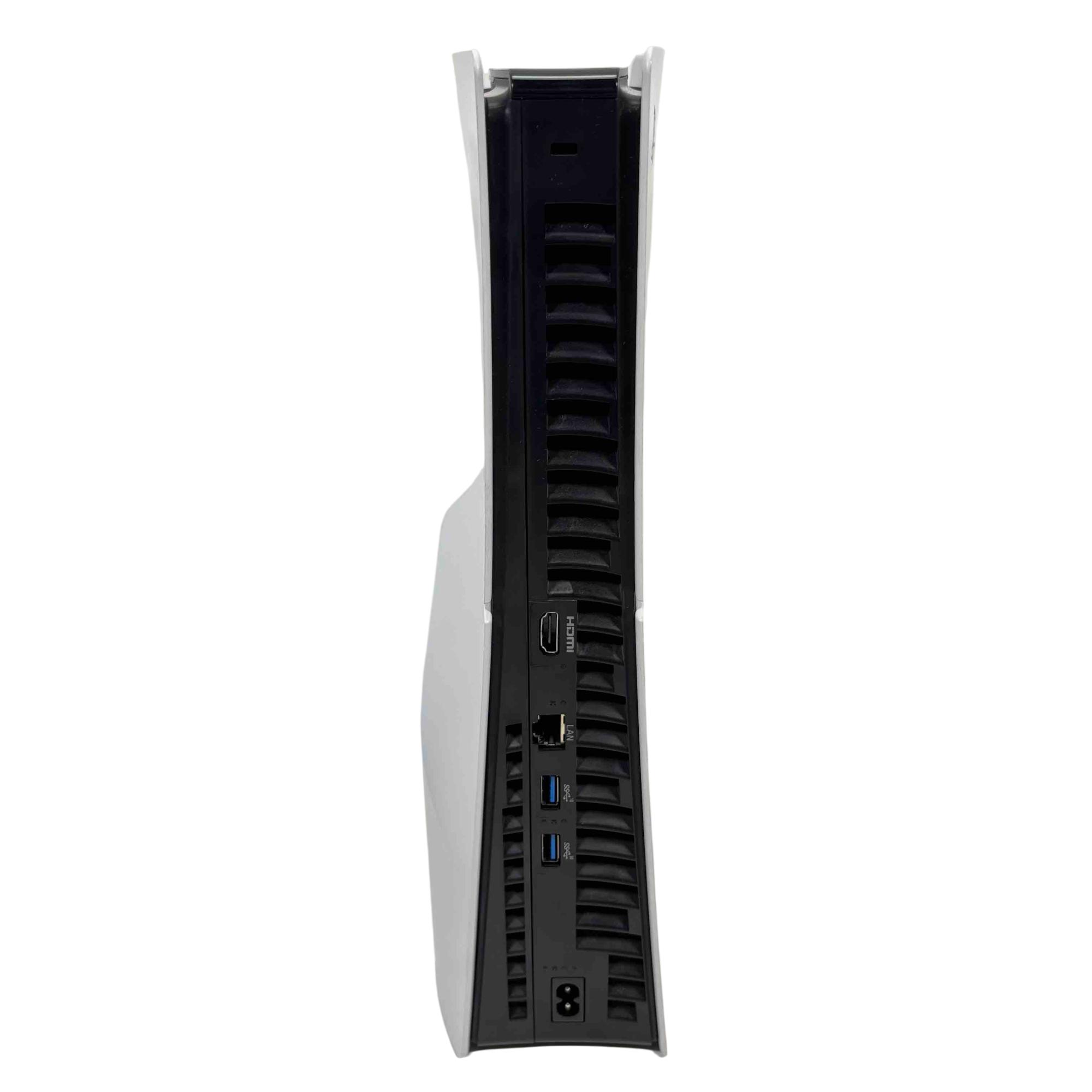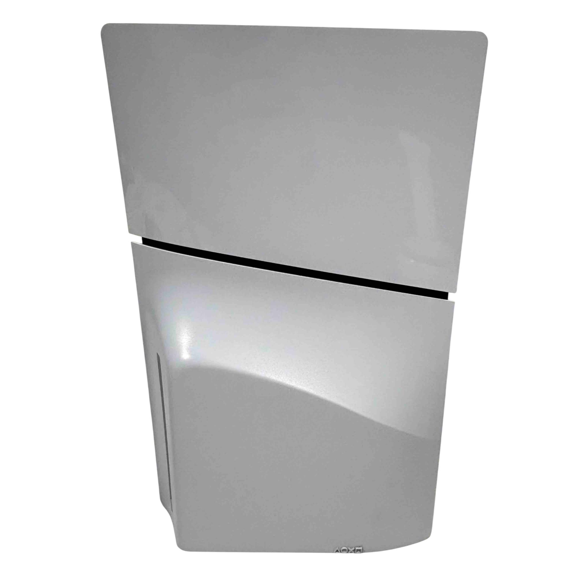 The Sony PlayStation 5 Slim Disc Edition 1TB (Model CFI-2015A) features a sleek white and black design with a compact rectangular form and a distinctive black strip. This gaming console delivers high-performance gameplay with a 1TB storage capacity and supports physical disc media. It is engineered to provide immersive entertainment with advanced graphics and responsive controls.
