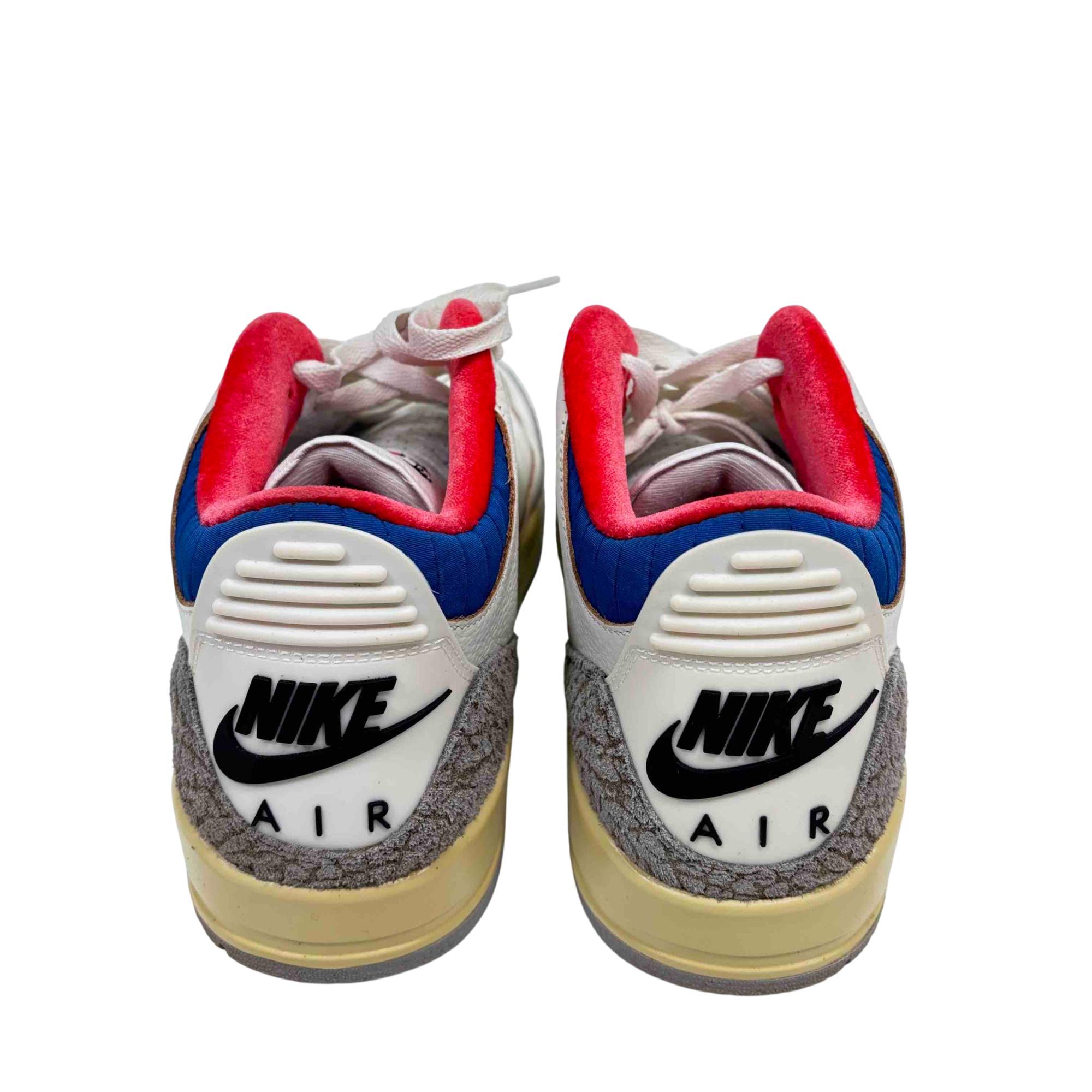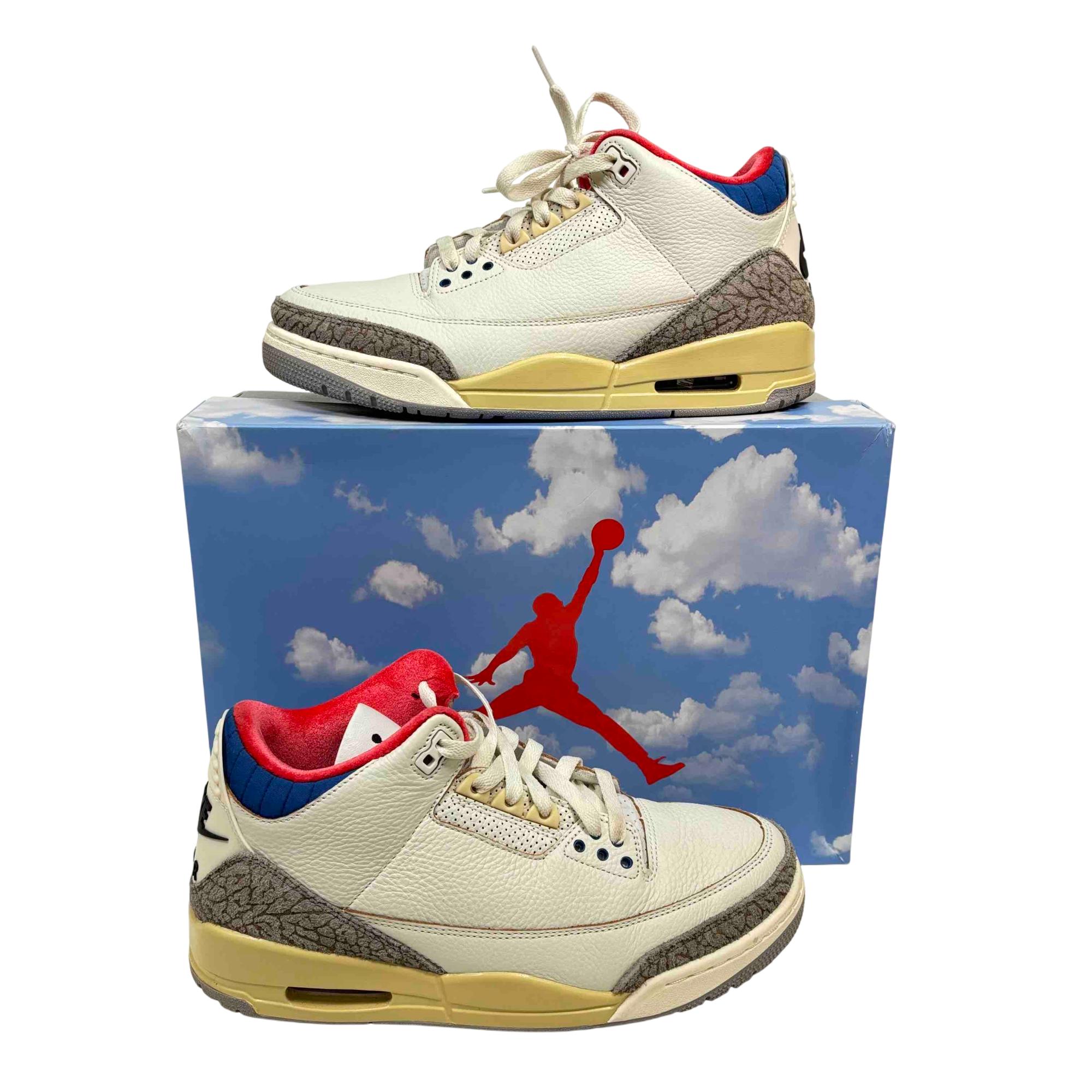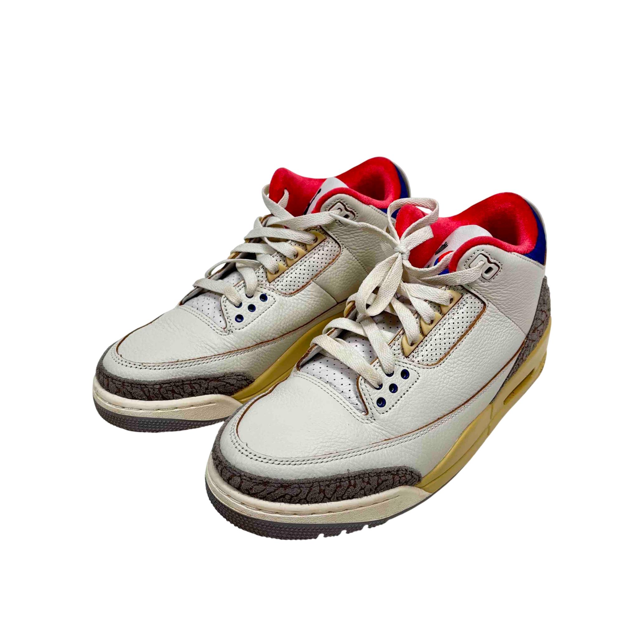 Nike Air Jordan 3 Retro Seoul 2.0 IB1482-100 features a classic white leather upper with subtle red and blue accents, creating a clean and stylish look. This iconic basketball sneaker combines premium materials with a modern design, offering both comfort and durability for athletic and casual wear.
