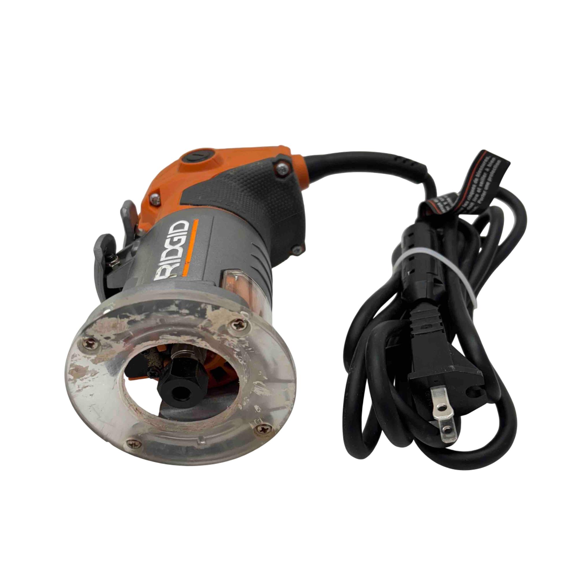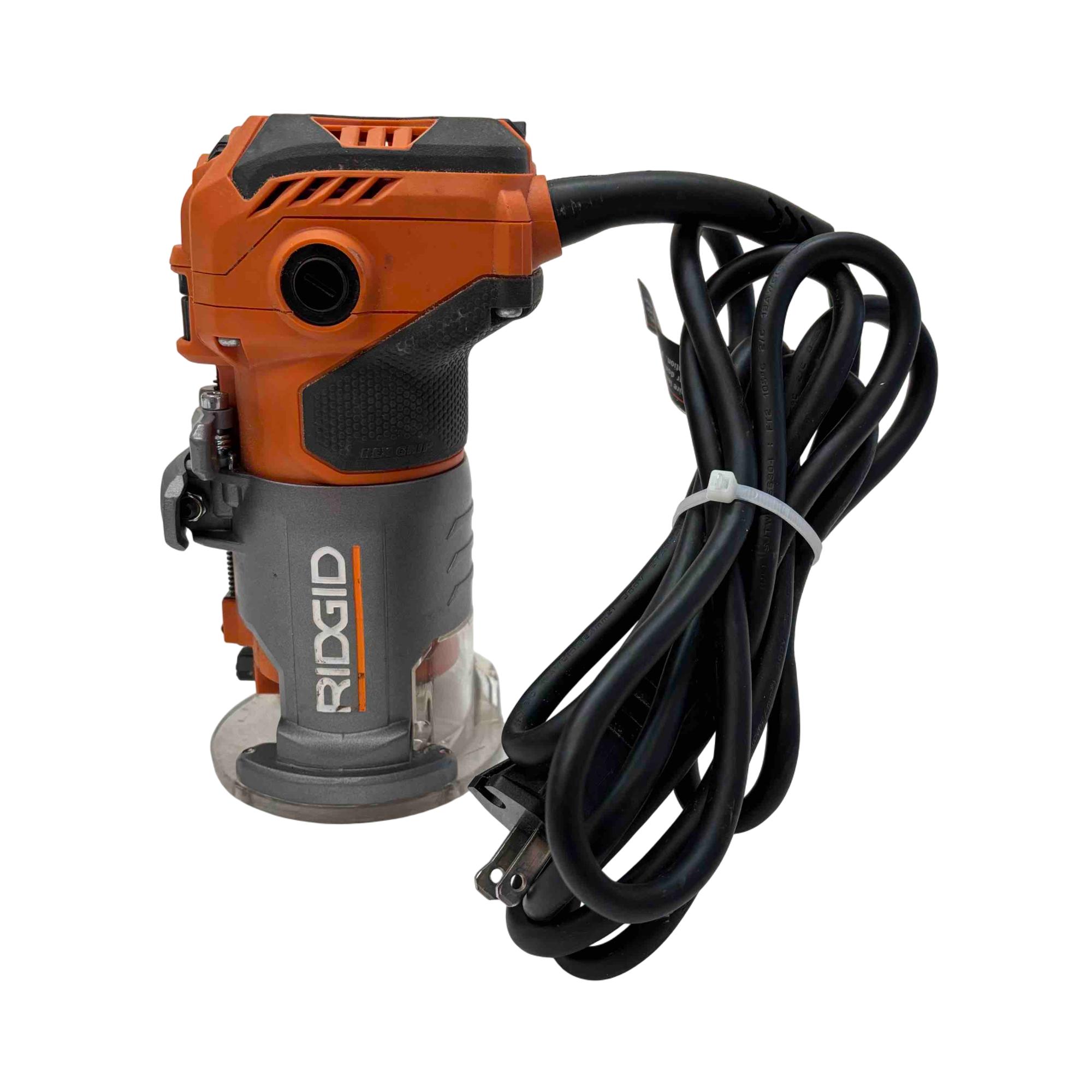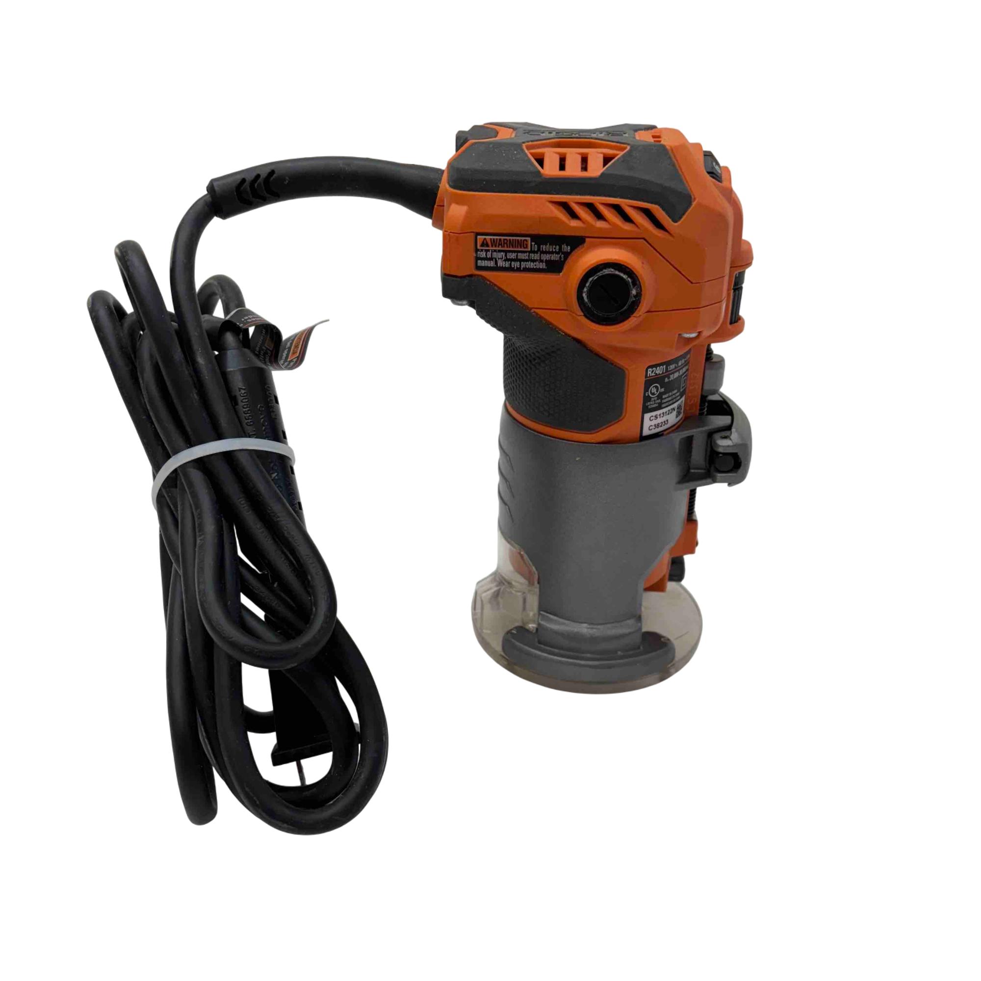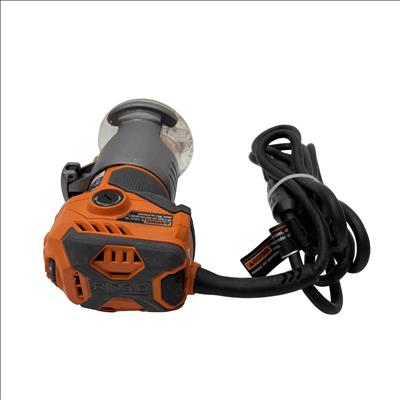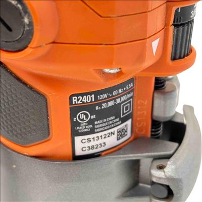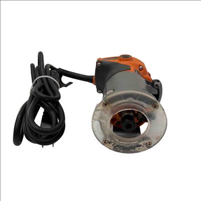A 5.5 Amp compact fixed-base corded router designed for precision and control. It features a 1/4-inch collet and includes both round and square clear bases for added flexibility during operation. The router is equipped with a soft start function to ease into cuts and prolong motor life, as well as a variable speed setting to match different materials and tasks. A micro adjust dial allows for fine depth adjustments, while the spindle lock and no-mar flat top simplify bit changes. Additional features include an integrated LED light for visibility, a quick-release lever for convenient motor removal, a dust shield for cleaner work areas, and a textured hex grip for enhanced handling.