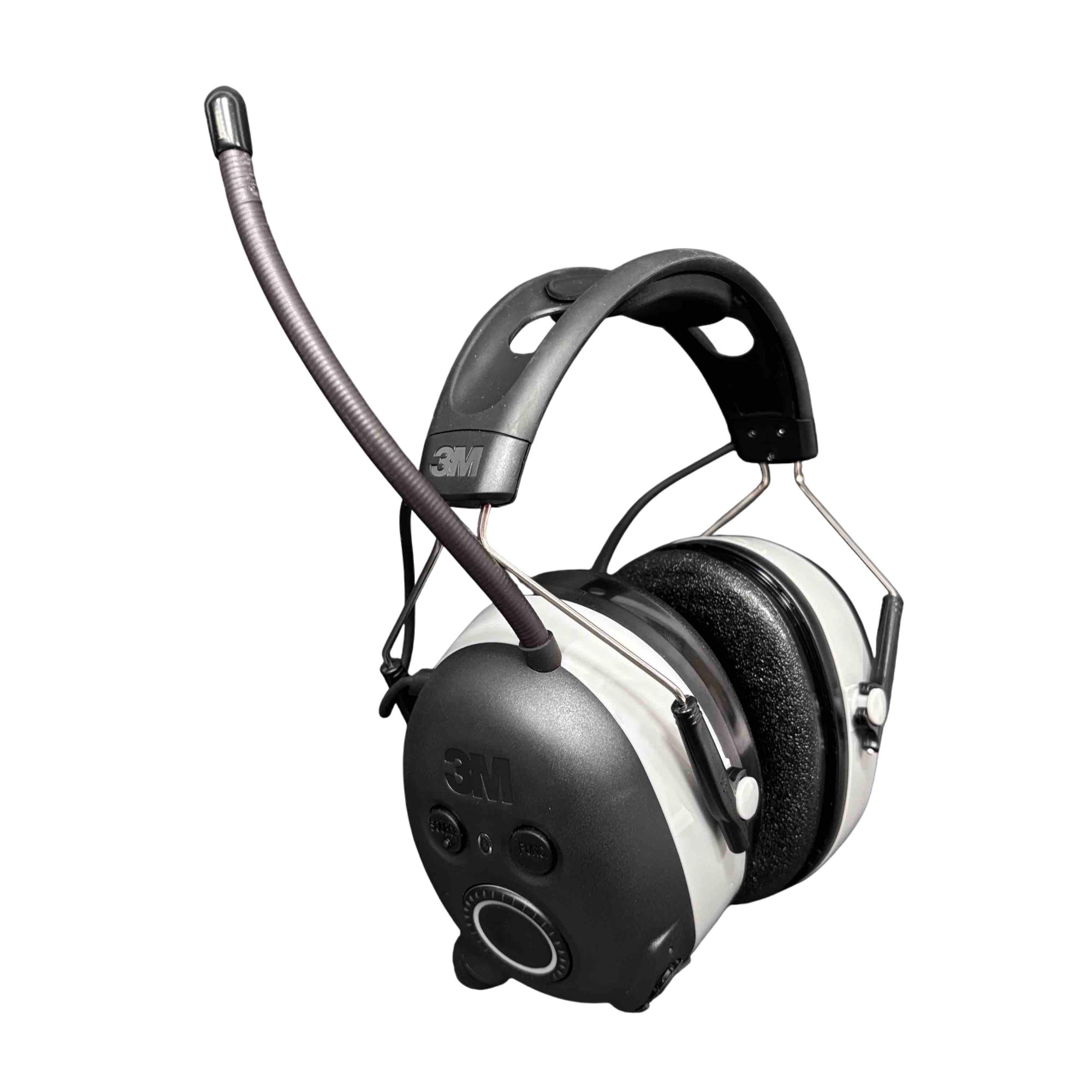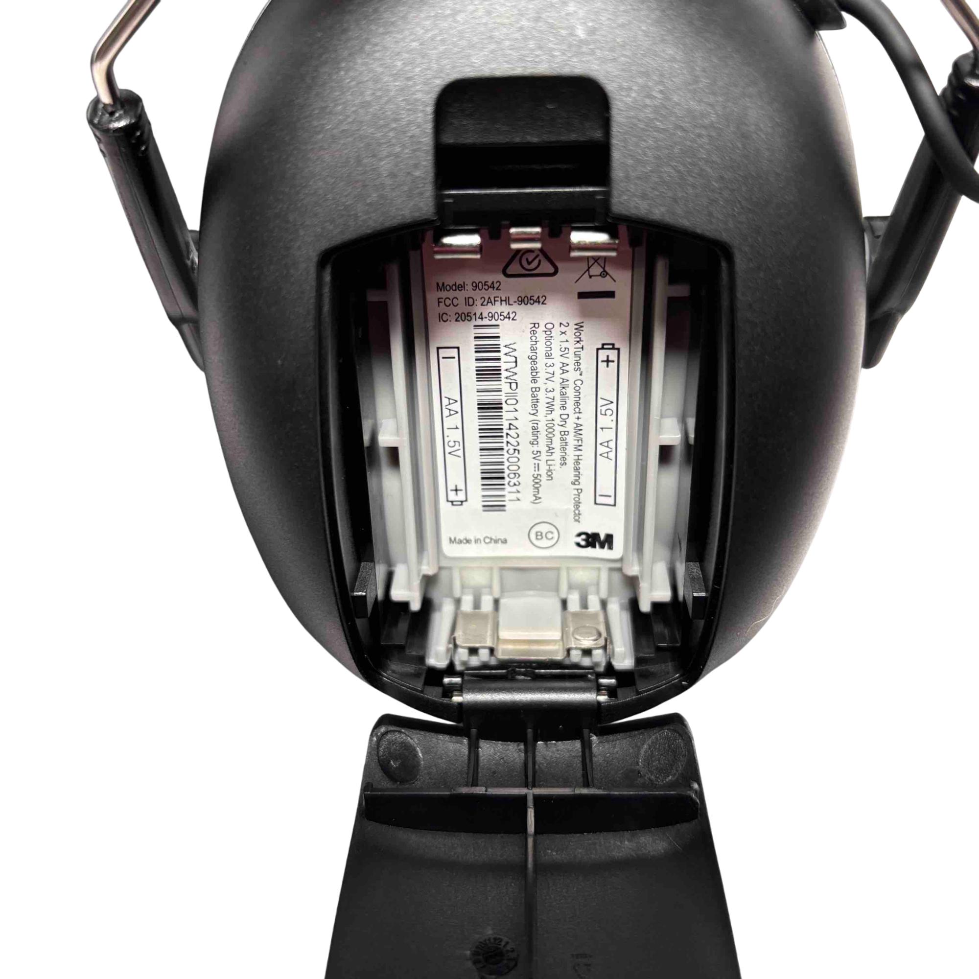 The 3M WorkTunes Connect+ AM/FM Hearing Protector Model 90542H1 is a black hearing protection device designed to reduce noise exposure while providing wireless audio streaming and FM radio capabilities. Featuring a rechargeable design and durable construction, it offers clear sound quality and enhanced hearing safety for noisy environments. This model is optimized for use in industrial settings and personal safety applications.