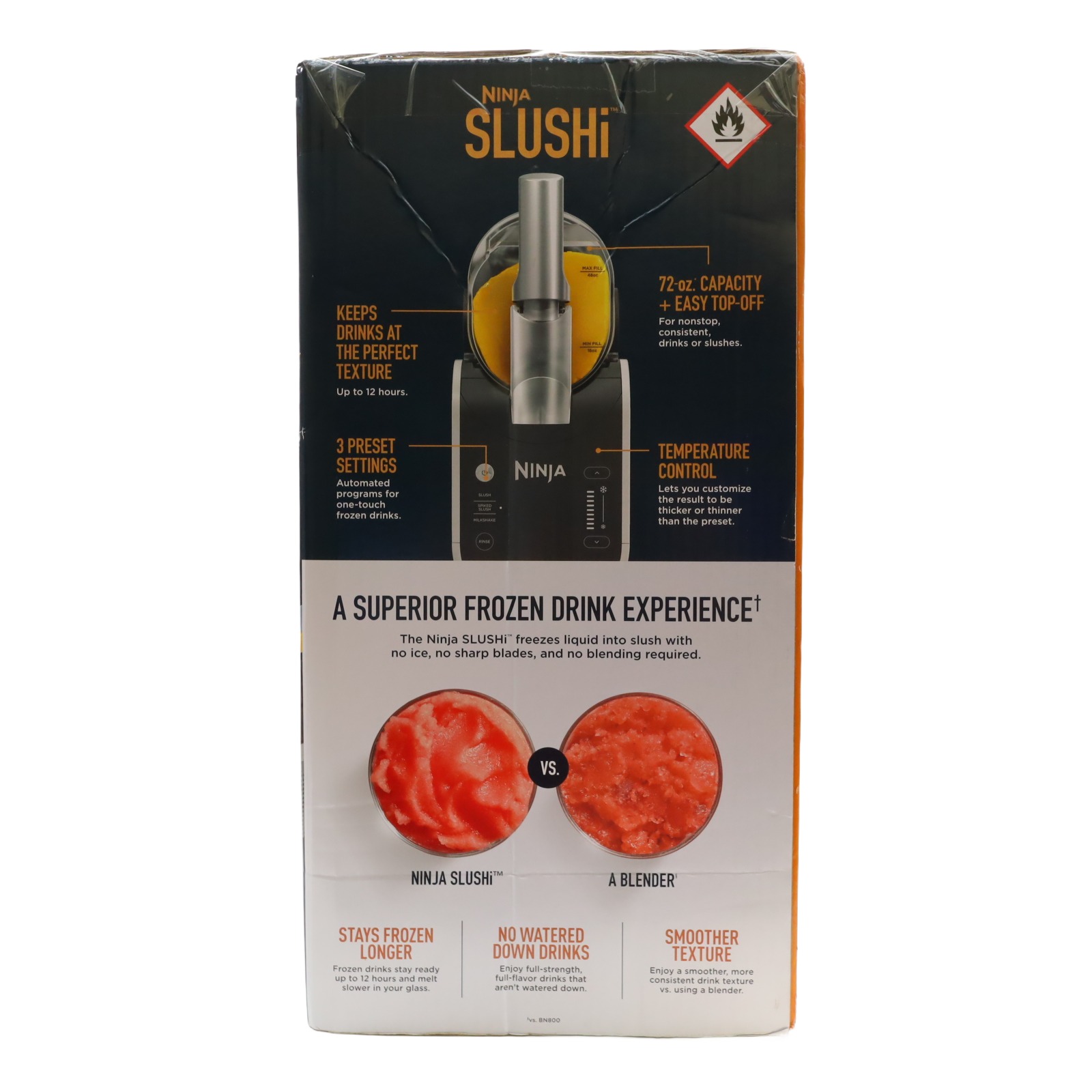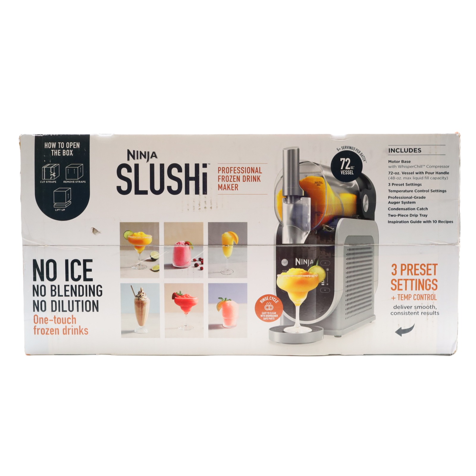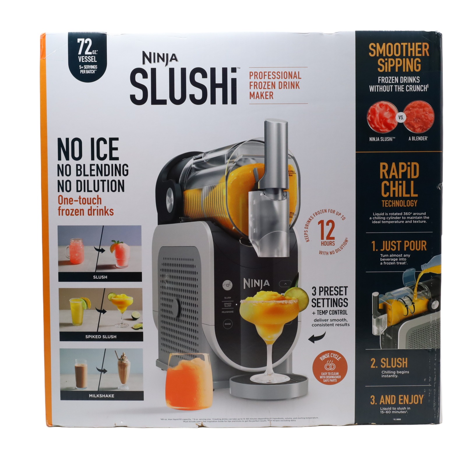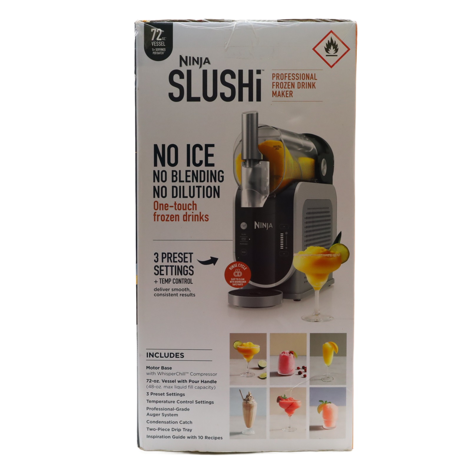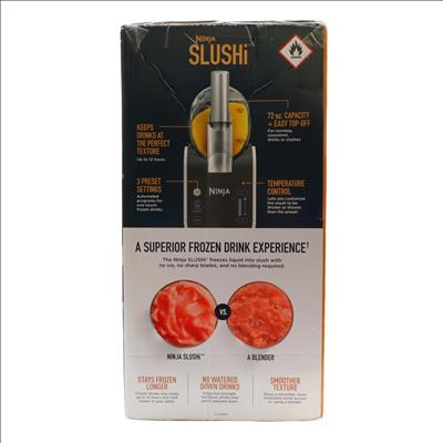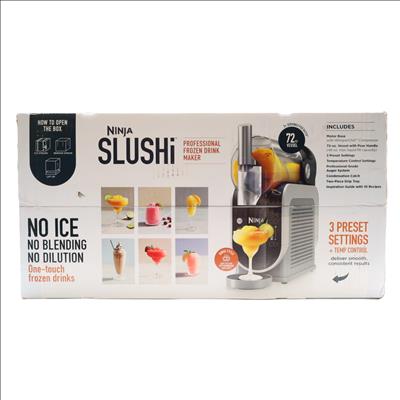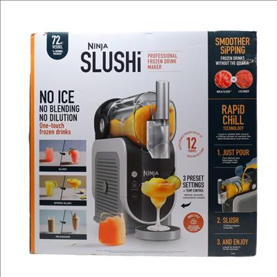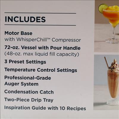A countertop unit designed to turn beverages such as juice, soda, coffee, or wine into smooth frozen drinks using its RapidChill system, which spins an auger around a chilled cylinder to freeze liquids without added ice. It offers three preset programs with controlled temperature settings for different drink types and also allows manual adjustment to reach a preferred consistency. The machine can produce a slush-like texture within roughly 15 to 60 minutes depending on ingredients, with proper sugar content needed for optimal results. Its large-capacity container is easy to fill and clean, and the removable lid and drip tray are dishwasher safe for straightforward maintenance.