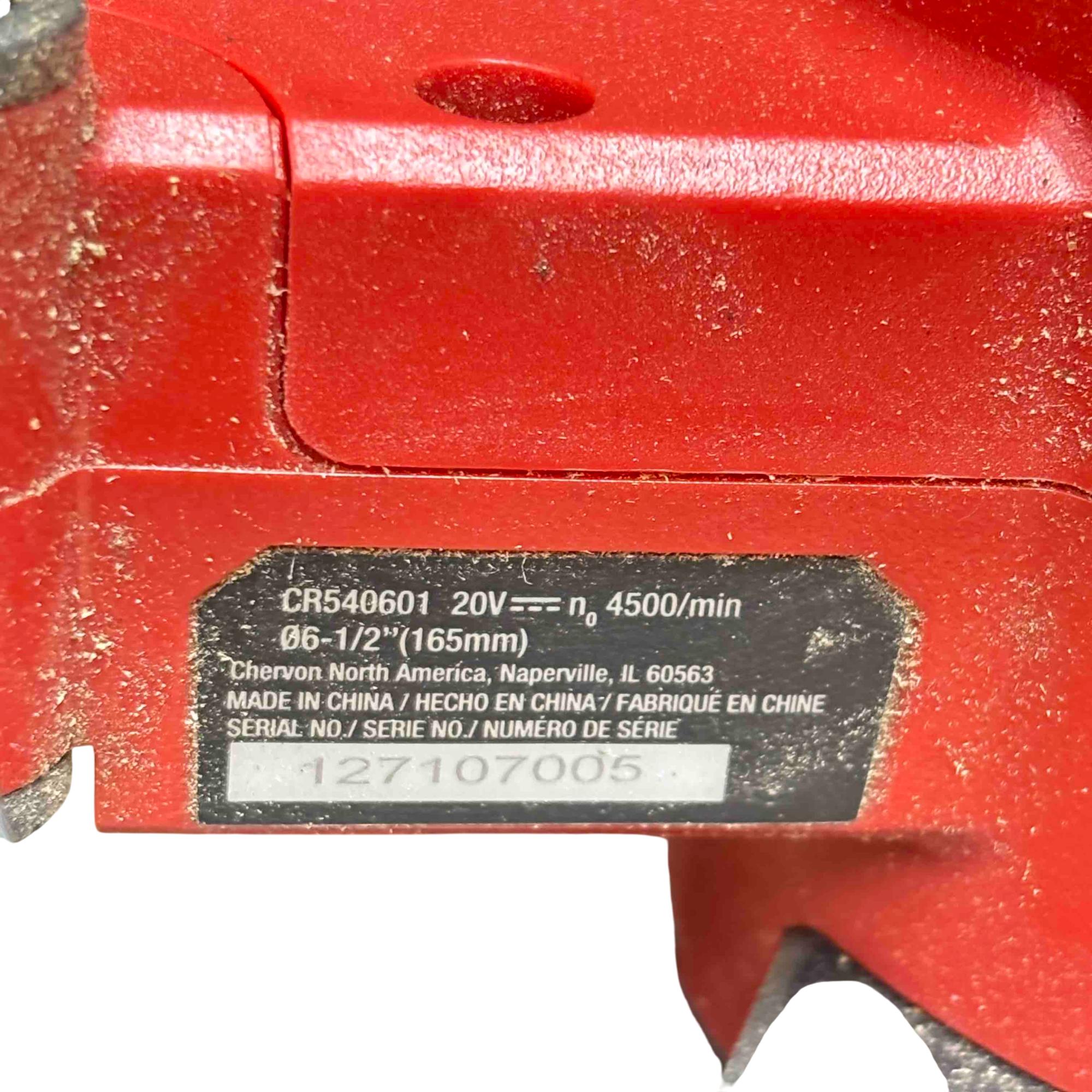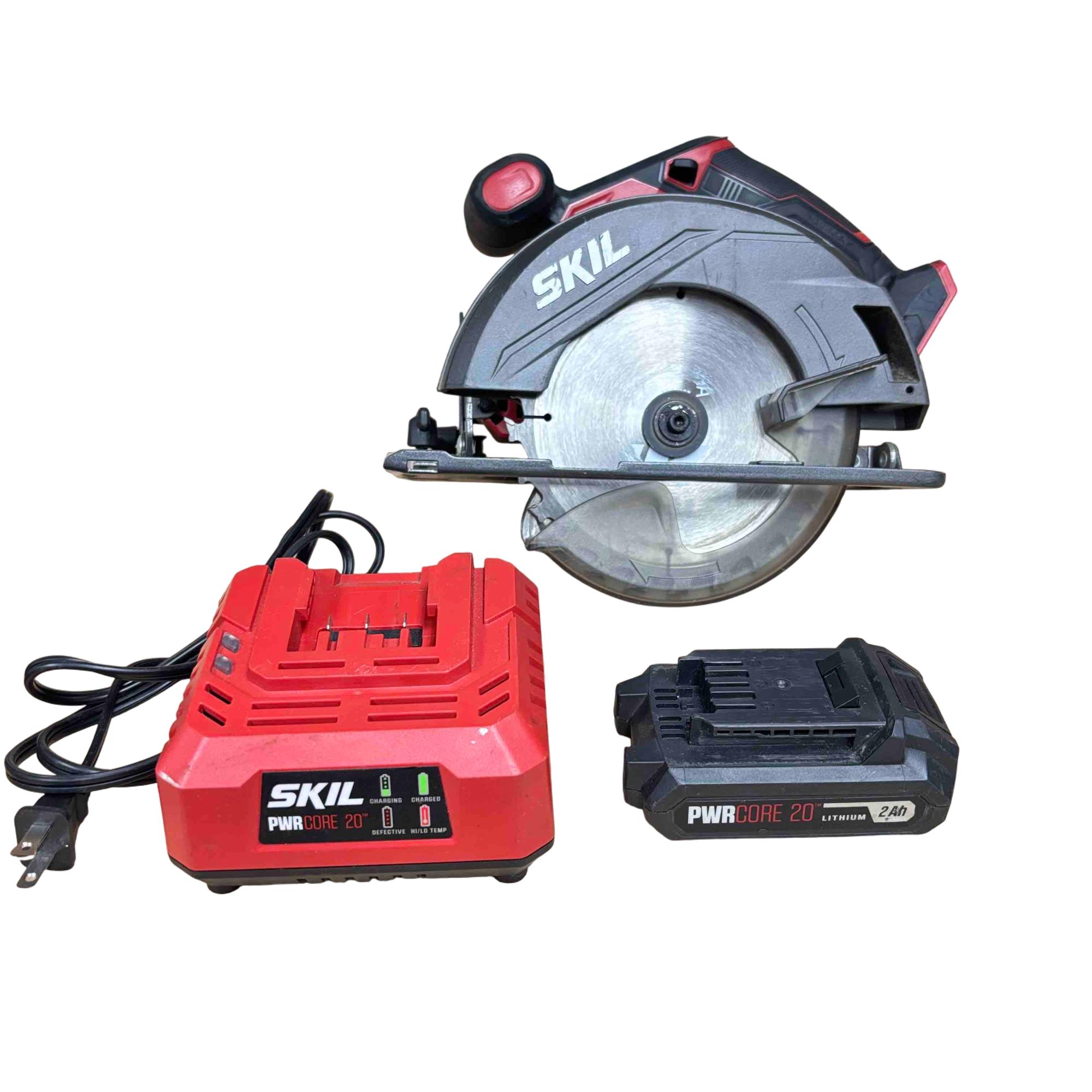 The SKIL CR540601 PWR CORE 20 6-1/2 inch 20V cordless circular saw features a high-speed motor delivering up to 4500 RPM for precise cutting performance. Designed for portability and convenience, this power tool incorporates a durable red and black housing and offers a versatile 6-1/2 inch blade size suitable for various woodworking tasks. Comes Included with a durable battery and charger.
