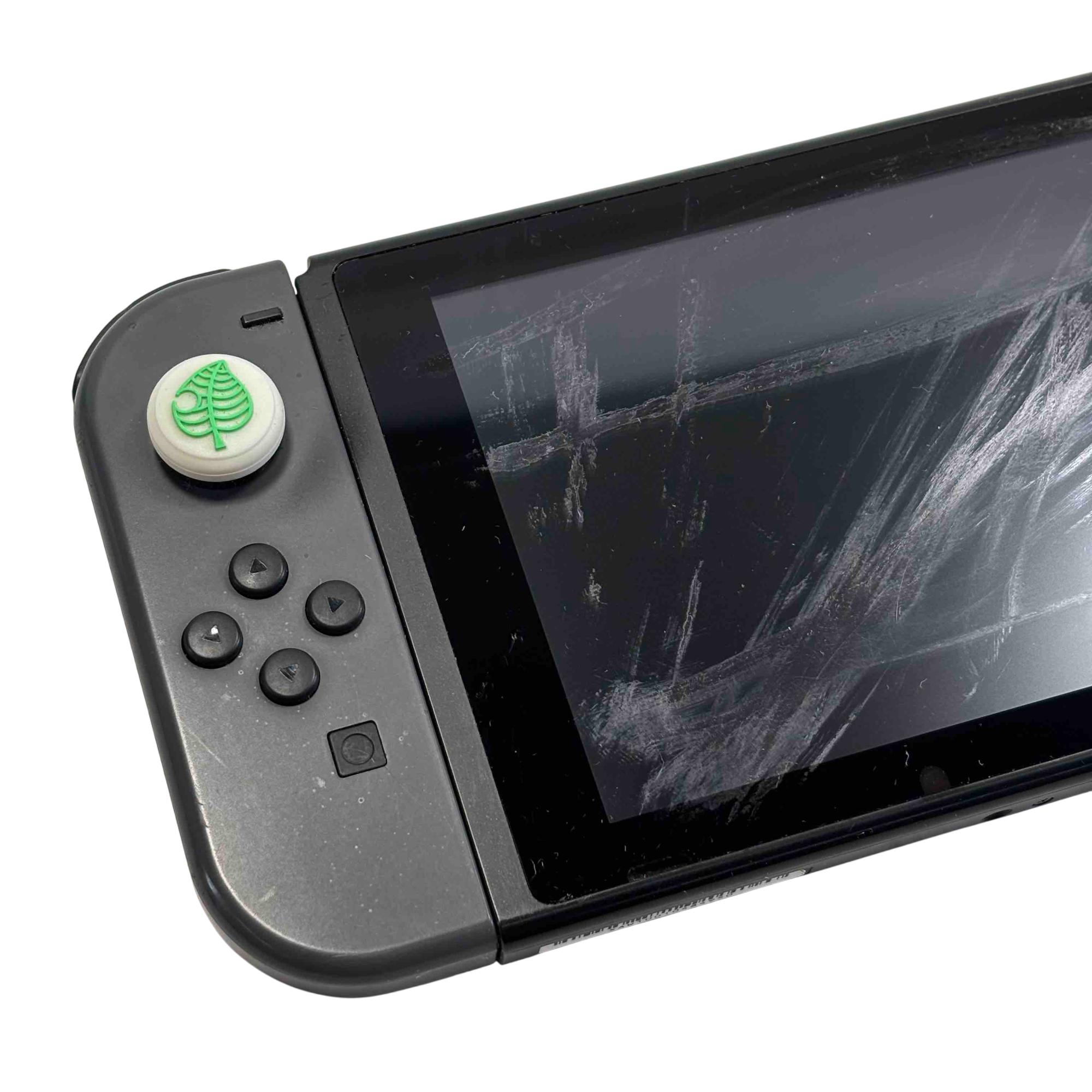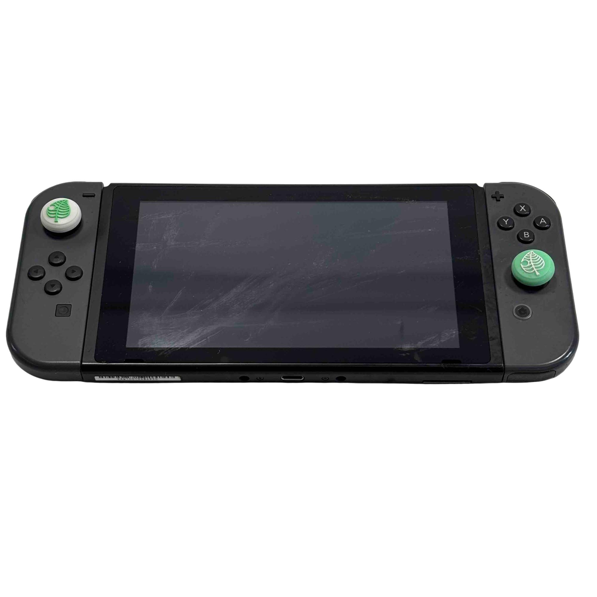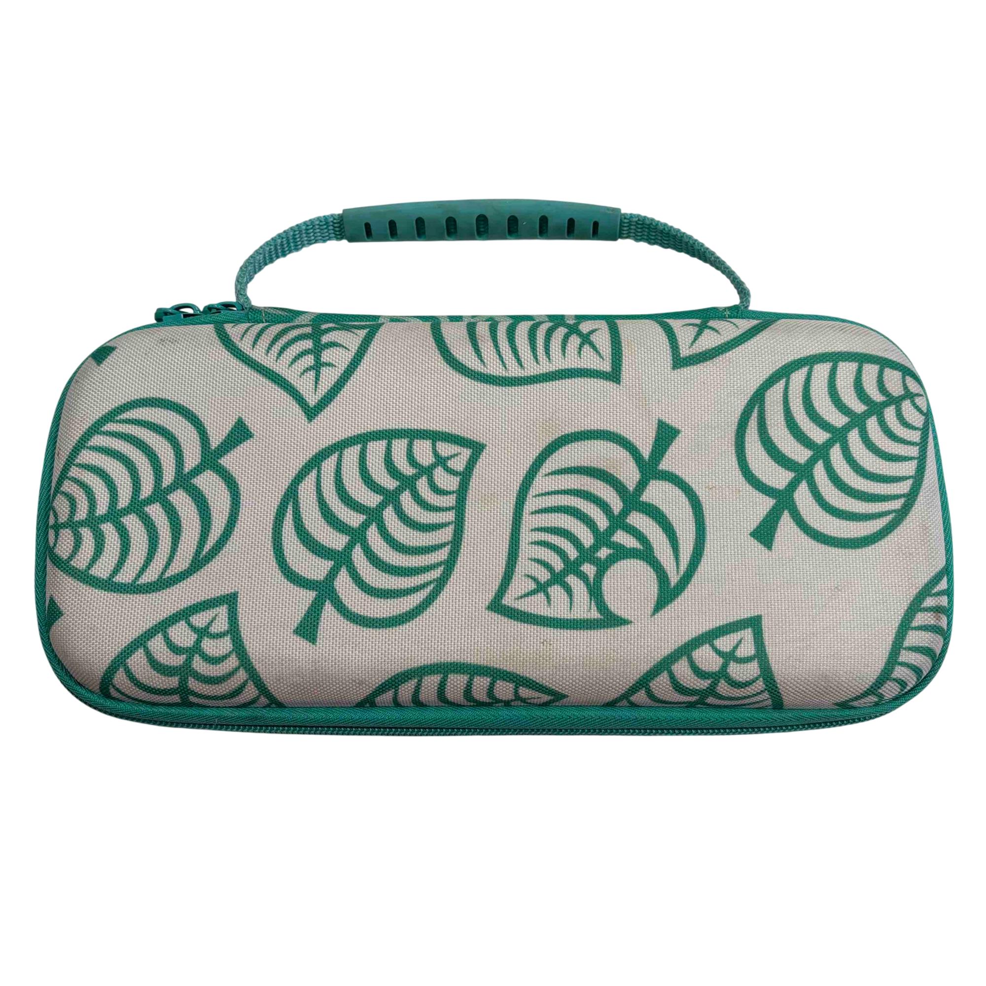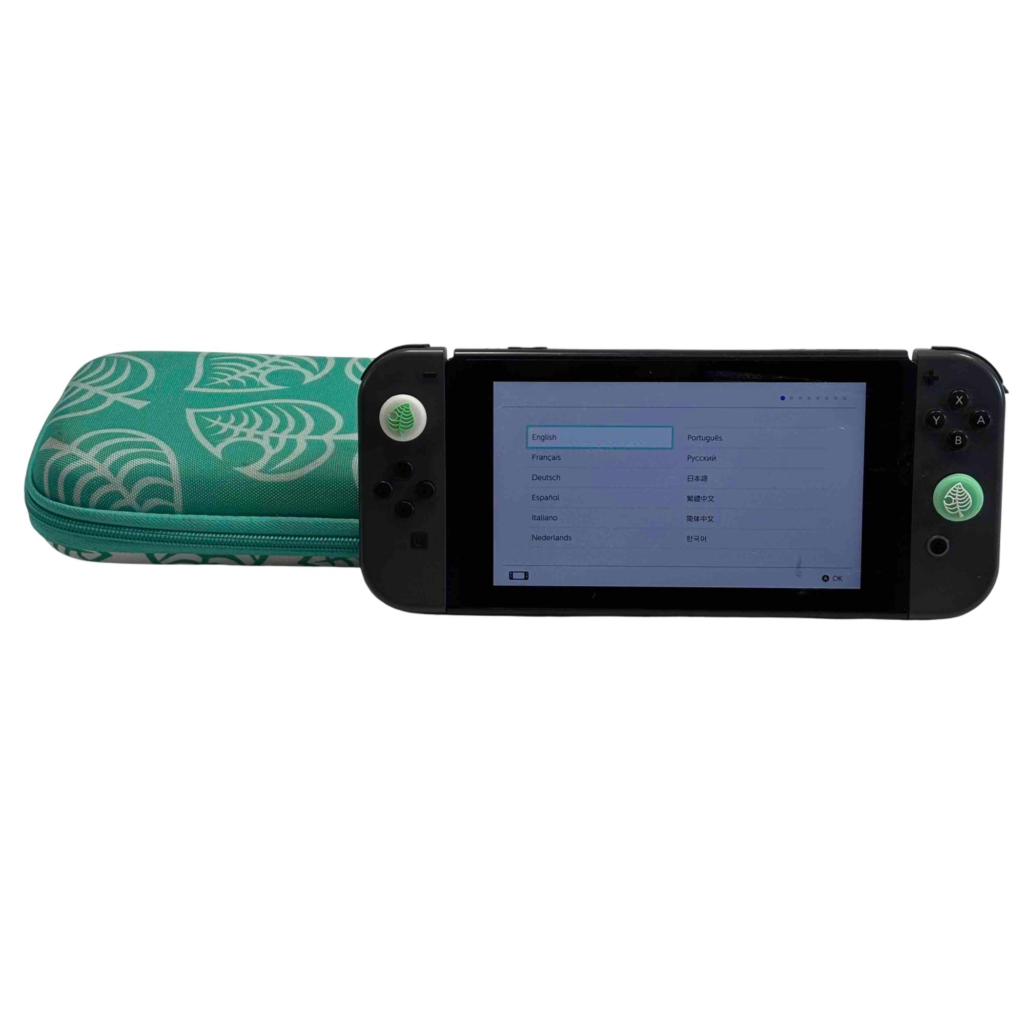 The Nintendo Switch HAC-001 features a versatile handheld design ideal for gaming on the go, complemented by a themed carrying case with a green and white leaf pattern for stylish portability. This electronic device offers a bright screen and responsive controls, making it suitable for immersive gaming experiences.