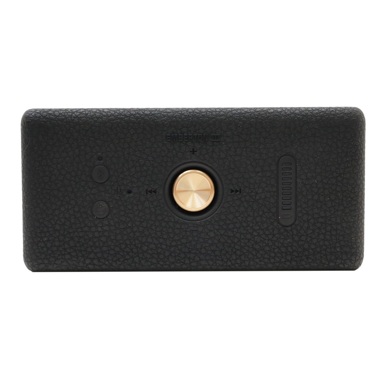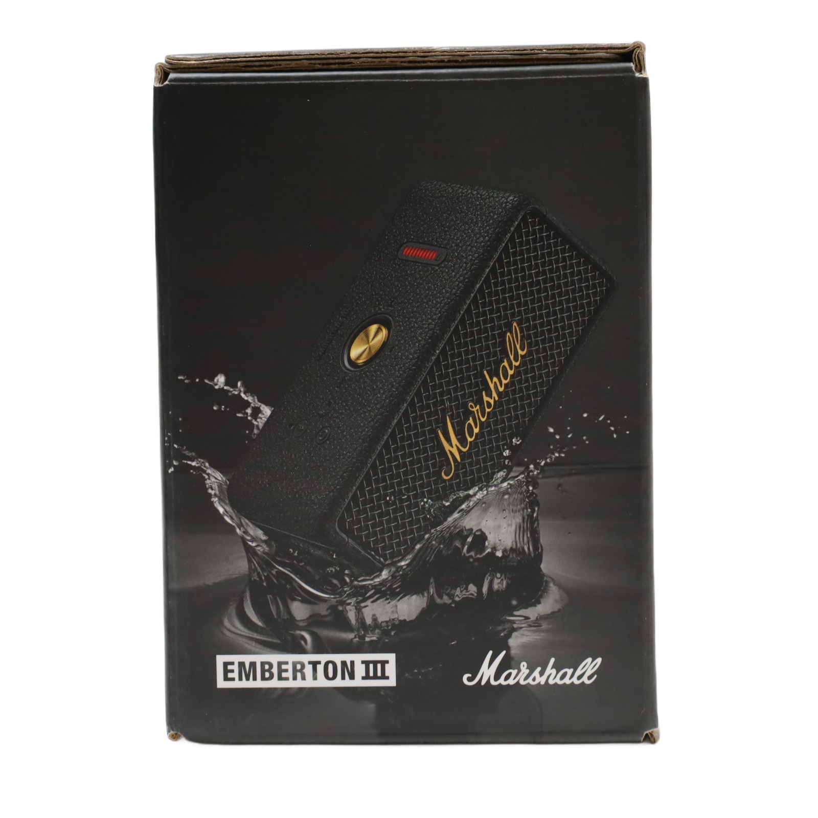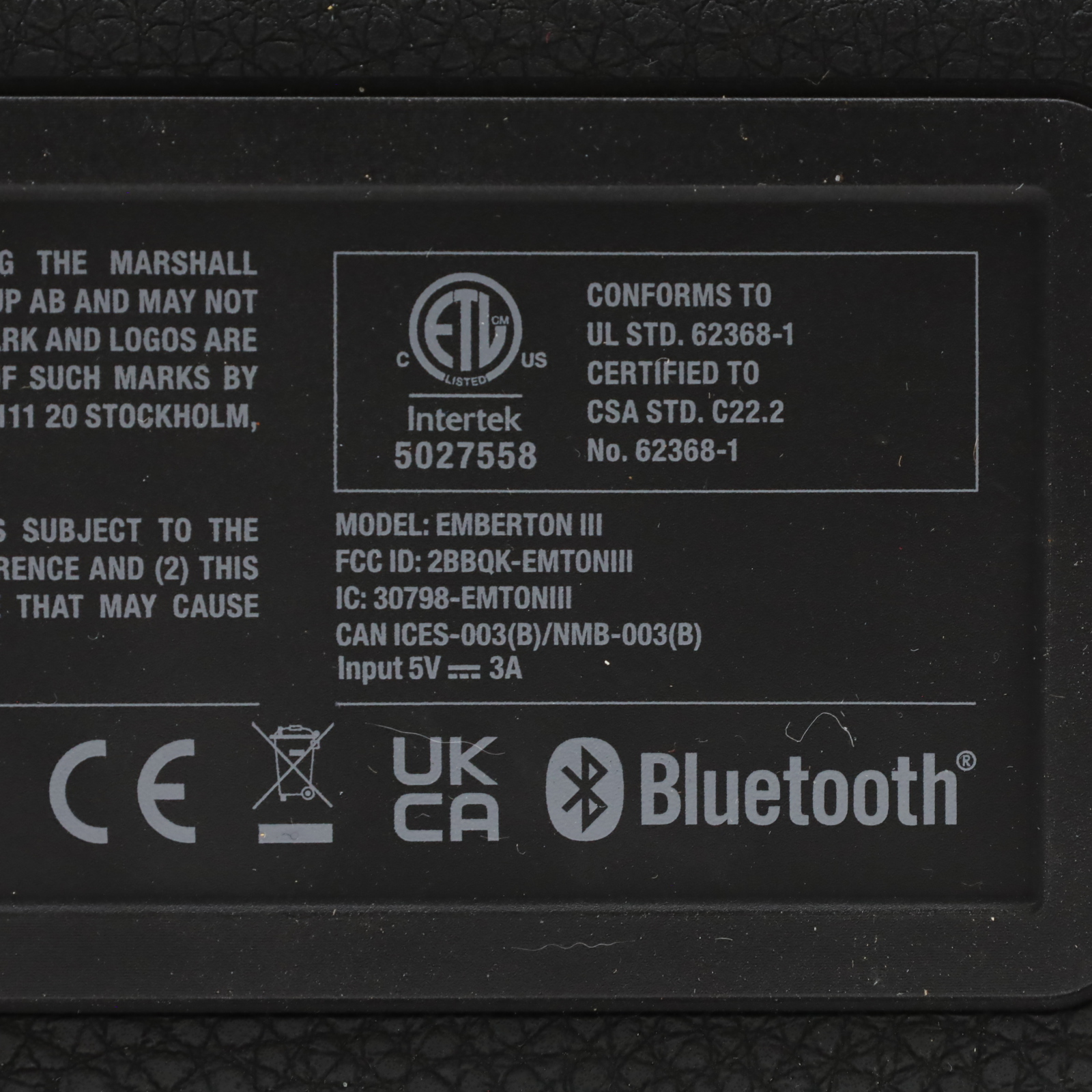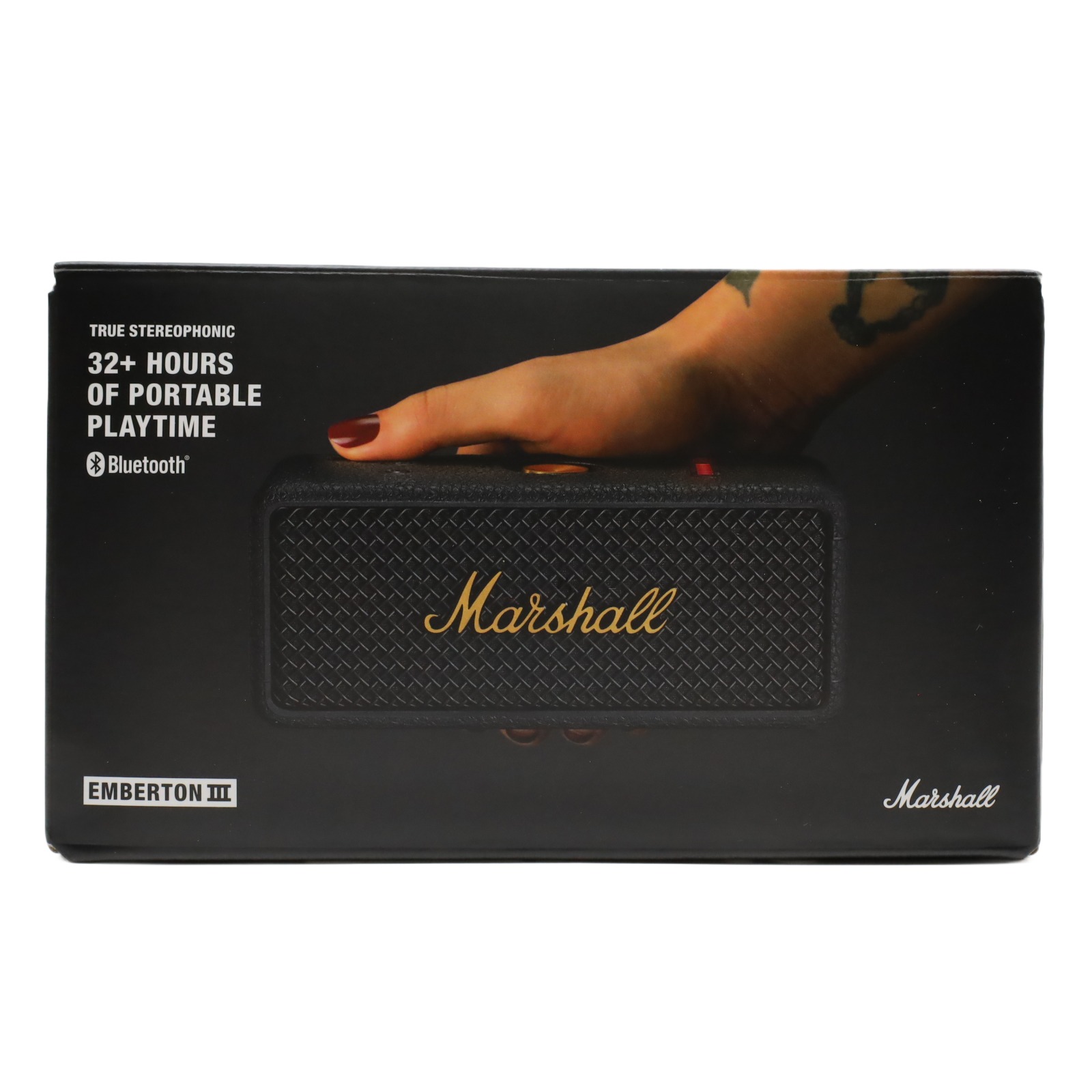 Features a rugged silicone exterior, metal grille, and an IP67 dust and water resistance rating, making it suitable for outdoor use. It delivers 360° True Stereophonic sound designed to provide balanced audio from any position, with Dynamic Loudness adjusting frequencies as the volume changes. The unit includes a built-in microphone for hands-free calling and supports Bluetooth LE Audio-ready functionality for future audio sharing features. Its design reflects classic Marshall styling with a textured finish and front grill while focusing on straightforward operation for everyday use.