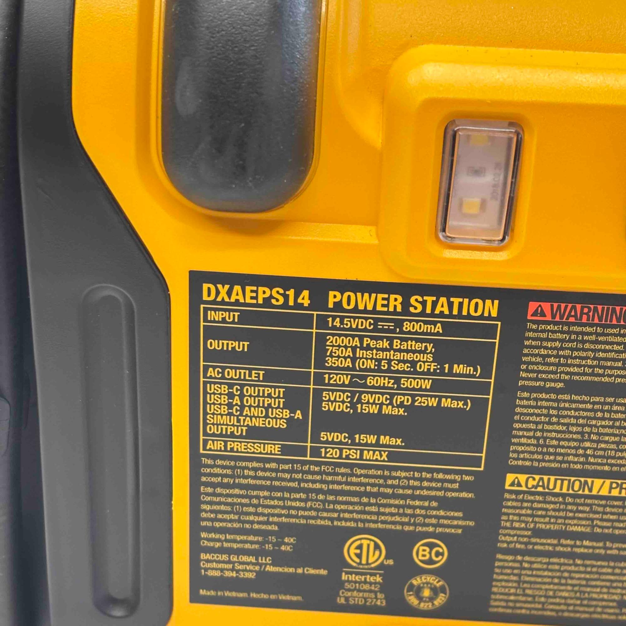 Professional grade power station is one of the most powerful jump starters combined with a 500-Watt AC inverter, USB power, 120 psi digital compressor and LED work light all in a portable package. It's perfect for tailgating parties, long camping trips or roadside assistance. It doesn't matter whether your car won't start, your phone battery is dying or your tire's running flat the DXAEPS14 is the perfect tool for the job.