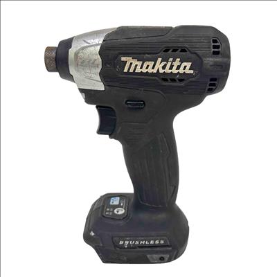 The Makita 18V LXT Brushless Cordless Impact Driver features a compact design with a powerful brushless motor that delivers efficient performance for fastening and driving applications. This impact driver operates at variable speeds ranging from 0 to 4100 impacts per minute, providing versatility for various tasks while ensuring durability with a precision-engineered metal and black-and-silver construction optimized for professional use.