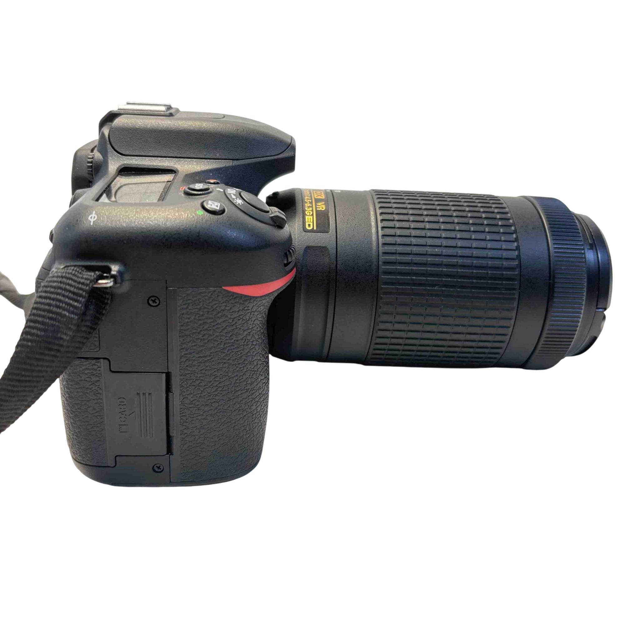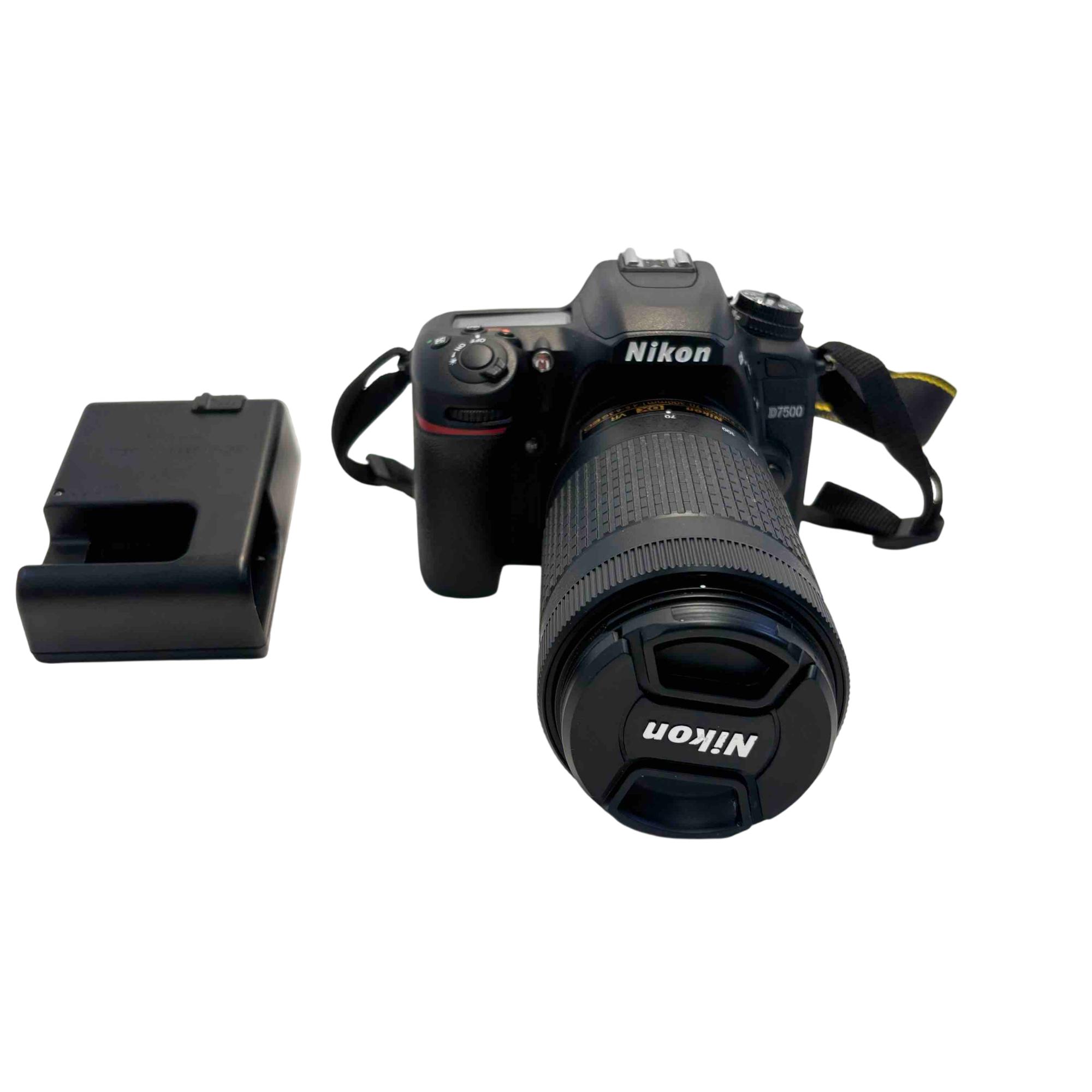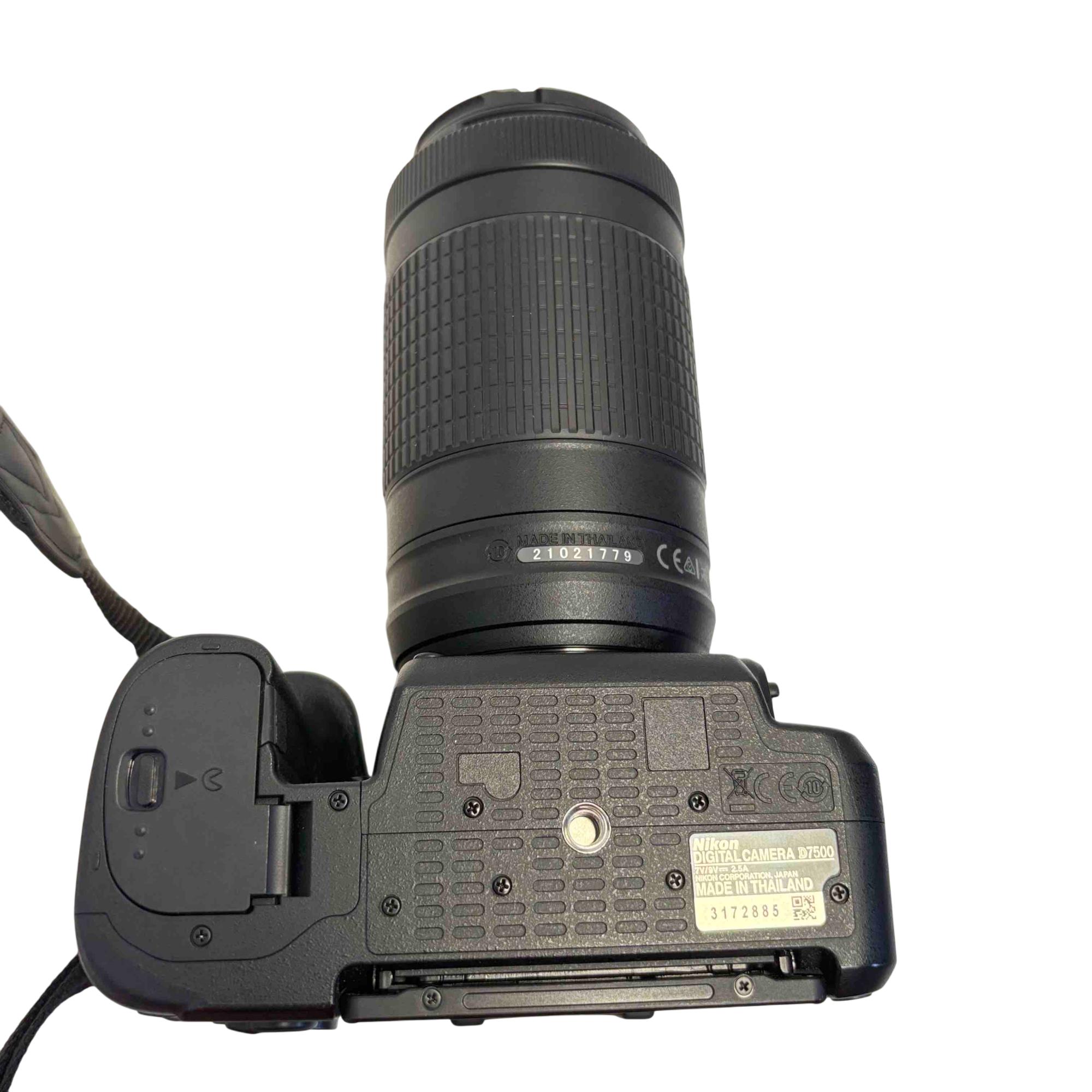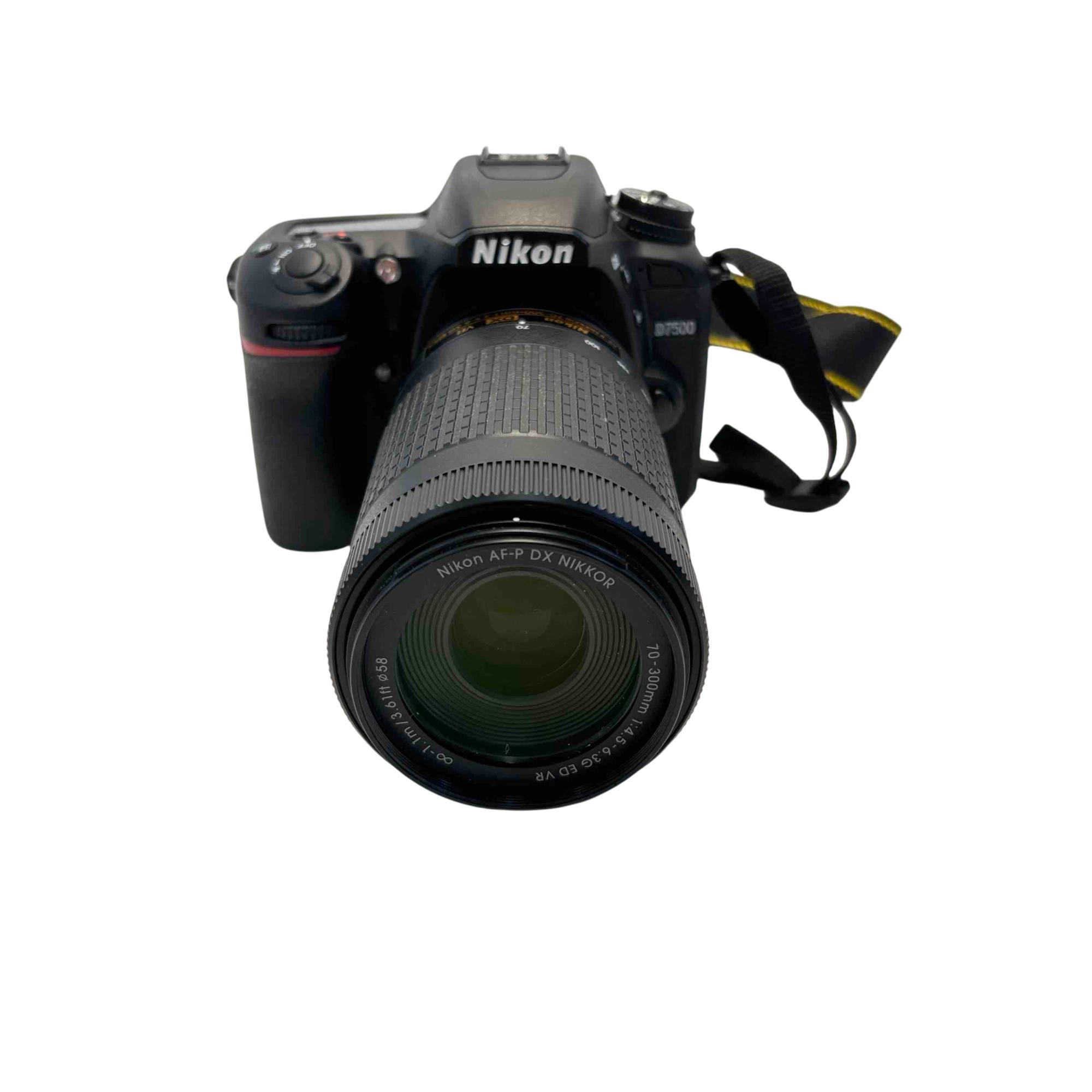 The Nikon D7500 DSLR Camera with AF-P DX NIKKOR 70-300mm f/4.5-6.3G ED VR Lens delivers versatile zoom capabilities ideal for capturing distant subjects with sharp detail. This digital single-lens reflex camera features advanced vibration reduction technology and a robust DX-format sensor for high-resolution images and 4K video recording. Designed for enthusiasts, it combines powerful optics with intuitive controls to enhance photographic precision in various shooting environments.