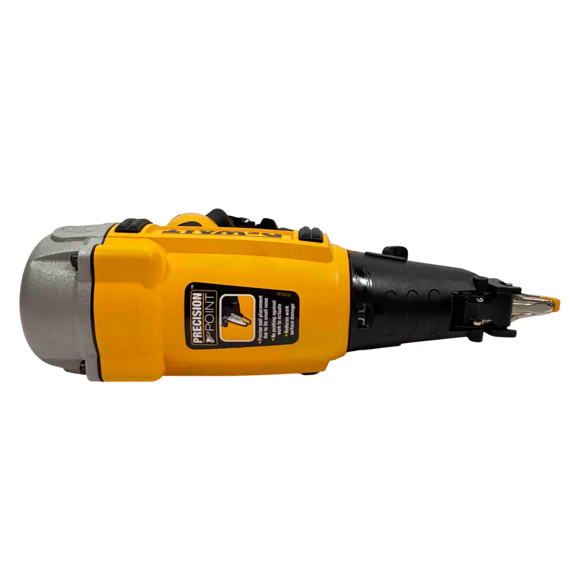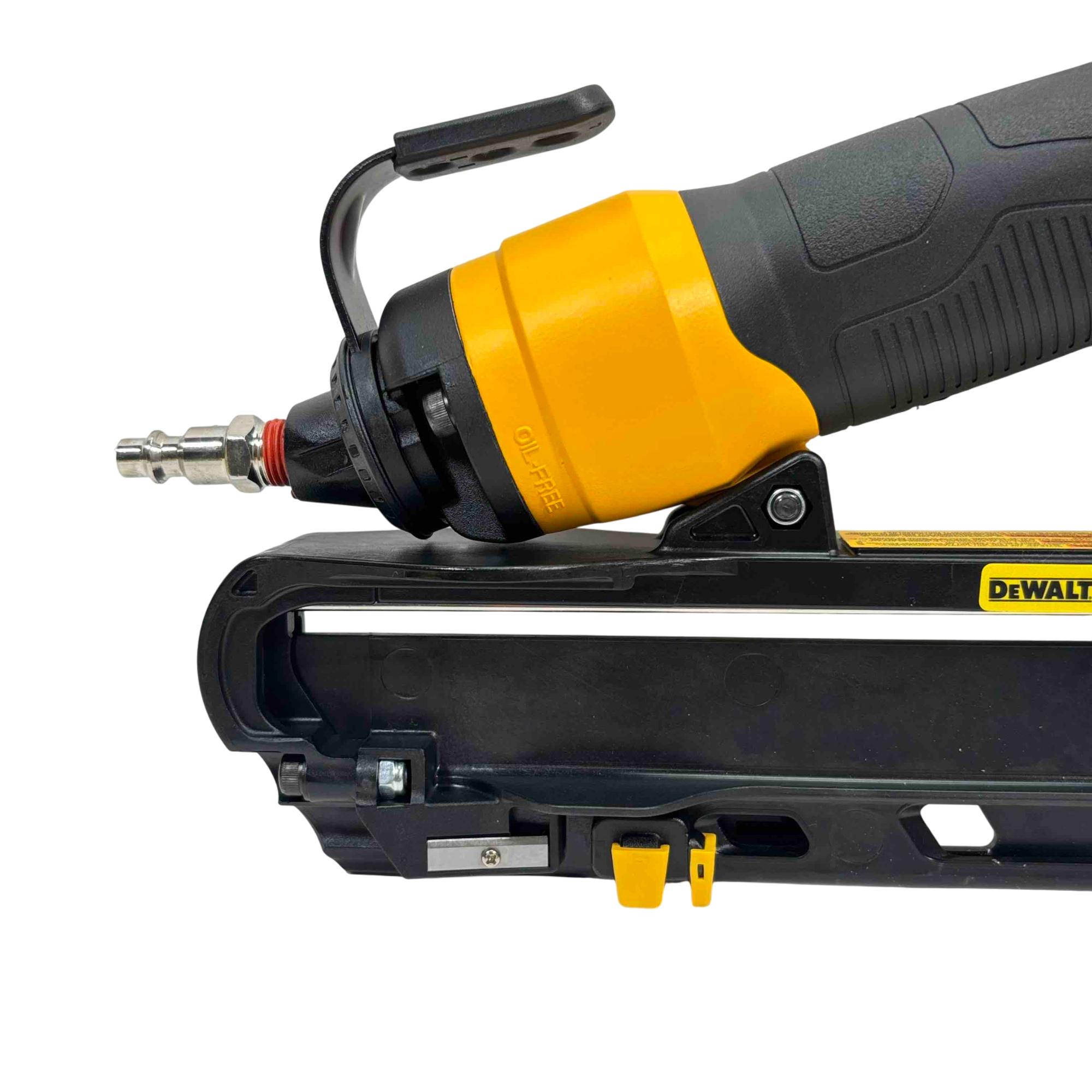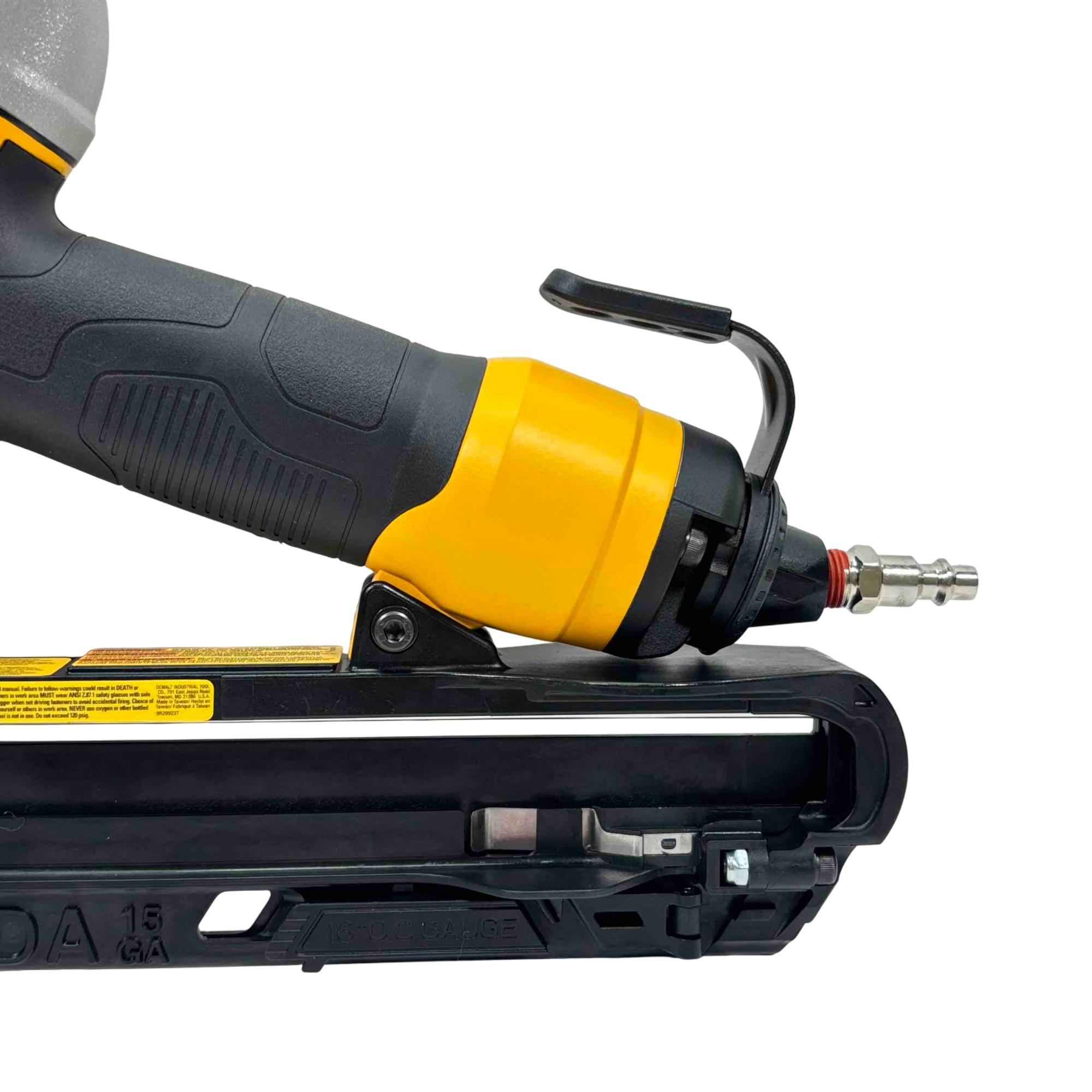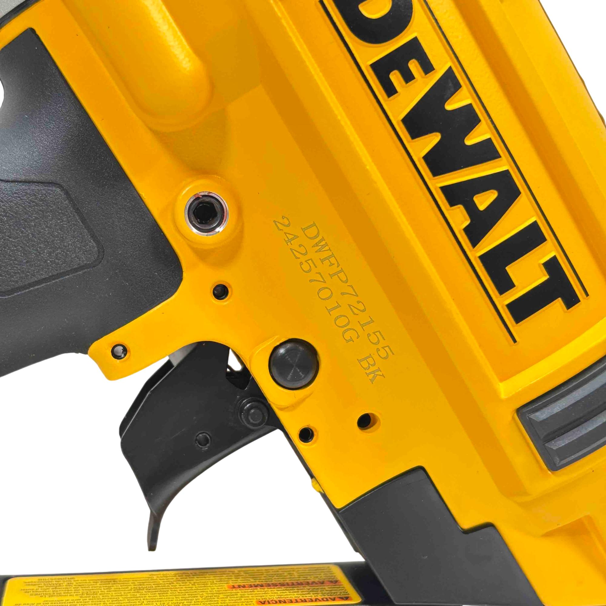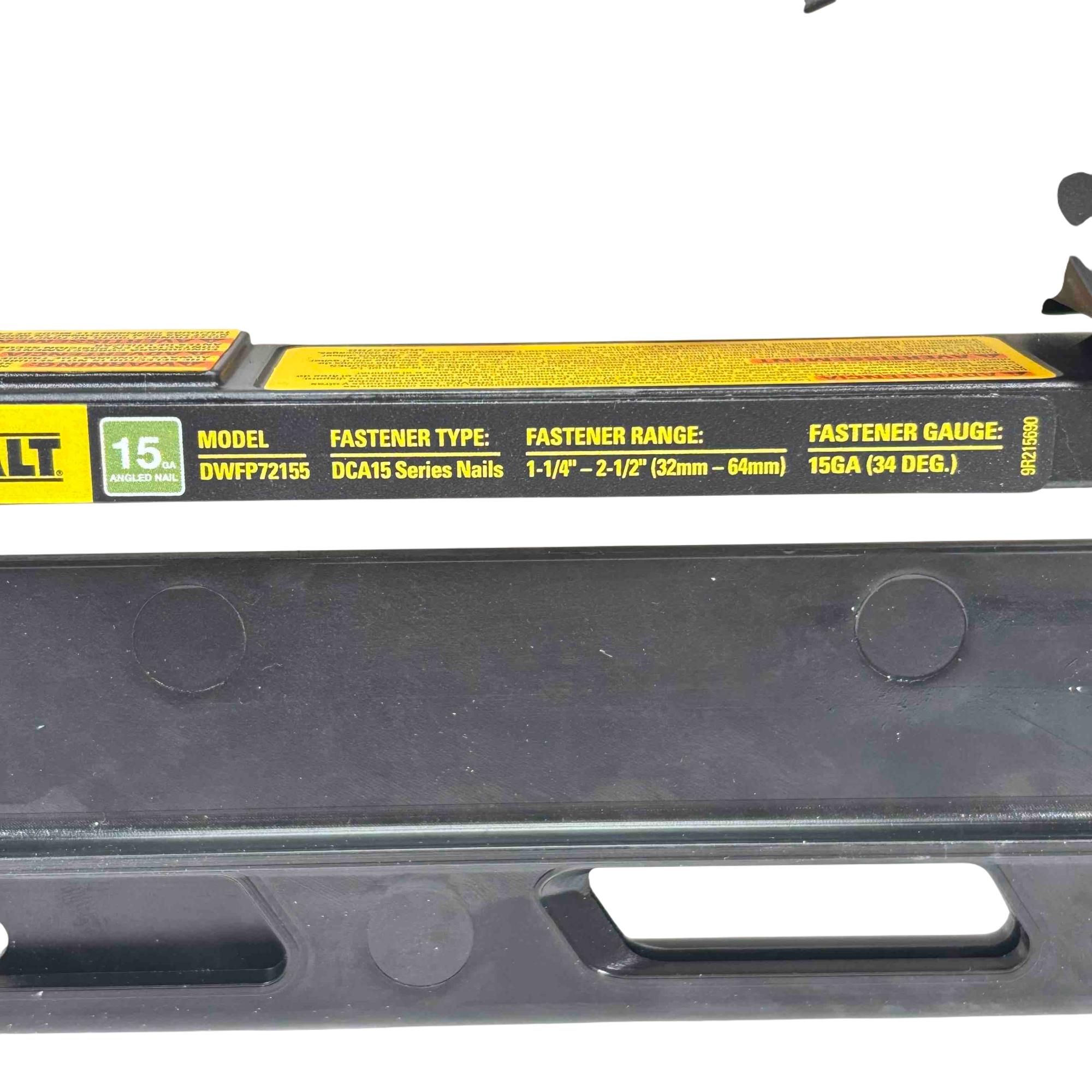 DEWALT DWFP72155 15-Gauge Angled Finish Nailer offers precise angled nailing designed for finish carpentry and trim work. Engineered with a robust yellow and black construction, this power tool ensures accurate nail placement with minimal surface damage, enhancing professional-quality results on a variety of woodworking projects.