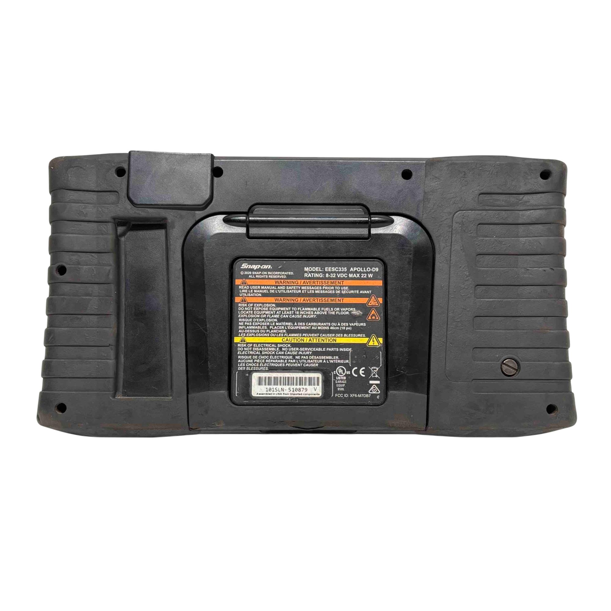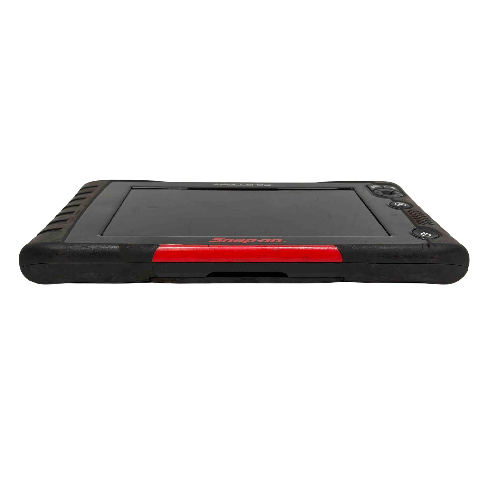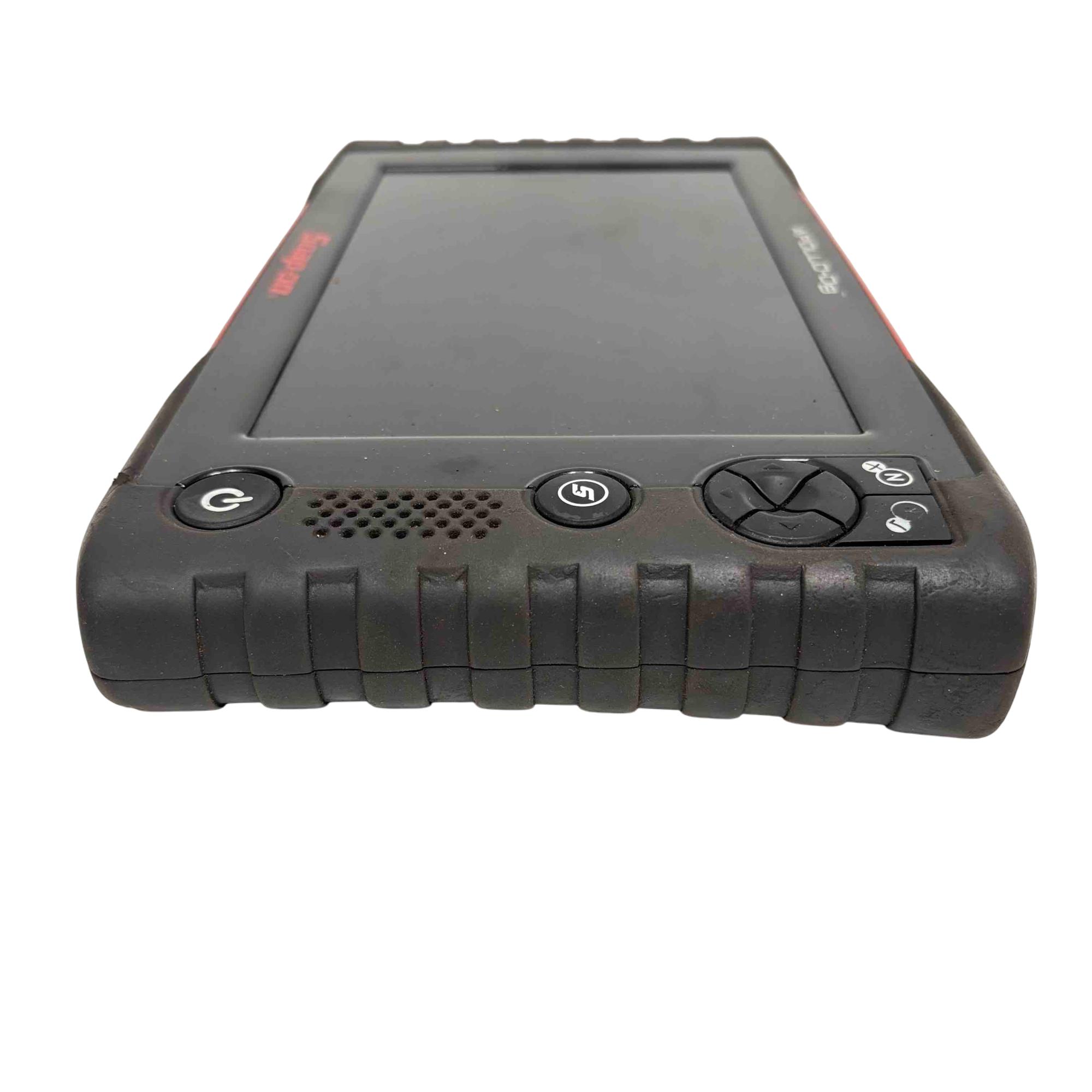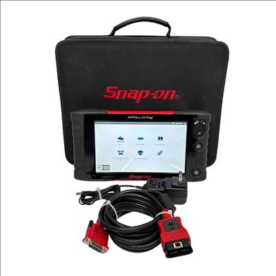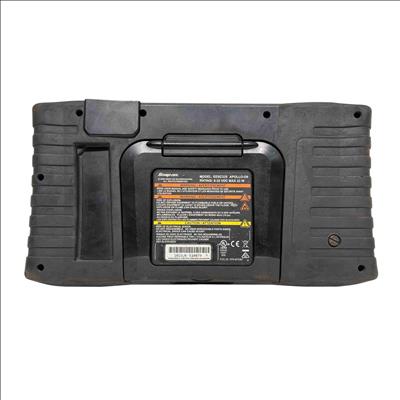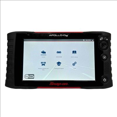 A diagnostic scan tool designed for professional vehicle diagnostics with enhanced coverage for nearly 50 makes. It features a 9-inch capacitive touchscreen with 1024x600 resolution, and includes both touchscreen navigation and a physical 4-way keypad with Y/N button. The tool supports intelligent diagnostics such as Smart Data, which filters and highlights relevant parameters based on fault codes, and provides access to OEM TSBs, SureTrack real fixes, and commonly replaced parts. It offers comprehensive system coverage including hybrids, TPMS, EVAP, and clean diesels, with the ability to perform bi-directional controls, functional tests, and reset procedures. Live data can be viewed as graphs or text, and up to eight parameters can be monitored at once. Reports can be saved, printed, or shared via the Snap-on cloud.