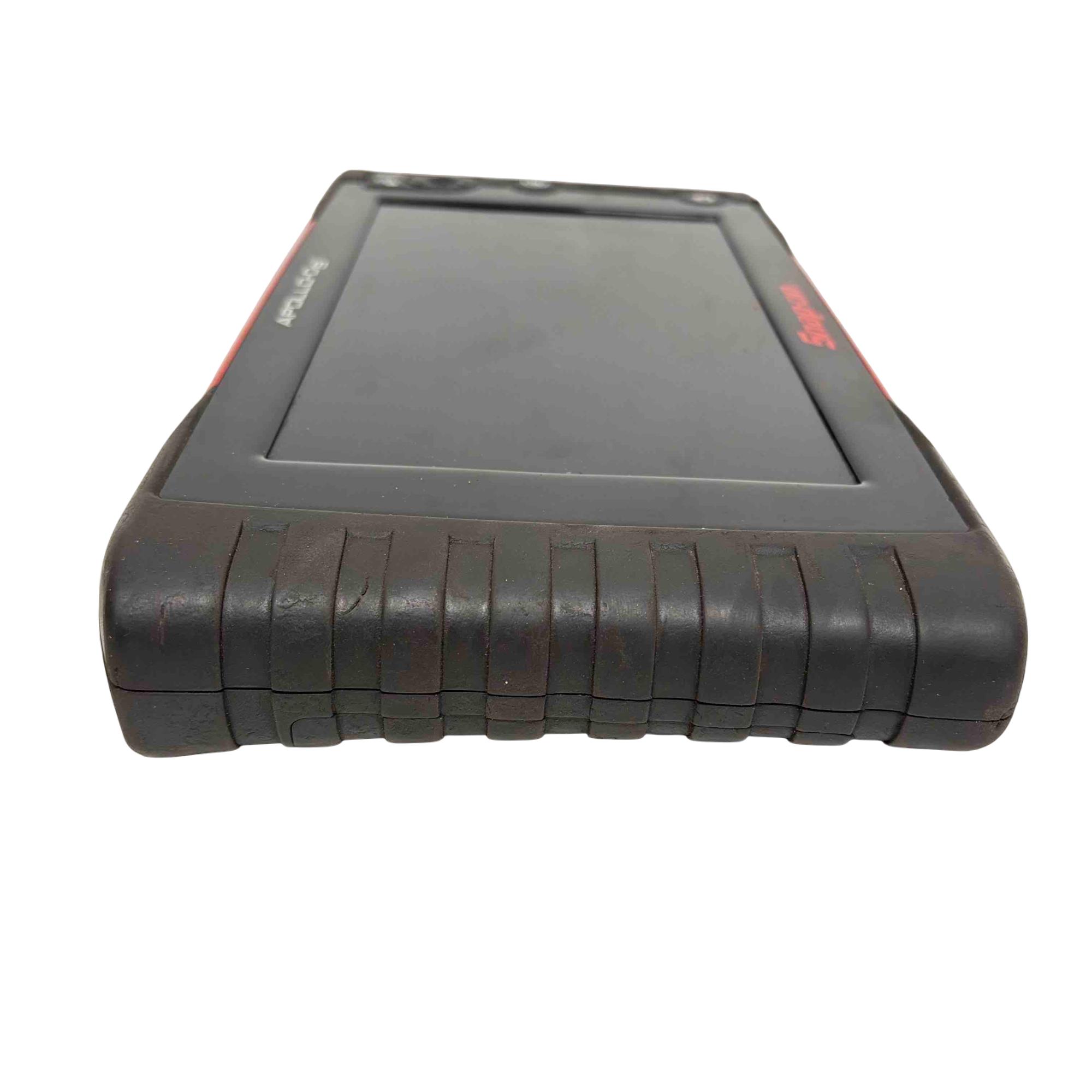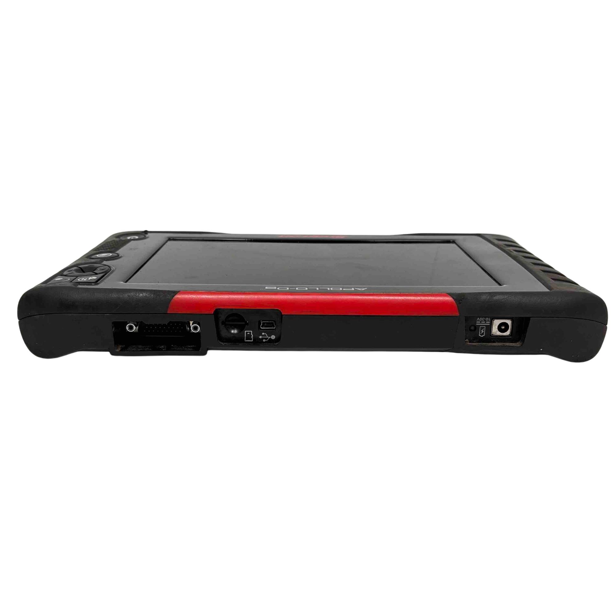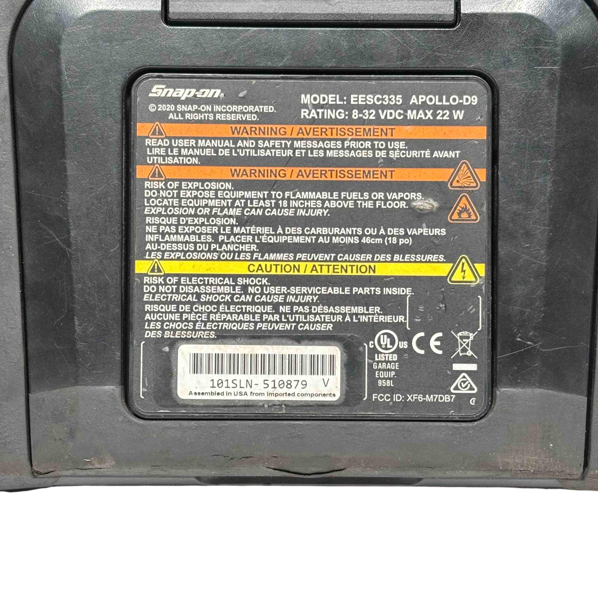 A diagnostic scan tool designed for professional vehicle diagnostics with enhanced coverage for nearly 50 makes. It features a 9-inch capacitive touchscreen with 1024x600 resolution, and includes both touchscreen navigation and a physical 4-way keypad with Y/N button. The tool supports intelligent diagnostics such as Smart Data, which filters and highlights relevant parameters based on fault codes, and provides access to OEM TSBs, SureTrack real fixes, and commonly replaced parts. It offers comprehensive system coverage including hybrids, TPMS, EVAP, and clean diesels, with the ability to perform bi-directional controls, functional tests, and reset procedures. Live data can be viewed as graphs or text, and up to eight parameters can be monitored at once. Reports can be saved, printed, or shared via the Snap-on cloud.