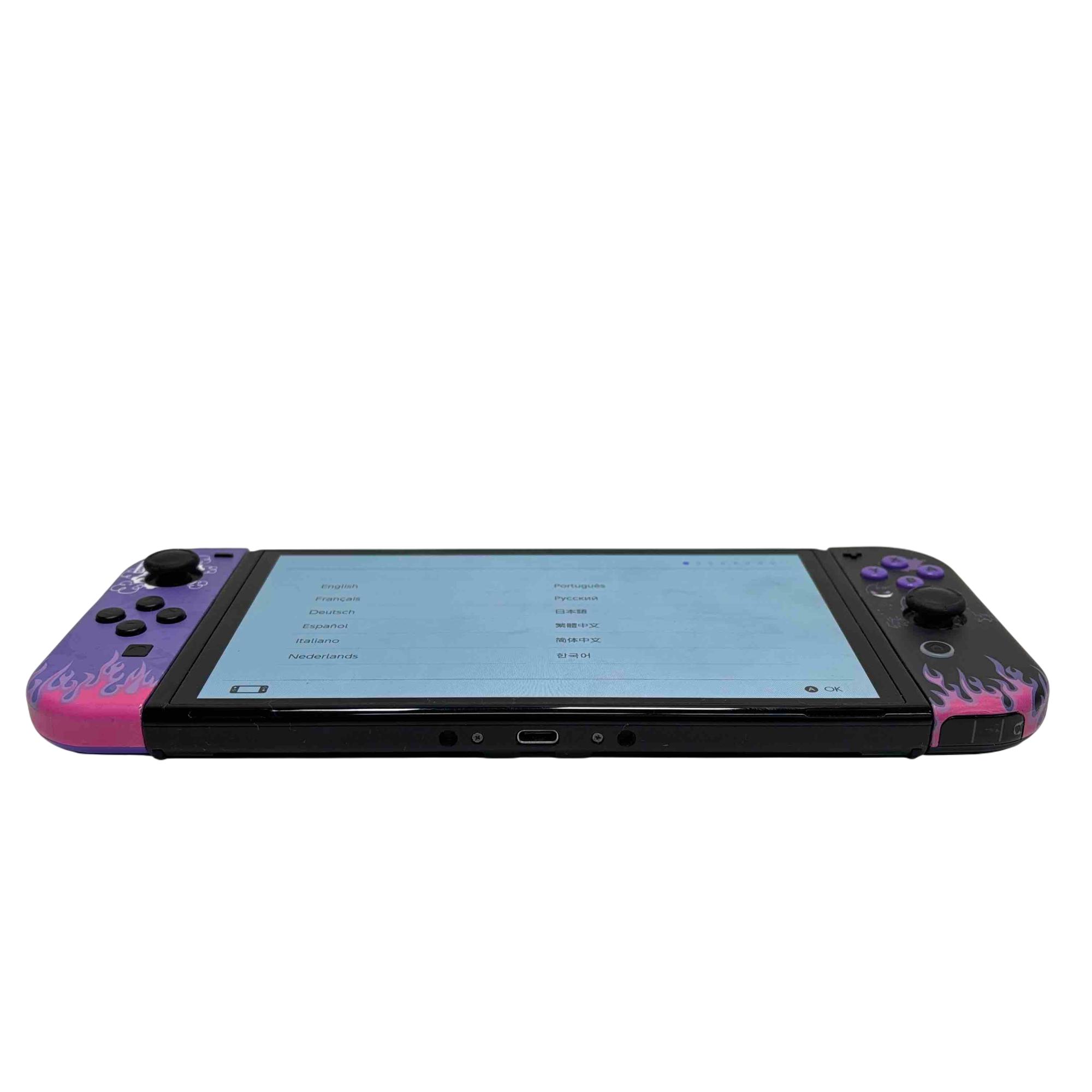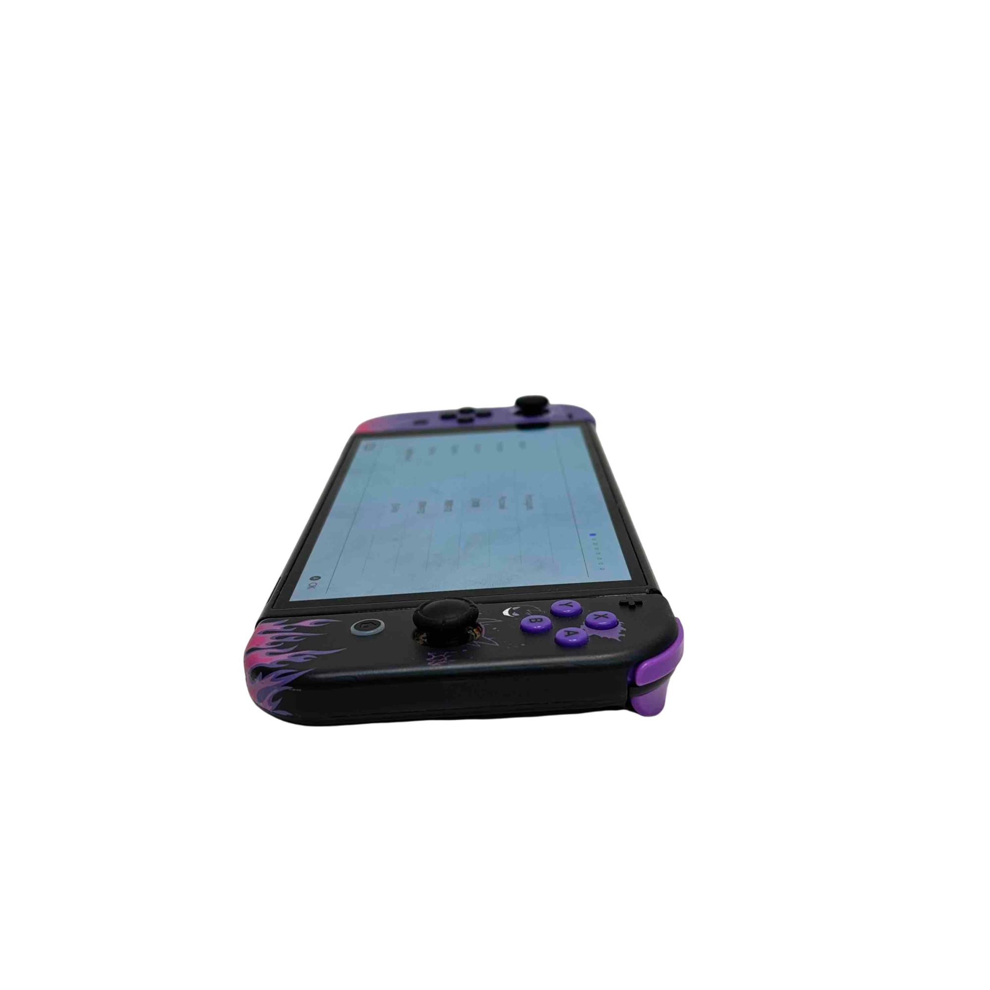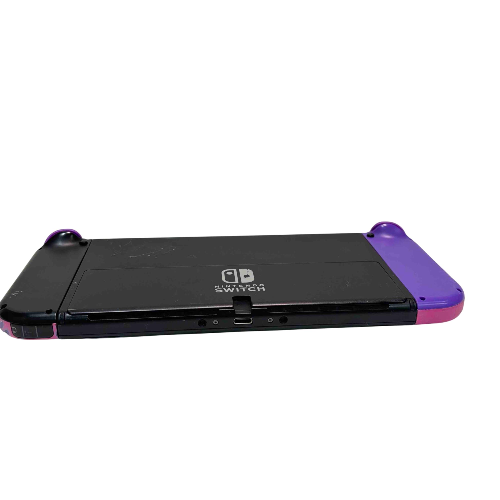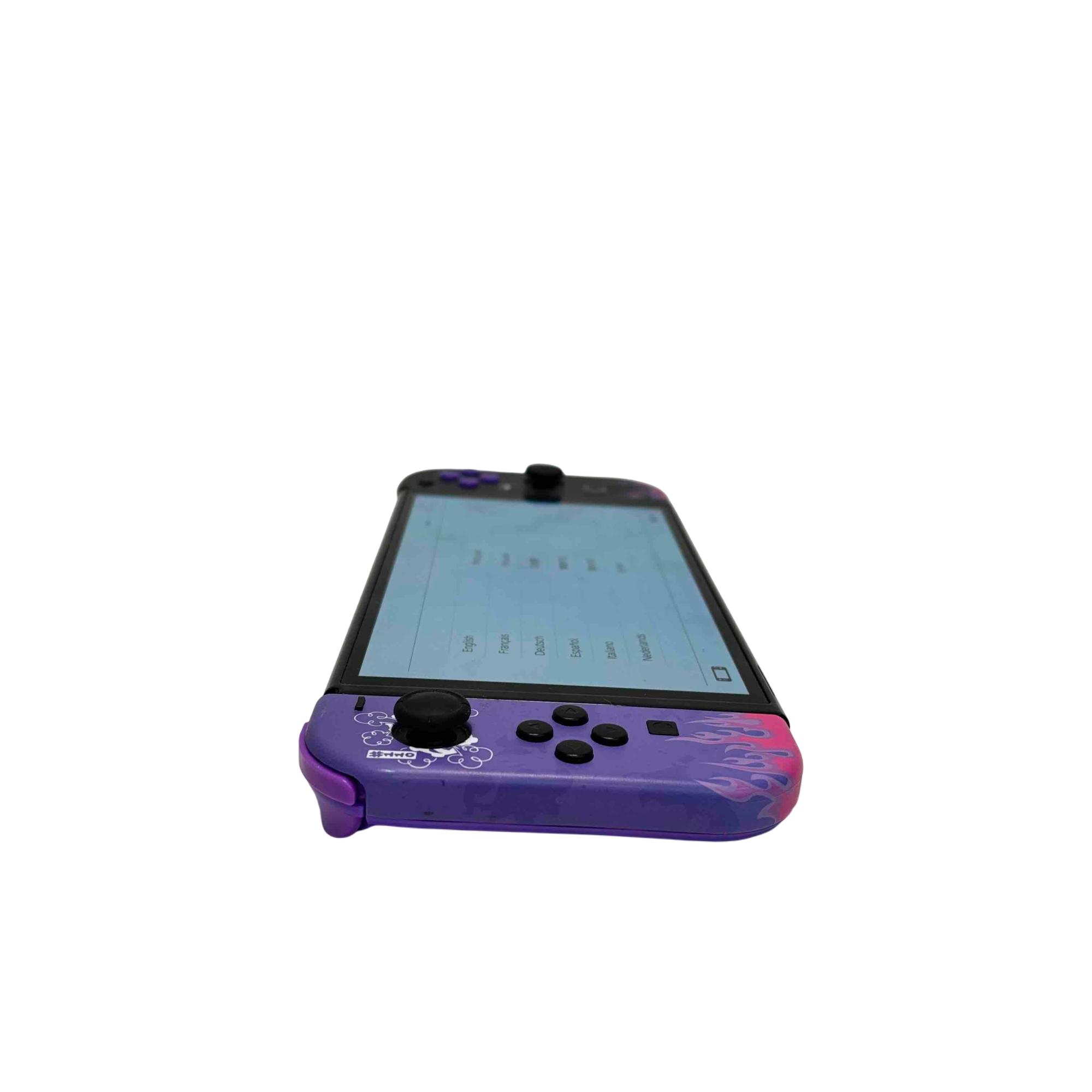This Nintendo Switch OLED Model HEG-001 features a vibrant 7-inch OLED screen that delivers stunning visuals for an immersive gaming experience. The console showcases custom Gengar and purple Joy-Con skins inspired by Pokemon Scarlet & Violet, combining unique style with premium handheld gaming performance. It includes enhanced audio and a wide adjustable stand for versatile play modes and comfort.