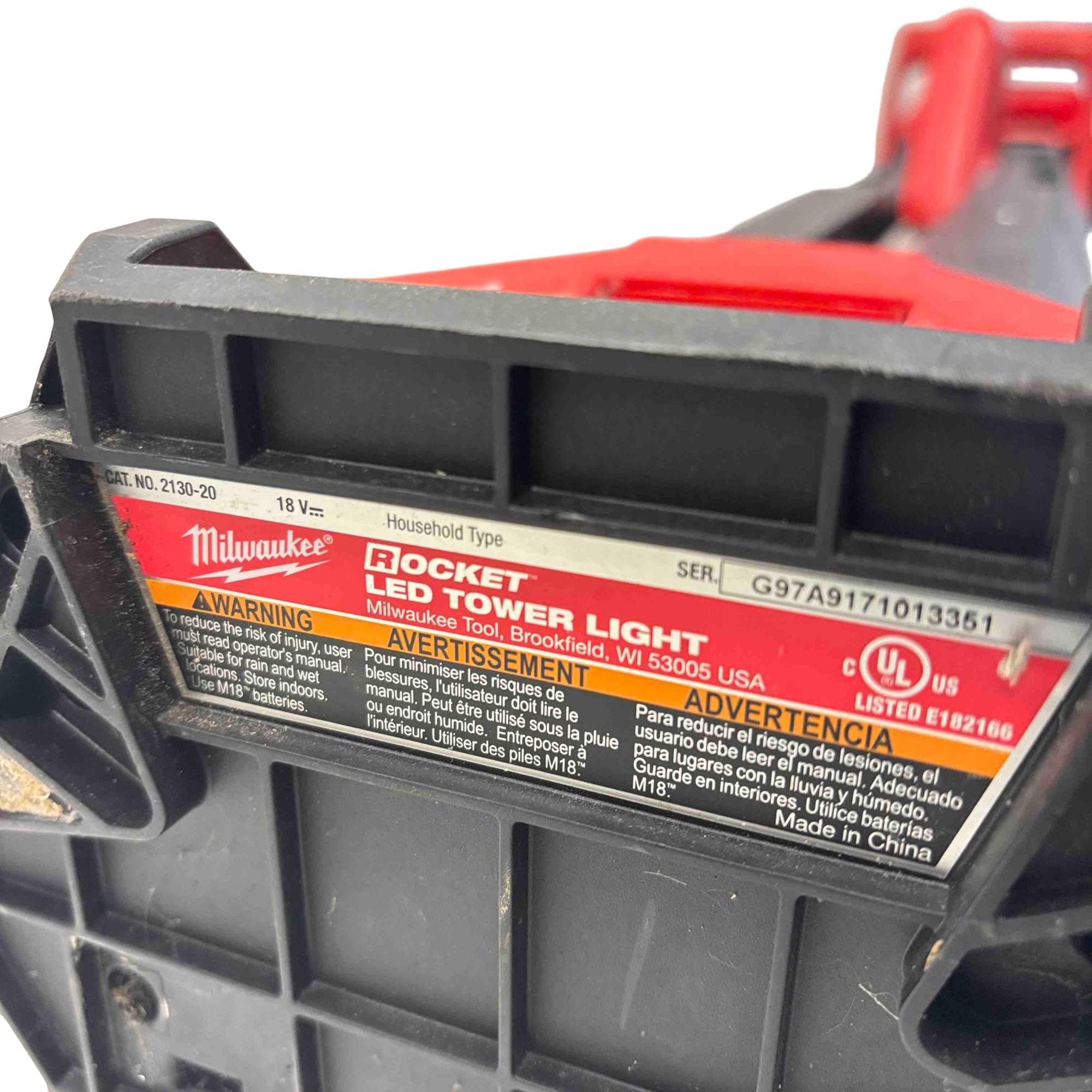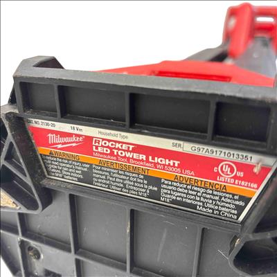 Milwaukee M18 ROCKET LED Tower Light Model 2130-20 is a durable and high-performance lighting solution designed for tough jobsite conditions. This red and black tower light features a robust metal construction with an 18-volt power system optimized for versatile use in various environments, including wet and rainy locations. It delivers bright, focused LED illumination ideal for improving visibility and safety during night work or low-light tasks.