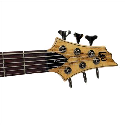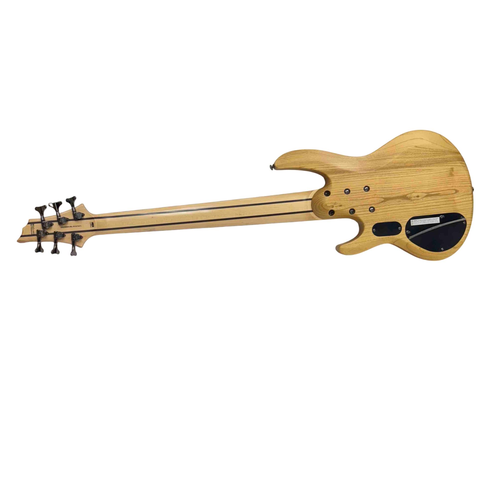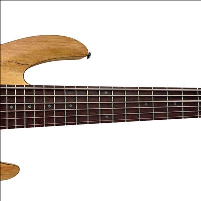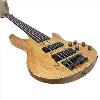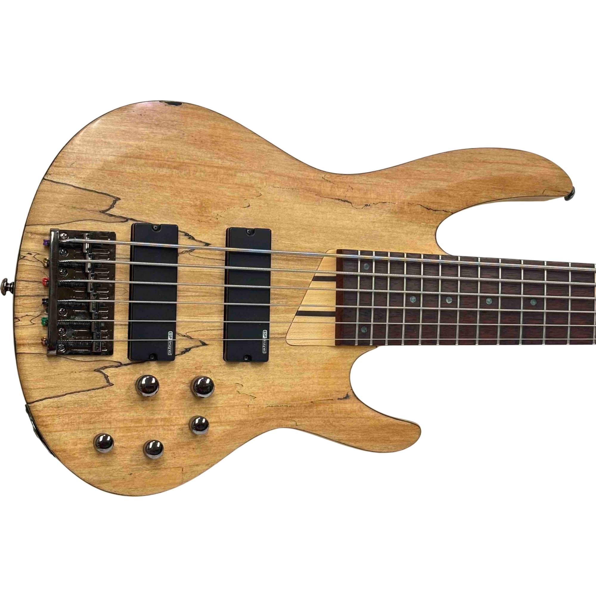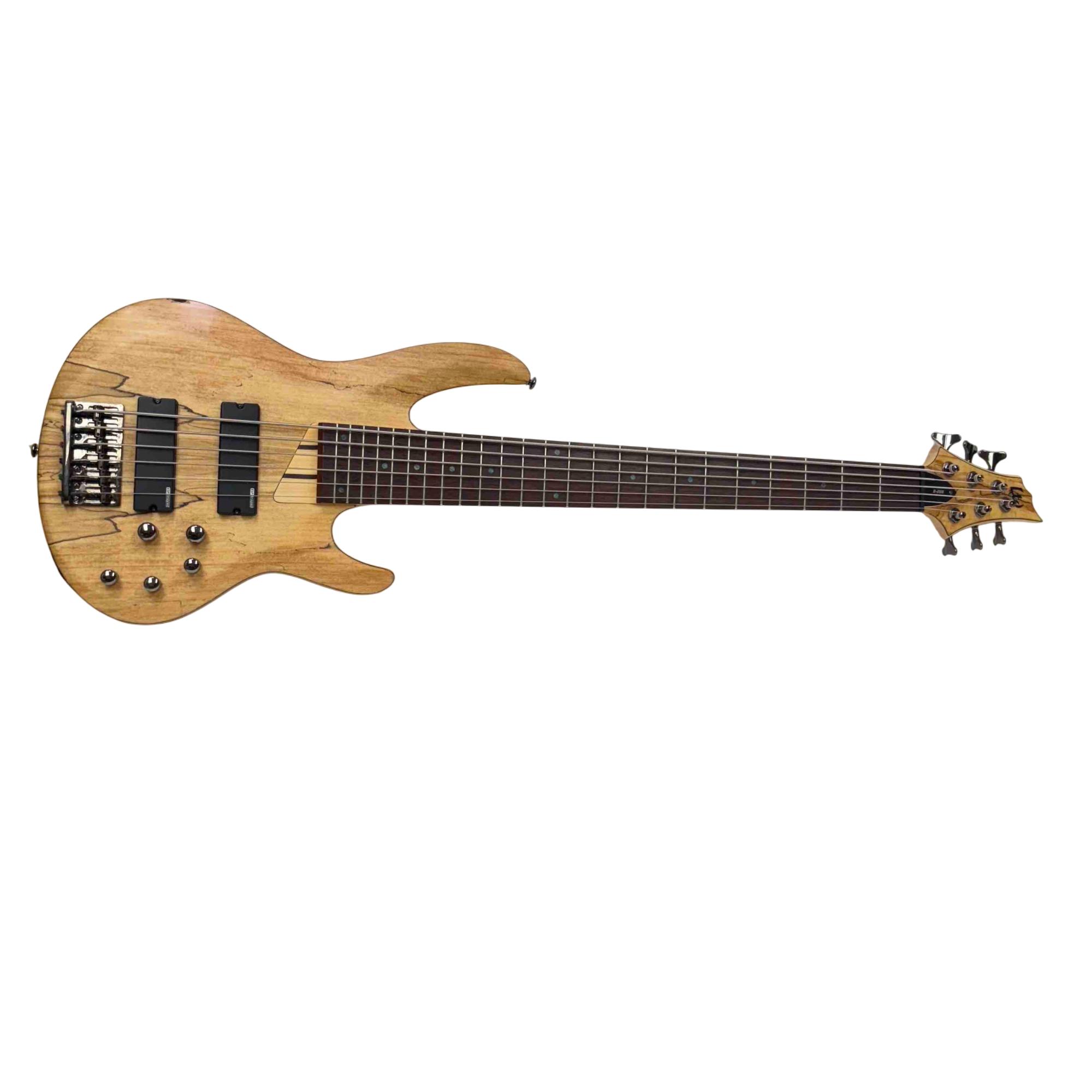 The ESP LTD B-206SM NS Spalted Maple 6-String Electric Bass Guitar features a natural satin finish highlighting its distinctive spalted maple top. This bass guitar combines solid construction with versatile tone options, designed for players seeking rich, dynamic sound across six strings. Its design includes precision hardware and a comfortable neck profile tailored for seamless playability in various musical styles.