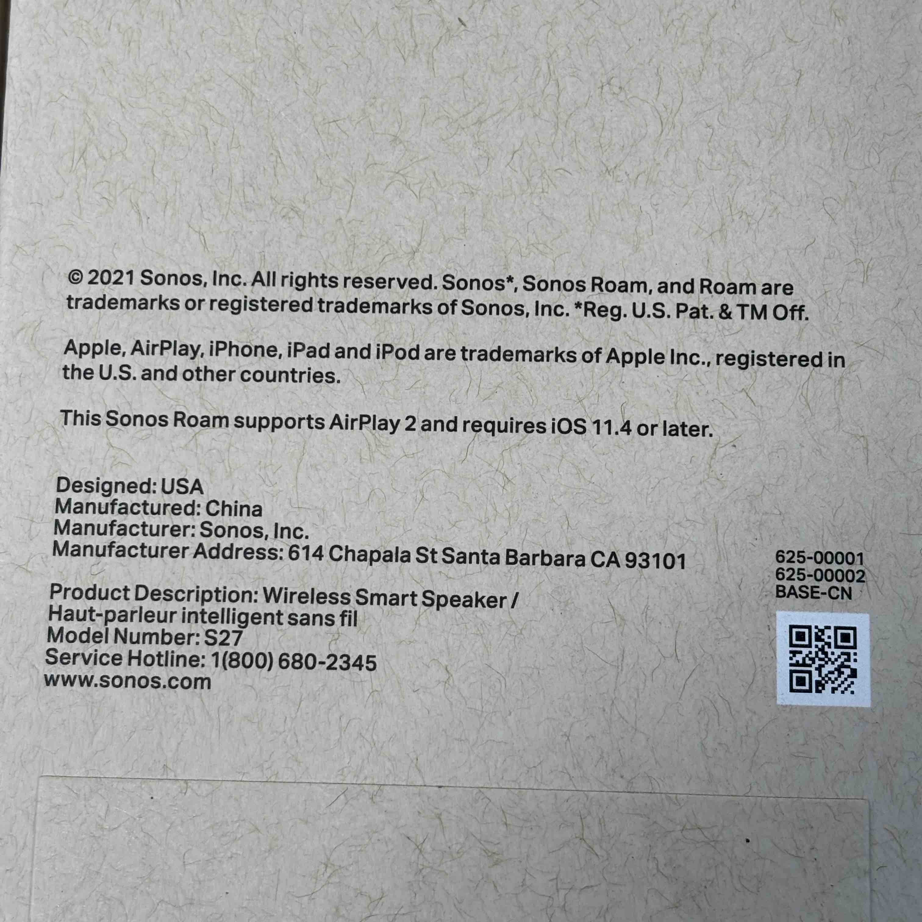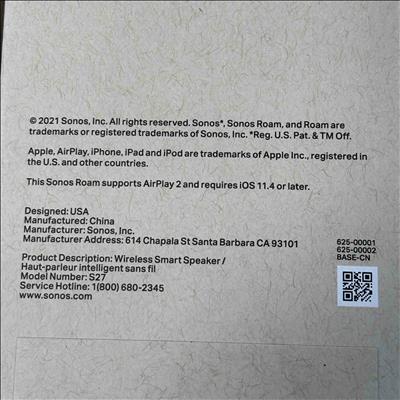 Sonos Roam Portable Smart Speaker delivers rich, clear sound in a compact and lightweight design thats perfect for on-the-go listening. This smart speaker supports seamless WiFi and Bluetooth connectivity, allowing effortless streaming from a wide range of devices. Its durable, water-resistant construction ensures reliable performance both indoors and outdoors.