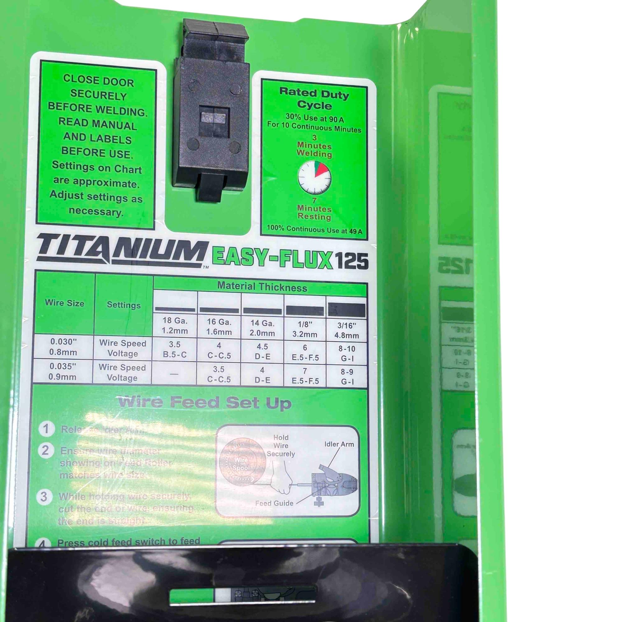 The TITANIUMâ„¢ Easy-Flux 125 Amp Welder is an easy-to-use, lightweight welder that is ideal for basic welding jobs at home or in the shop.