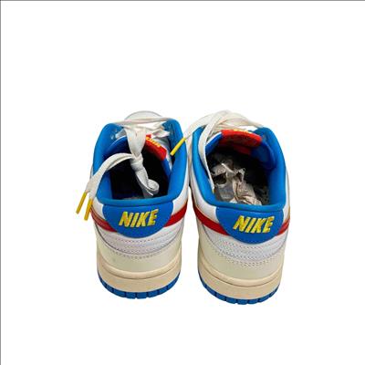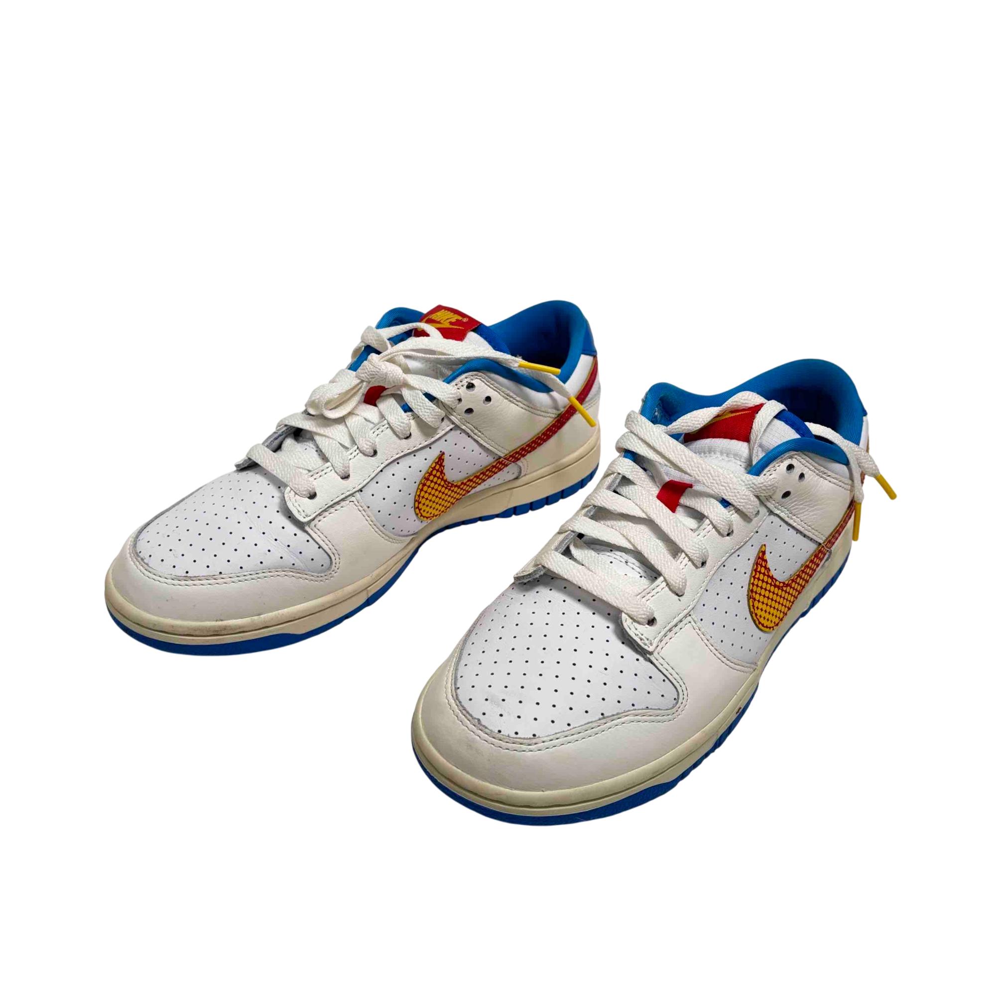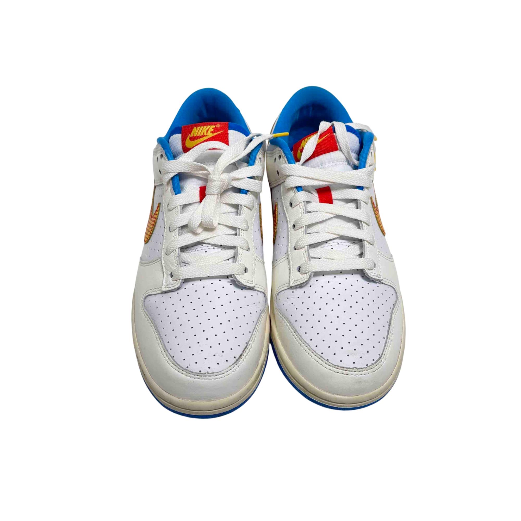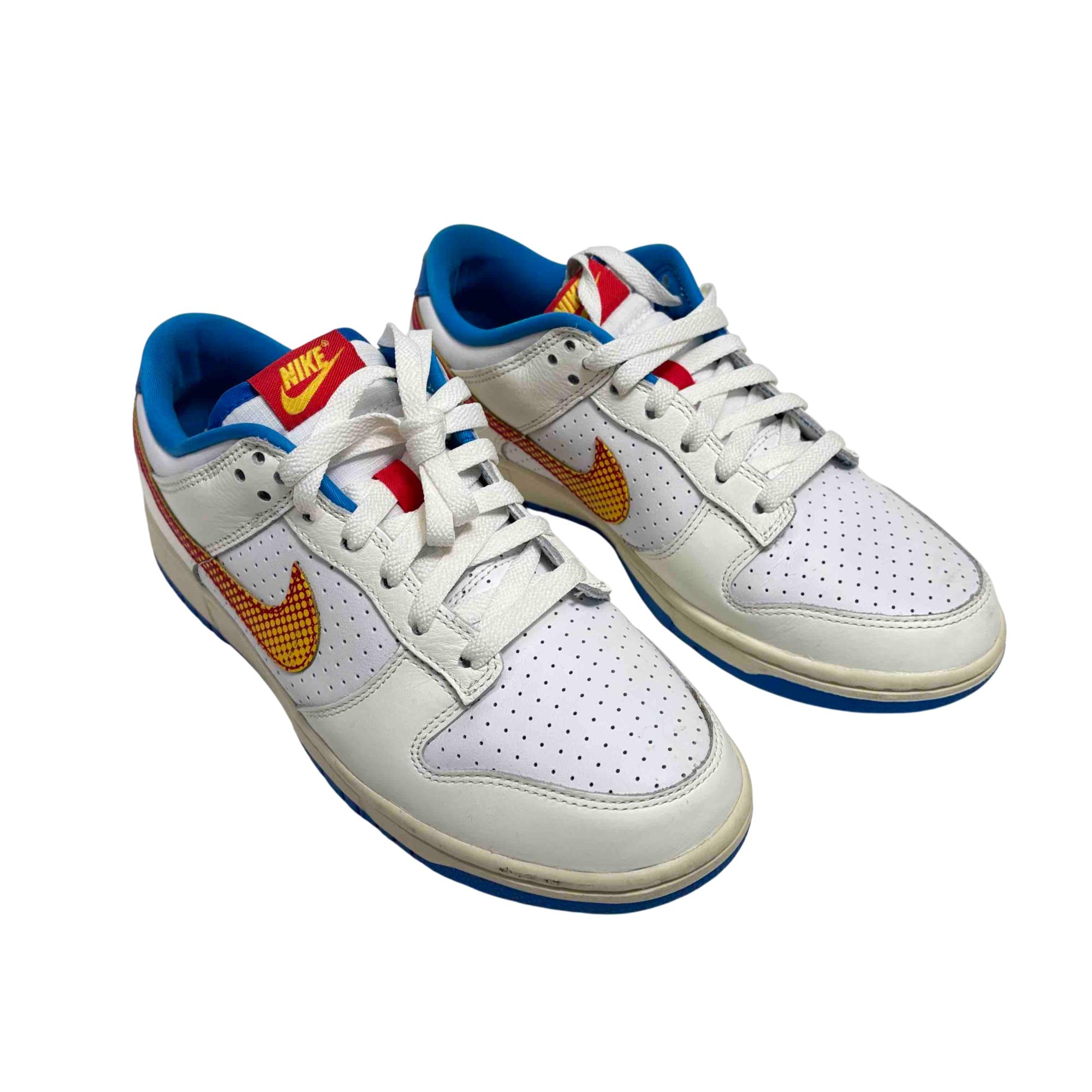 Nike Dunk Low Harlem Globetrotters Pop Art HQ3613-133 features a distinctive white upper with vibrant red and blue accents inspired by the iconic Harlem Globetrotters colors. This low-top sneaker combines classic Dunk silhouette design with bold, colorful detailing and a comfortable fit, making it ideal for both casual wear and athletic activities.