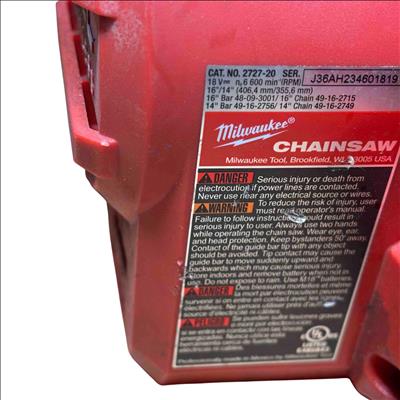 Milwaukee M18 FUEL 16" Cordless Chainsaw (Model 2727-20, Tool Only) delivers powerful cutting performance with advanced brushless motor technology designed for heavy-duty tasks. This cordless chainsaw features a 16-inch bar for efficient lumber and wood cutting, combining high torque and durability in a lightweight, ergonomic design. Optimized for professional use, it ensures enhanced control and reliability in various cutting applications.