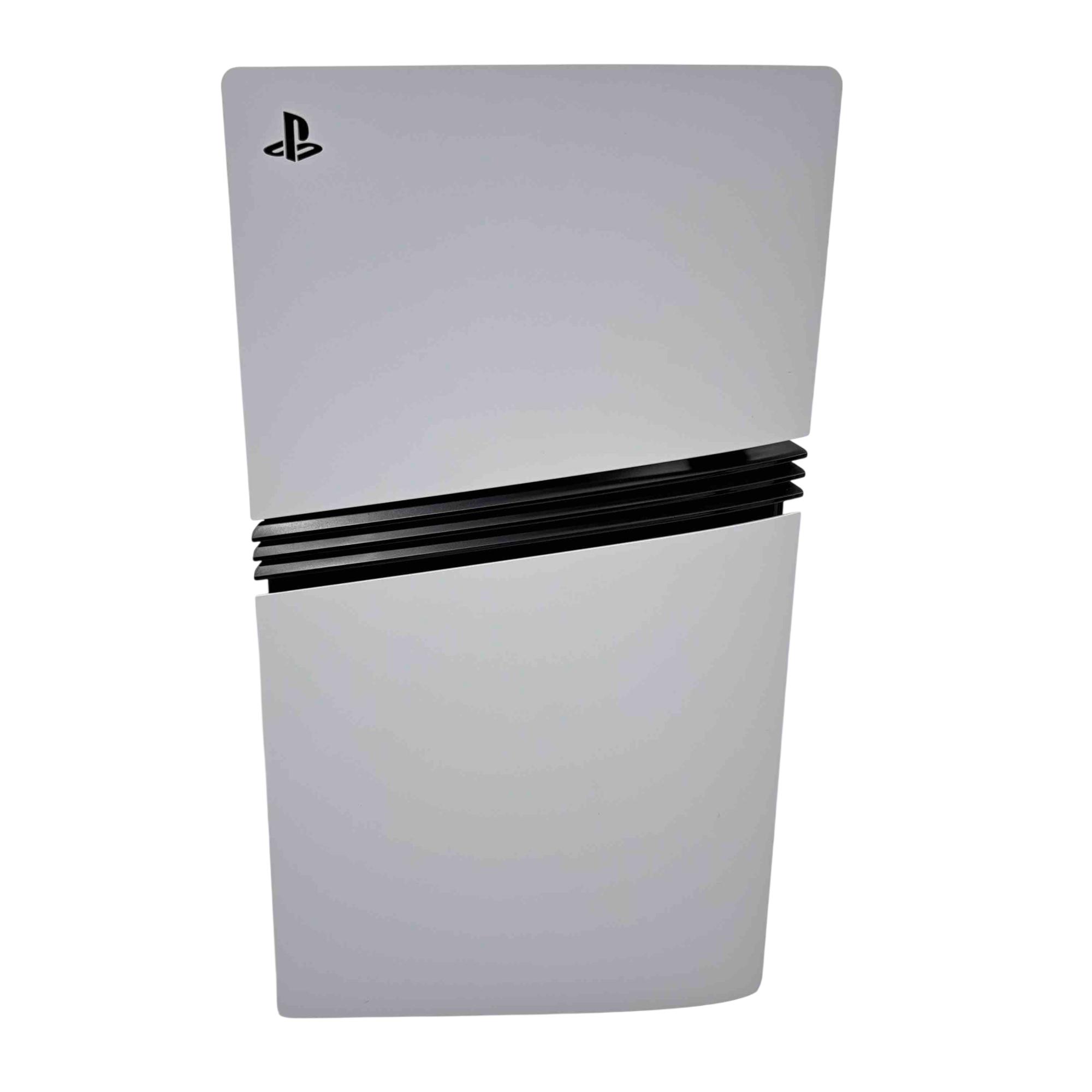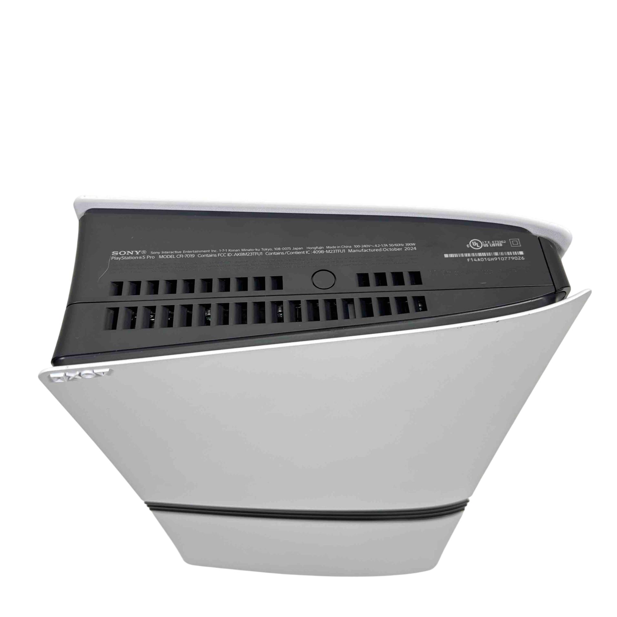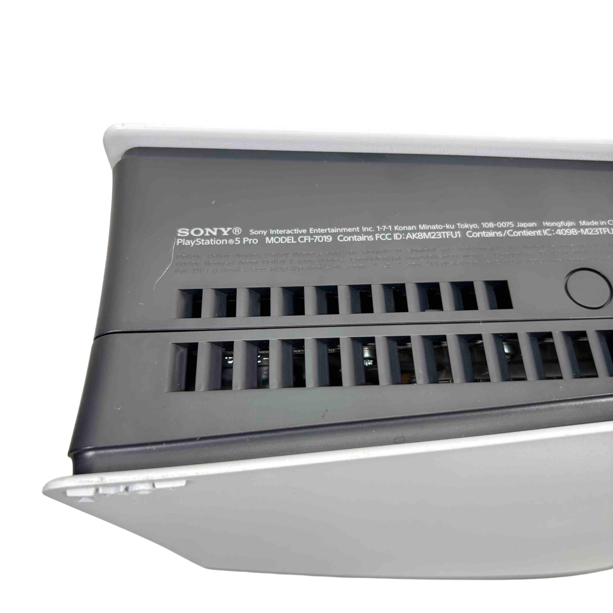 Sony PlayStation 5 Pro Model CFI-7019 is a powerful gaming console featuring a sleek white design with black accents and enhanced processing capabilities. It delivers next-generation graphics and immersive gameplay experiences, optimized for high-performance gaming. The included DualSense controller offers advanced haptic feedback and adaptive triggers for a more interactive gaming session.