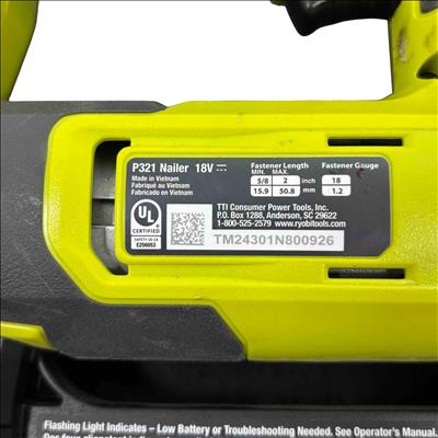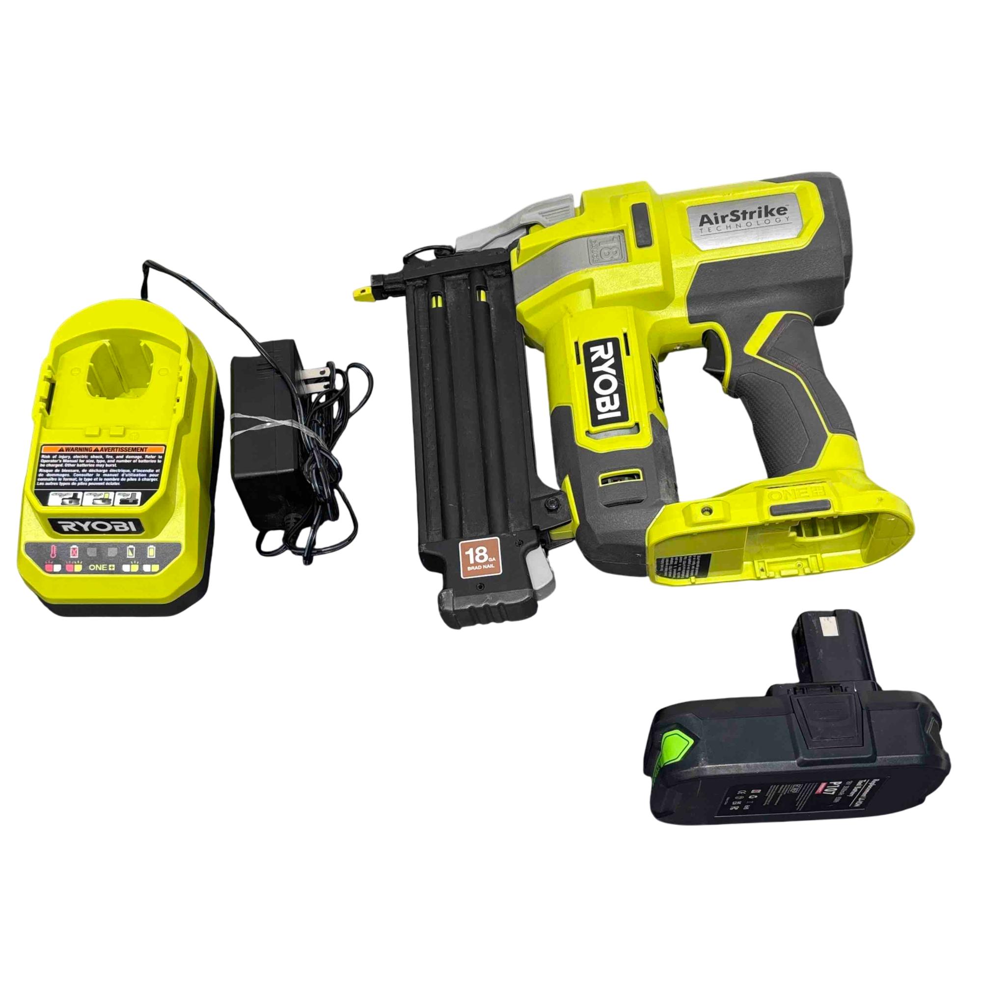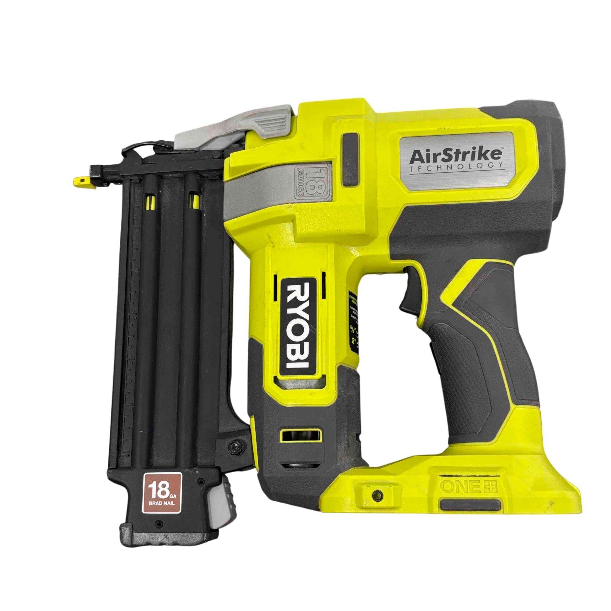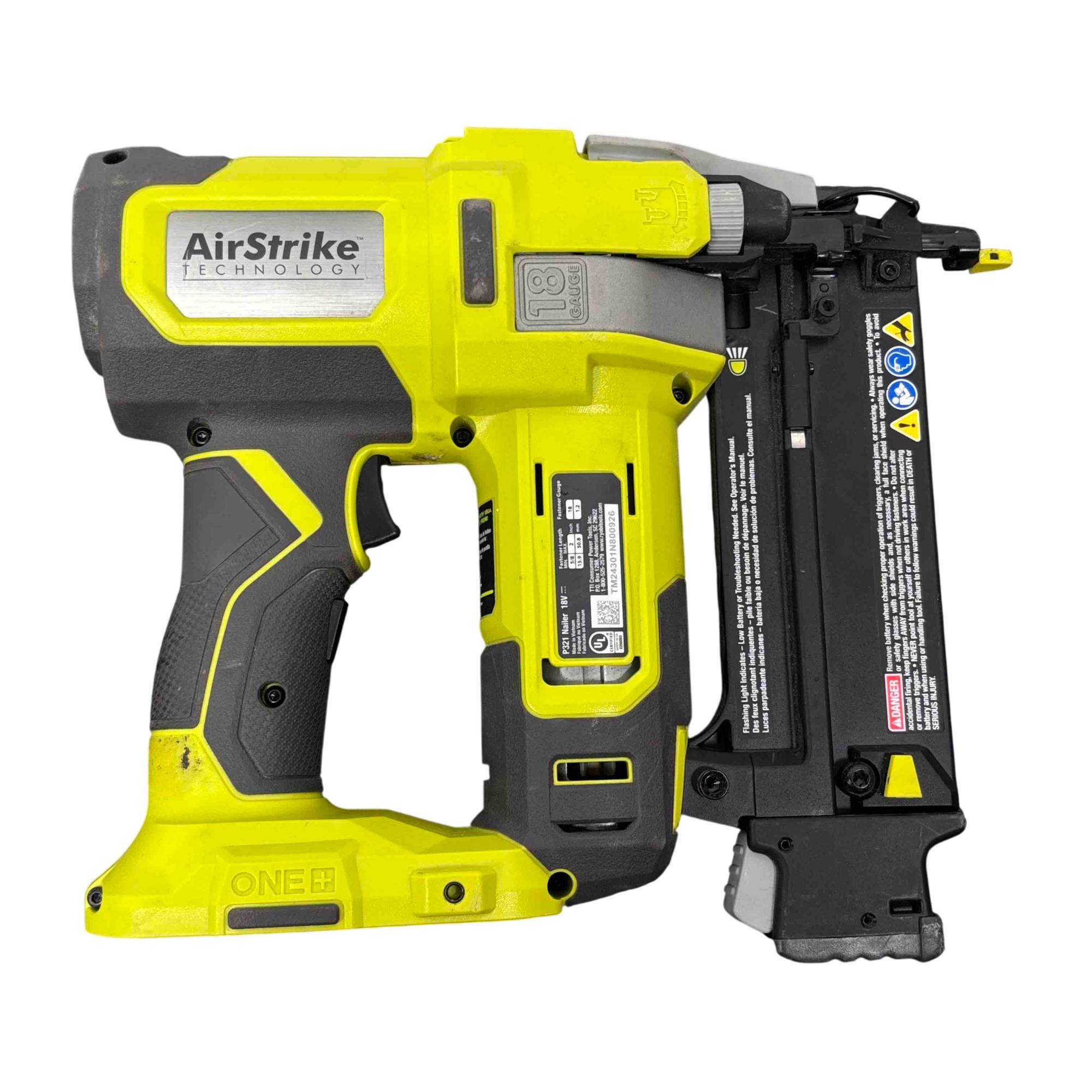 The Ryobi P321 18V ONE+ AirStrike 18-Gauge Cordless Brad Nailer is a versatile and powerful handheld tool designed for precision nailing in woodworking and finishing projects. Featuring cordless AirStrike technology, it delivers consistent driving performance without the need for compressors or hoses, making it ideal for quick and efficient brad nailing. Its compact yellow and black design enhances portability and ease of use on job sites or at home.