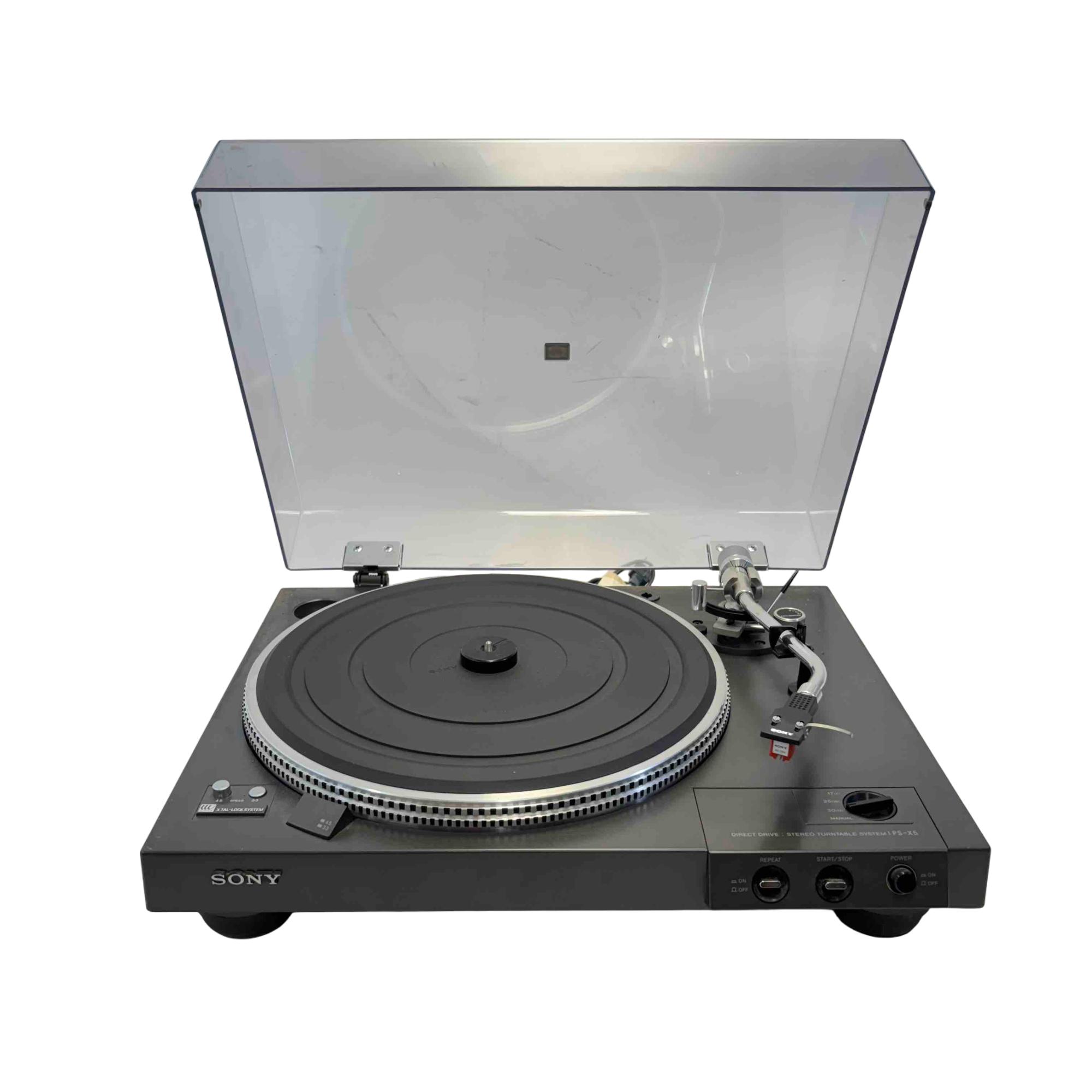 The Sony PS-X5 Direct Drive Stereo Turntable System offers high-fidelity vinyl playback with a robust direct drive motor and precise coaxial-lock mechanism for stable rotation. Featuring a sleek design with a clear plastic cover and intuitive controls, this stereo turntable system delivers reliable performance for audiophiles and vinyl enthusiasts.