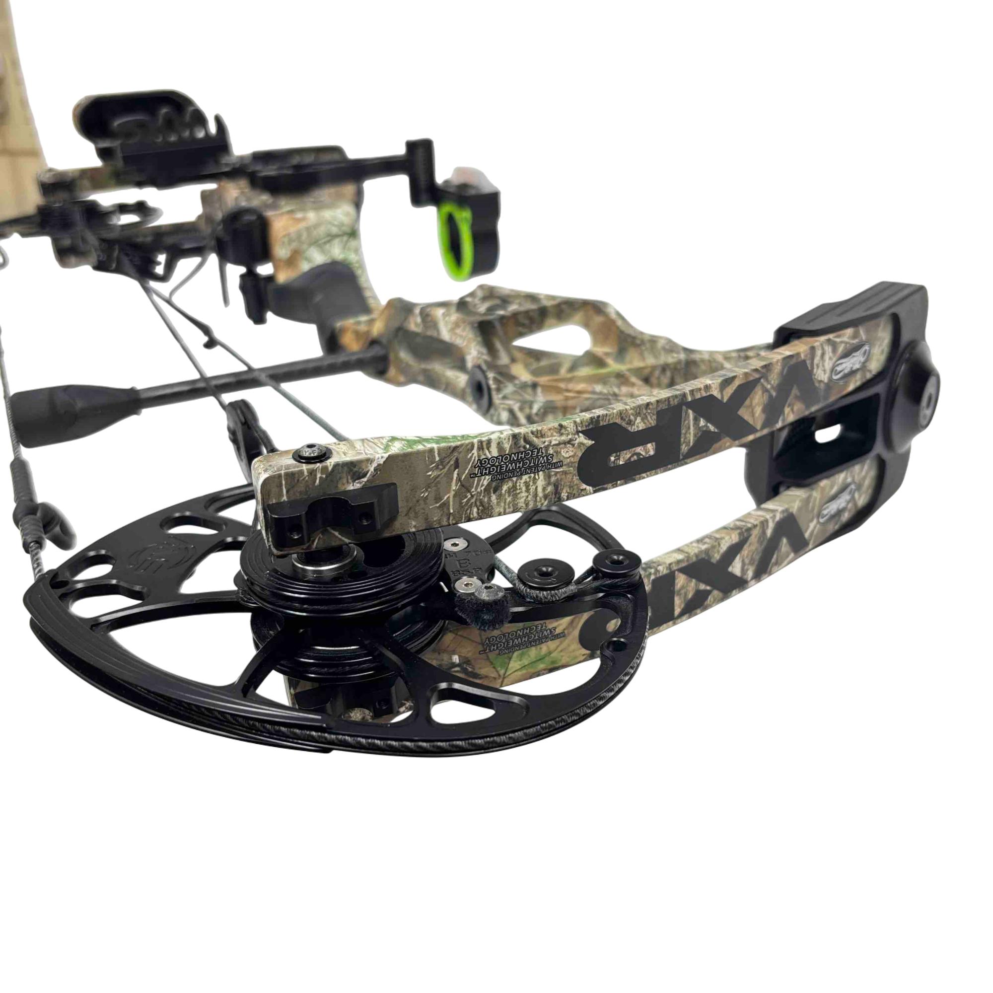The Mathews VXR 28 Compound Bow features advanced Switchweight technology designed to optimize performance and adjustability for archery enthusiasts. This camo-finished bow offers a 28-inch axle-to-axle length with a rugged design that balances power and precision. Engineered for durability and made in the USA, it provides a smooth draw cycle and consistent shooting experience ideal for hunting and target practice.