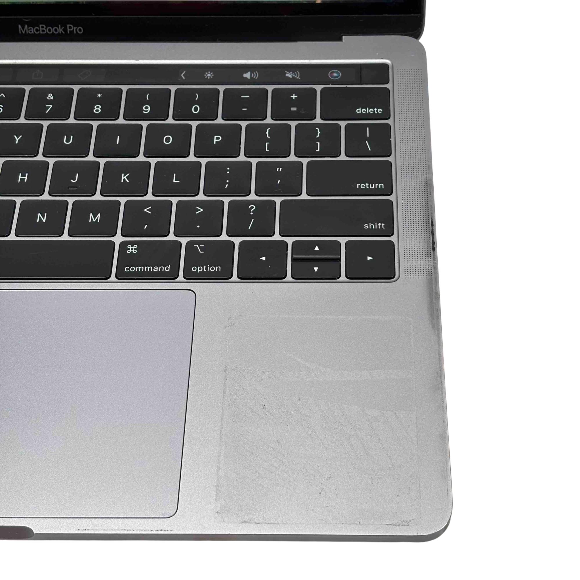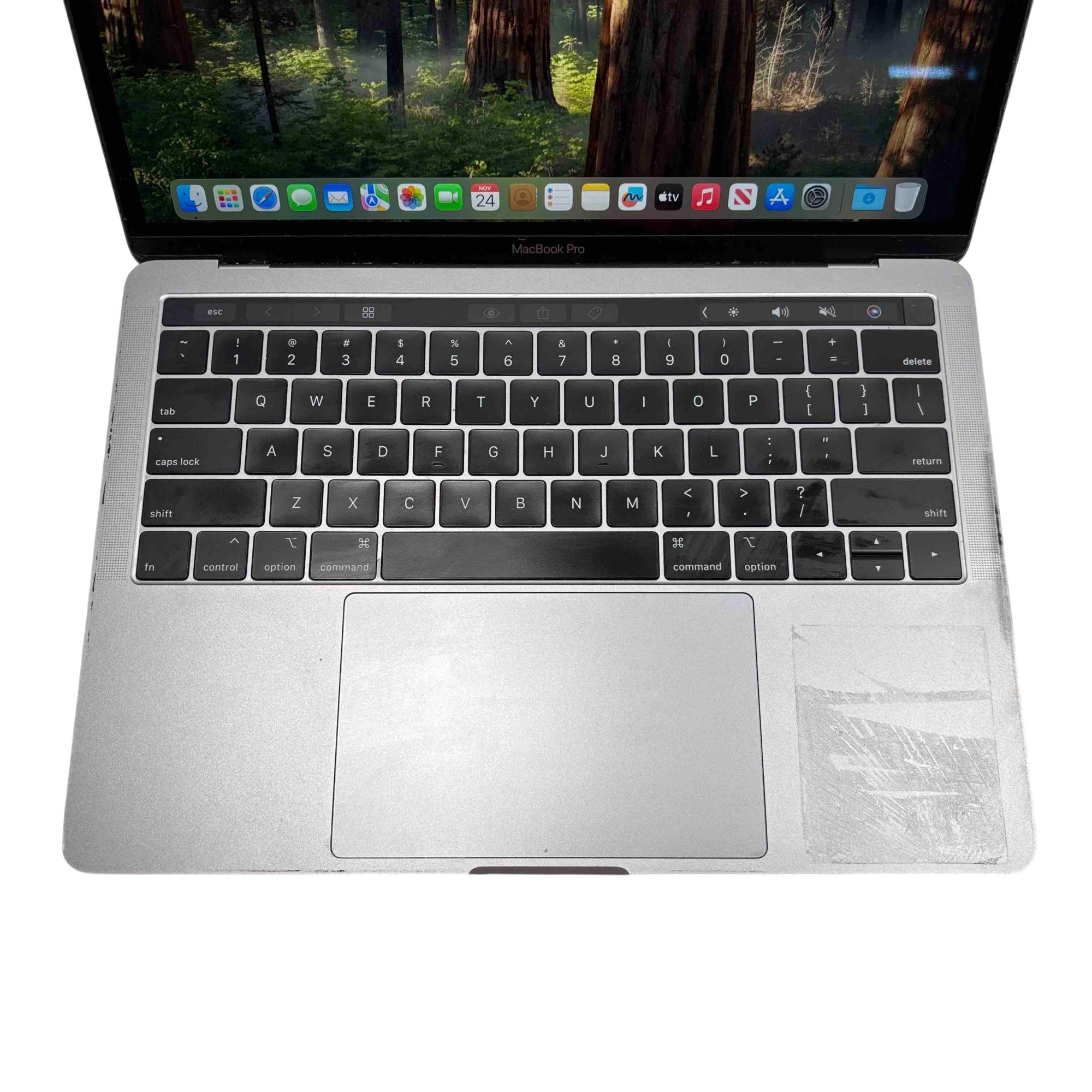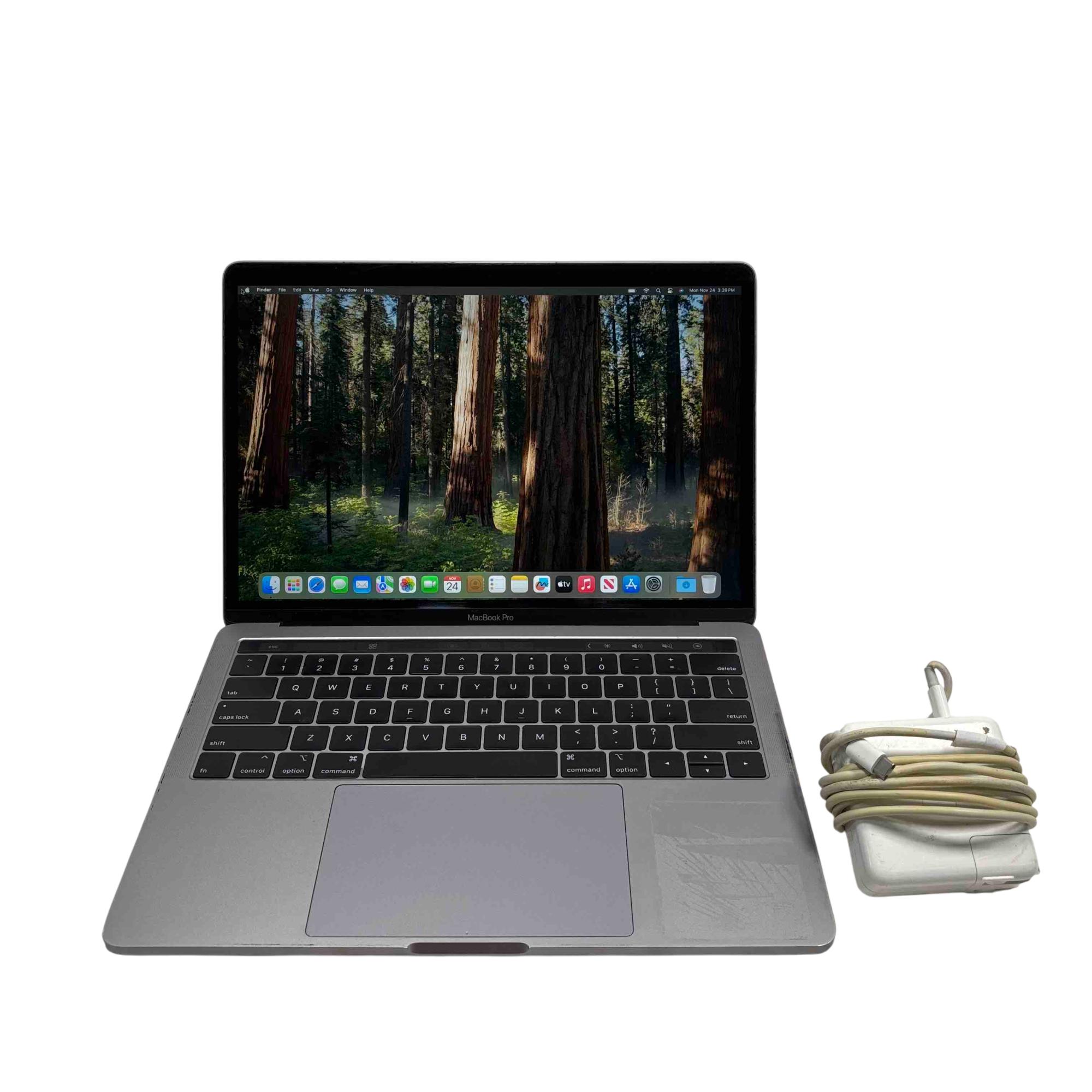 The Apple MacBook Pro 2019 MUHN2LL/A in Space Gray features a 13.3" display and is powered by an Intel Core i5 processor, complemented by 8GB of RAM and a 128GB solid-state drive. This sleek laptop offers a precision keyboard and a vibrant screen ideal for both professional and personal use, blending performance with portability in a refined chassis.