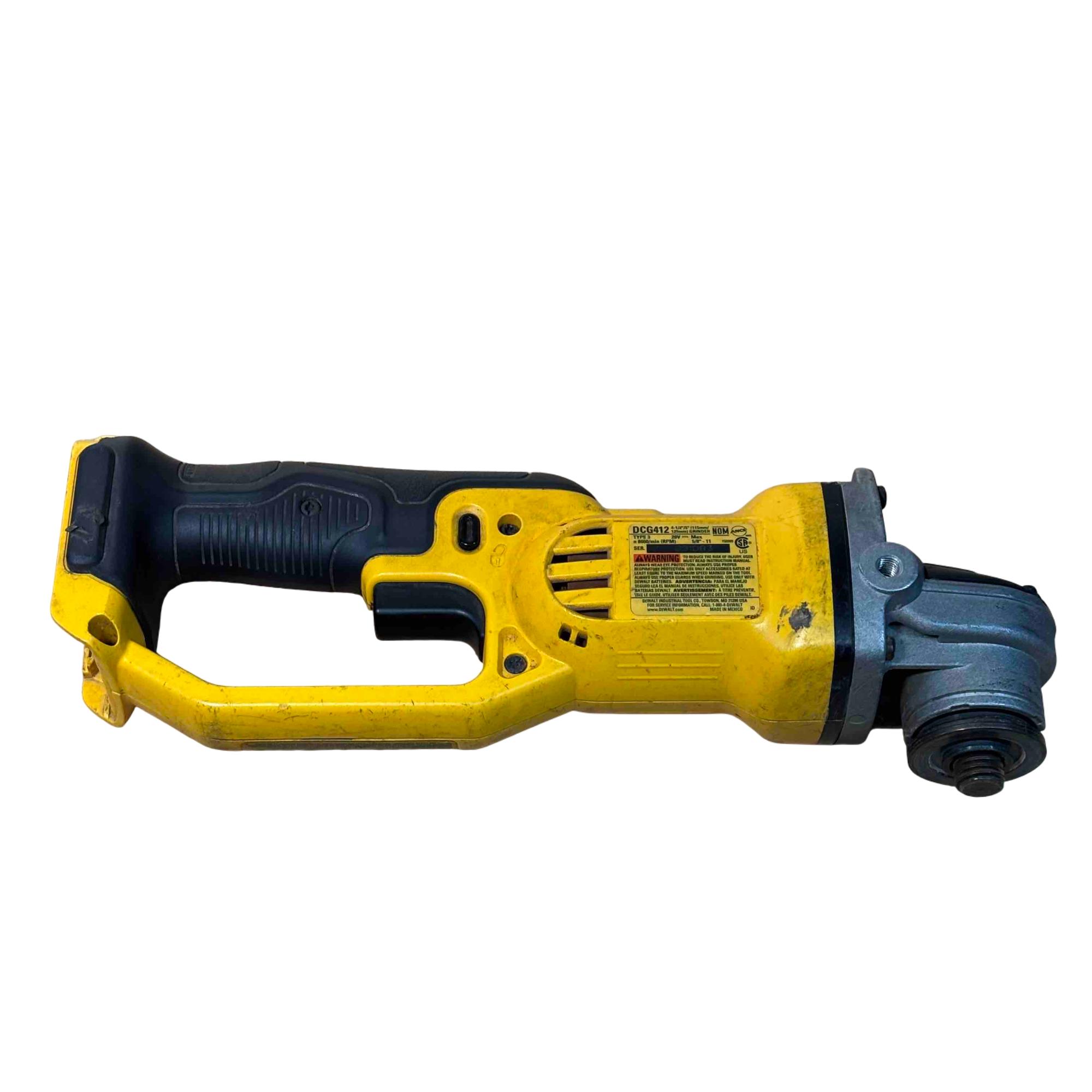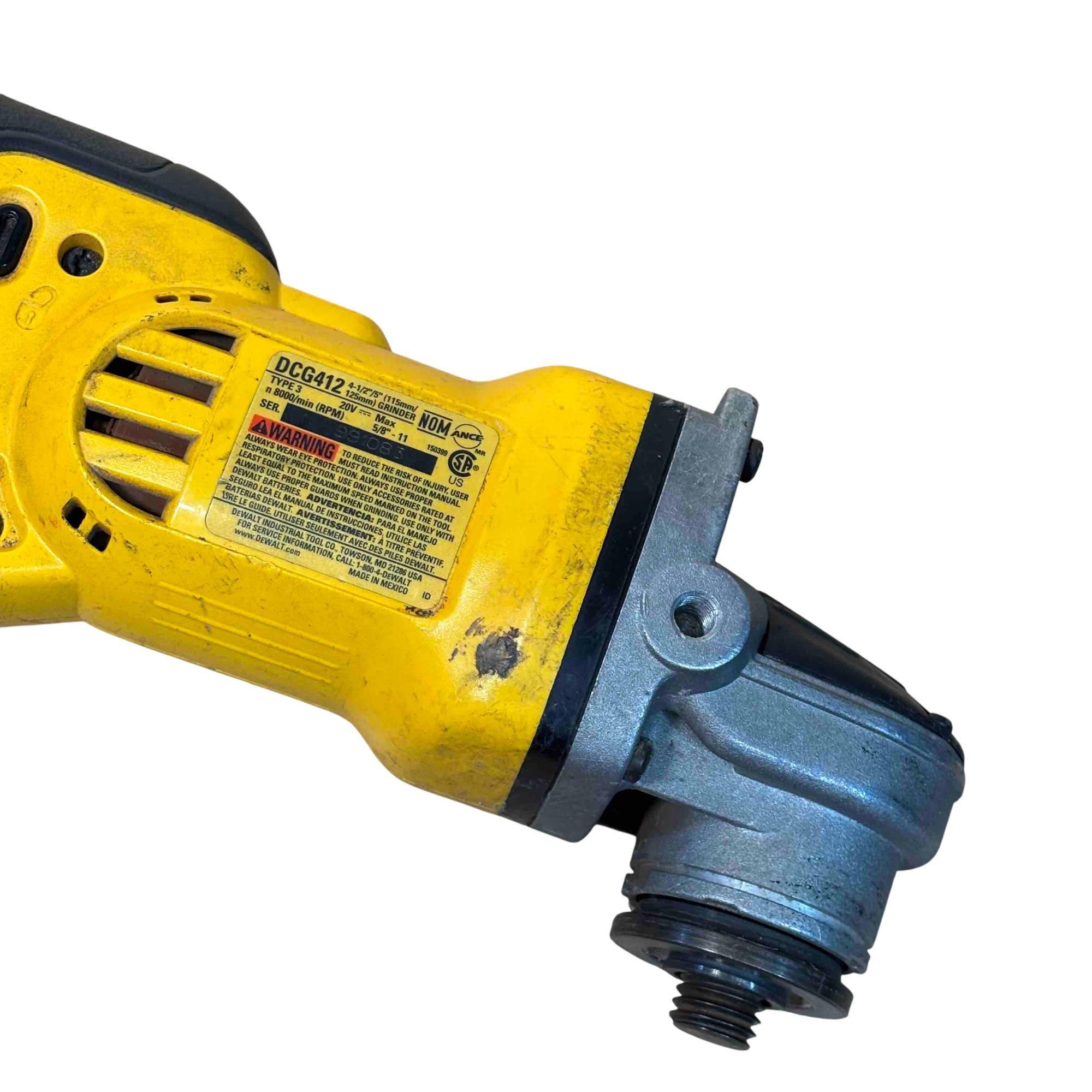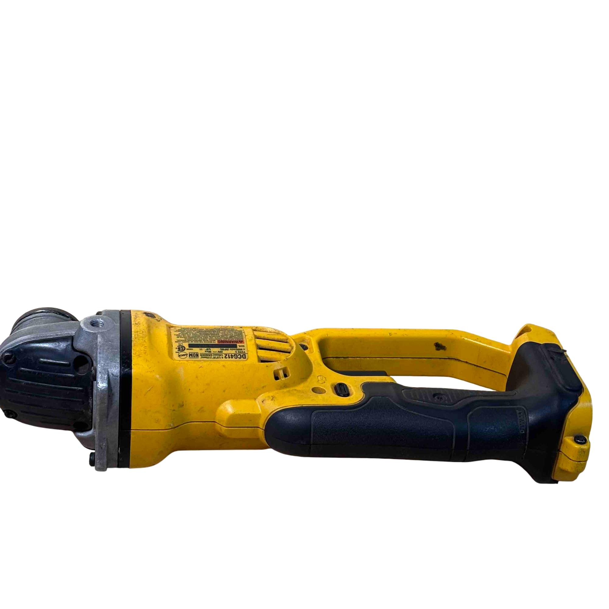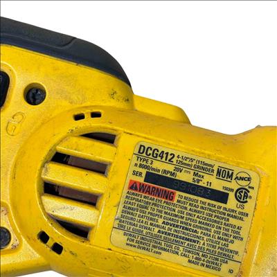 DeWalt DCG412 20V MAX Lithium Ion 4-1/2"/5" Cordless Grinder delivers powerful performance with a compact, lightweight design ideal for precision grinding and cutting tasks. Featuring a durable yellow and black housing, this cordless grinder is engineered for professional use and offers versatile handling for various metal and masonry applications.