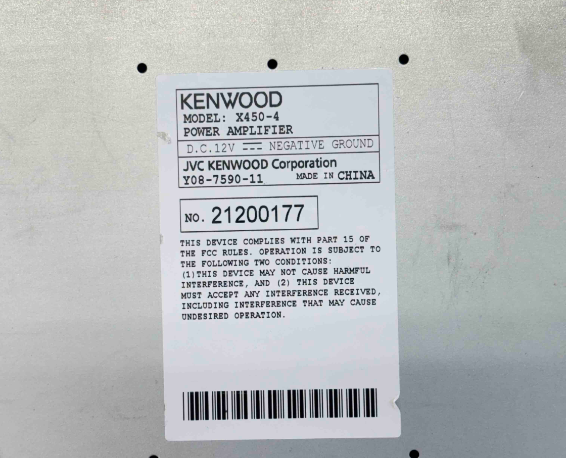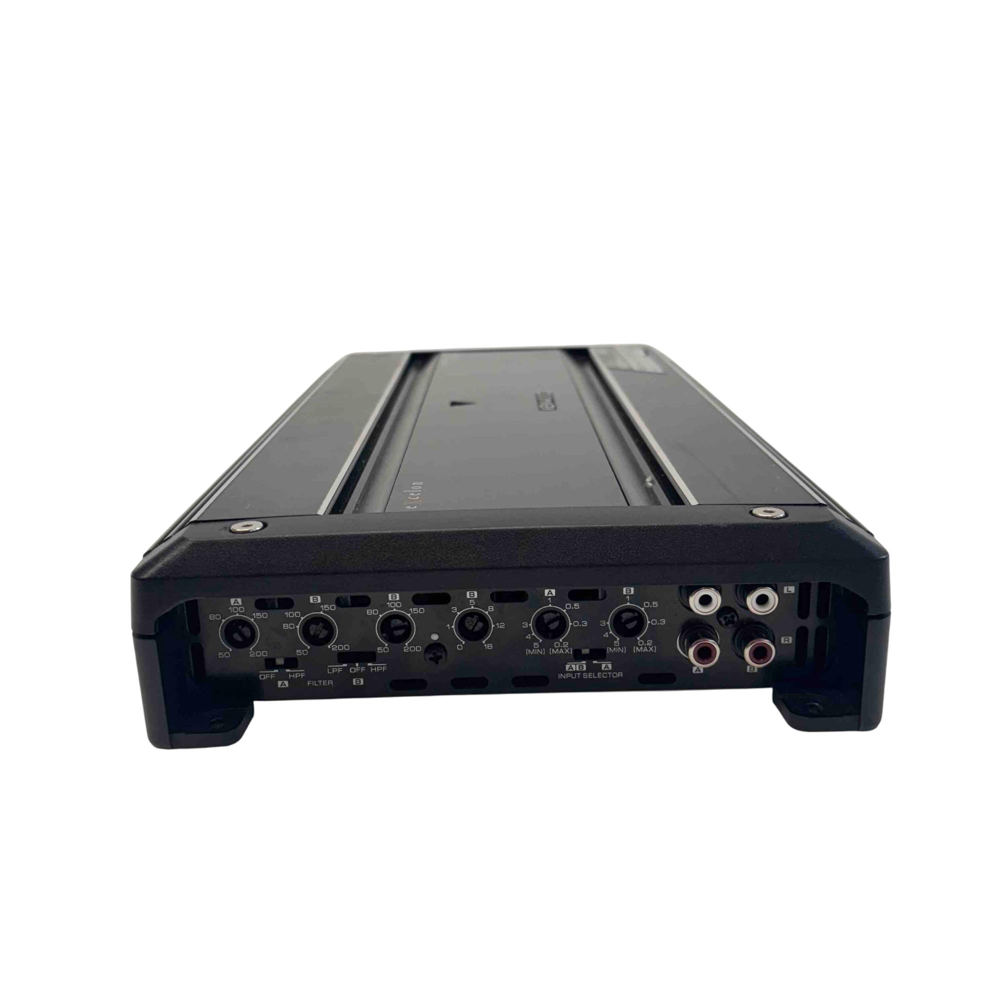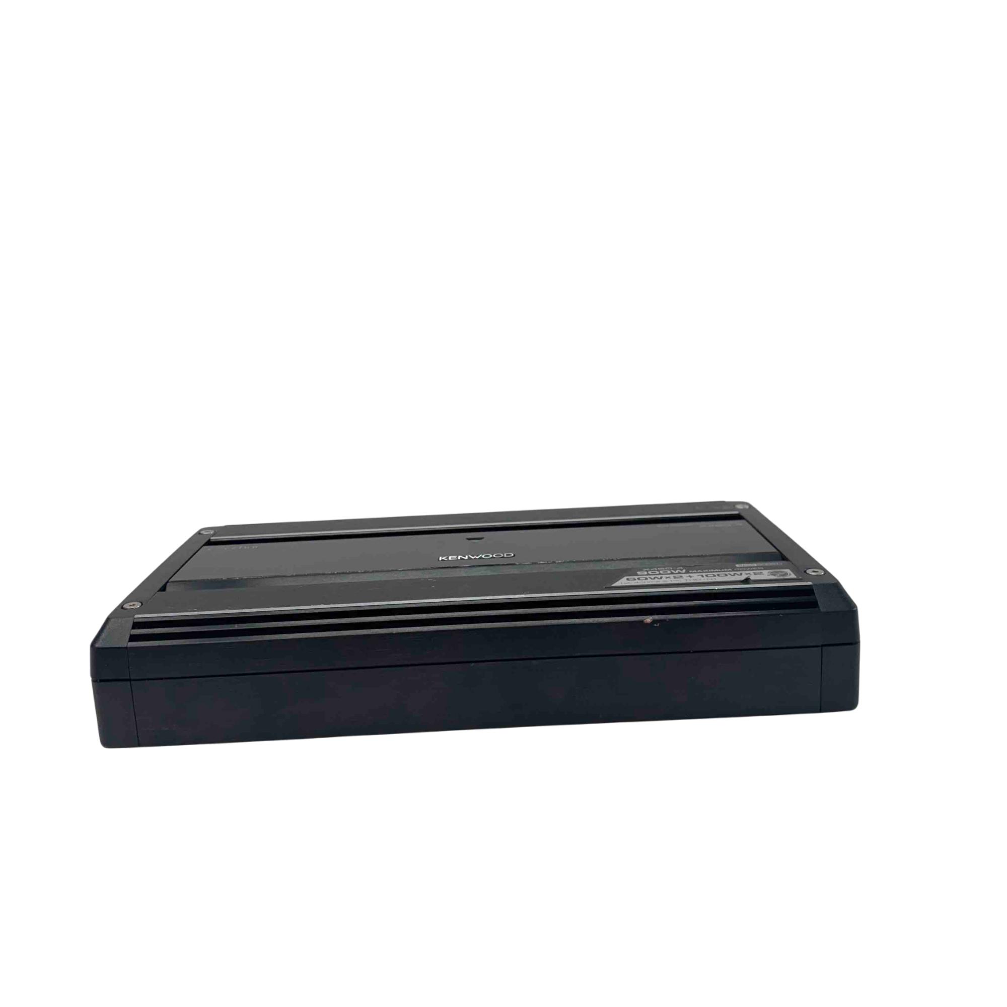 Kenwood Excelon X450-4 4/3 Channel Car Power Amplifier 900W delivers powerful audio performance with a maximum output of 900 watts, featuring 60 watts by 2 and 100 watts by 2 channels at 4 ohms. This amplifier supports bass boost functionality and is designed for high-fidelity sound in automotive audio systems, ensuring clear and dynamic audio reproduction.