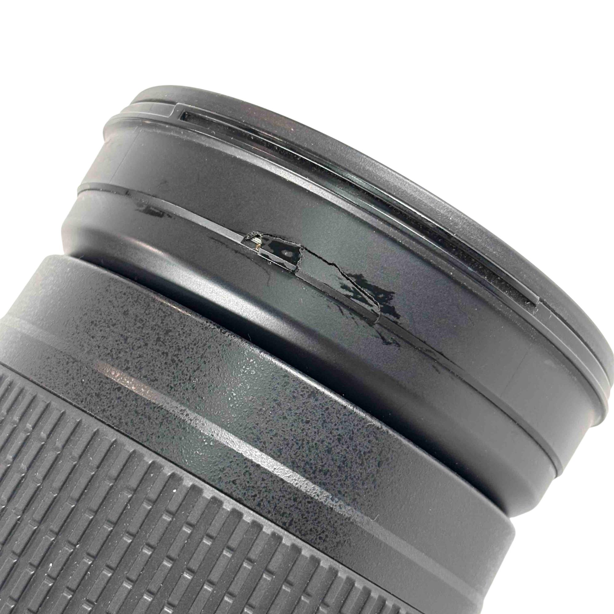 This camera lens is previously owned and inspected fully. There is surface and handling wear on the body from normal use and handling. There is some plastic damage near the front of the lens and it appears to be repaired with super glue. The plastic damage does not affect the functionality of the lens. Lens optics are free of dust and scratches. Tested fully, works well. See images for details.