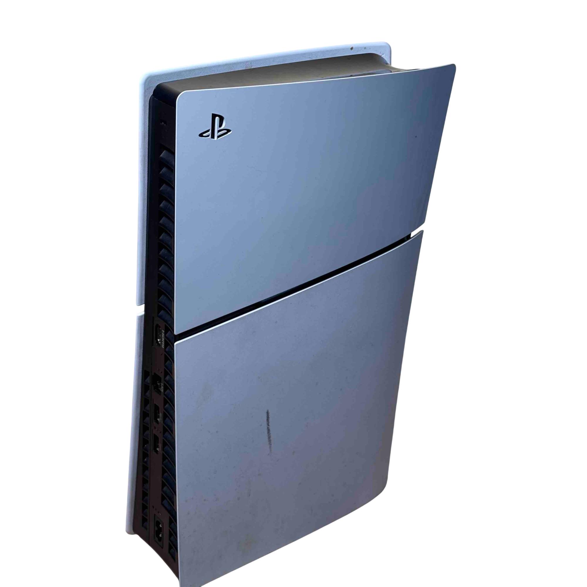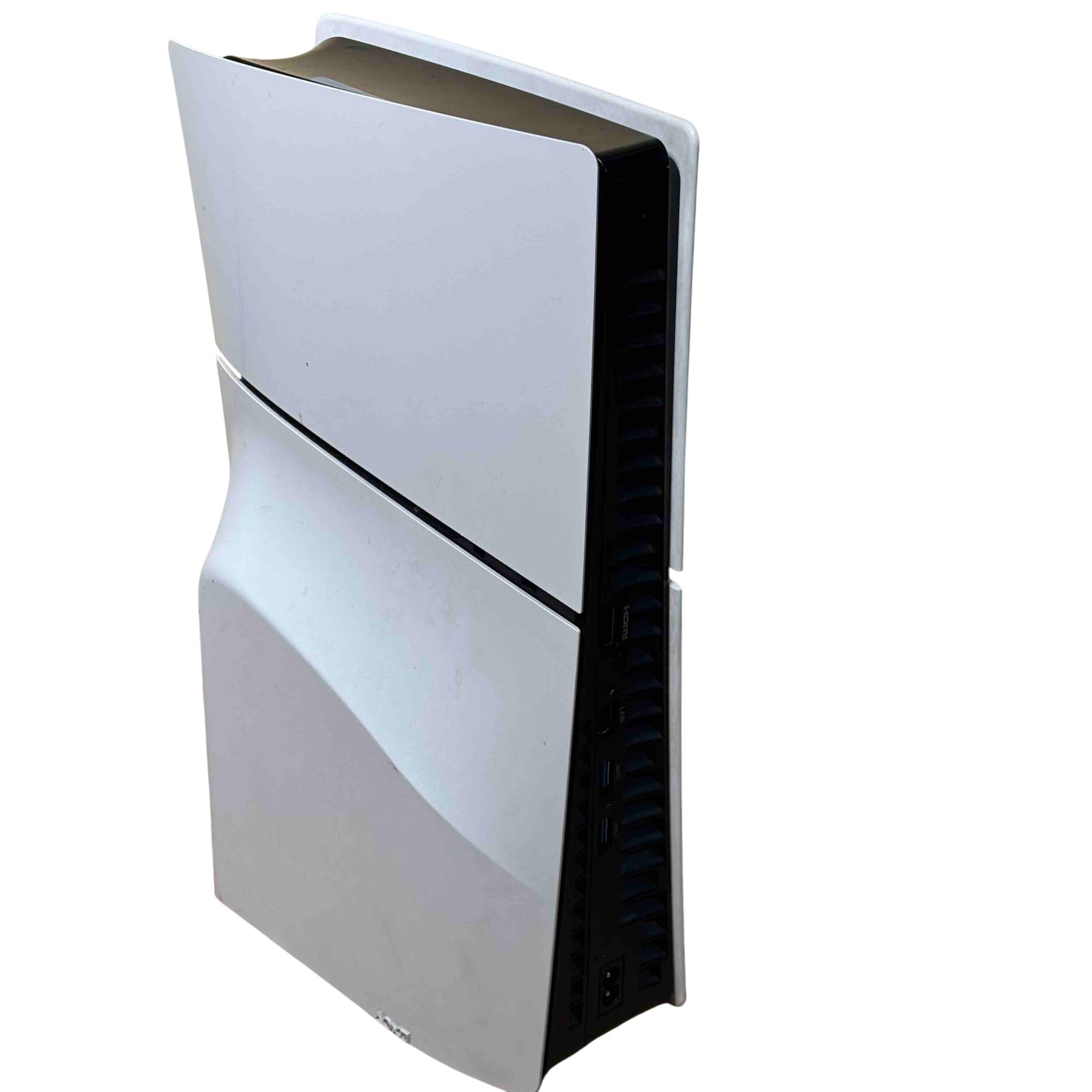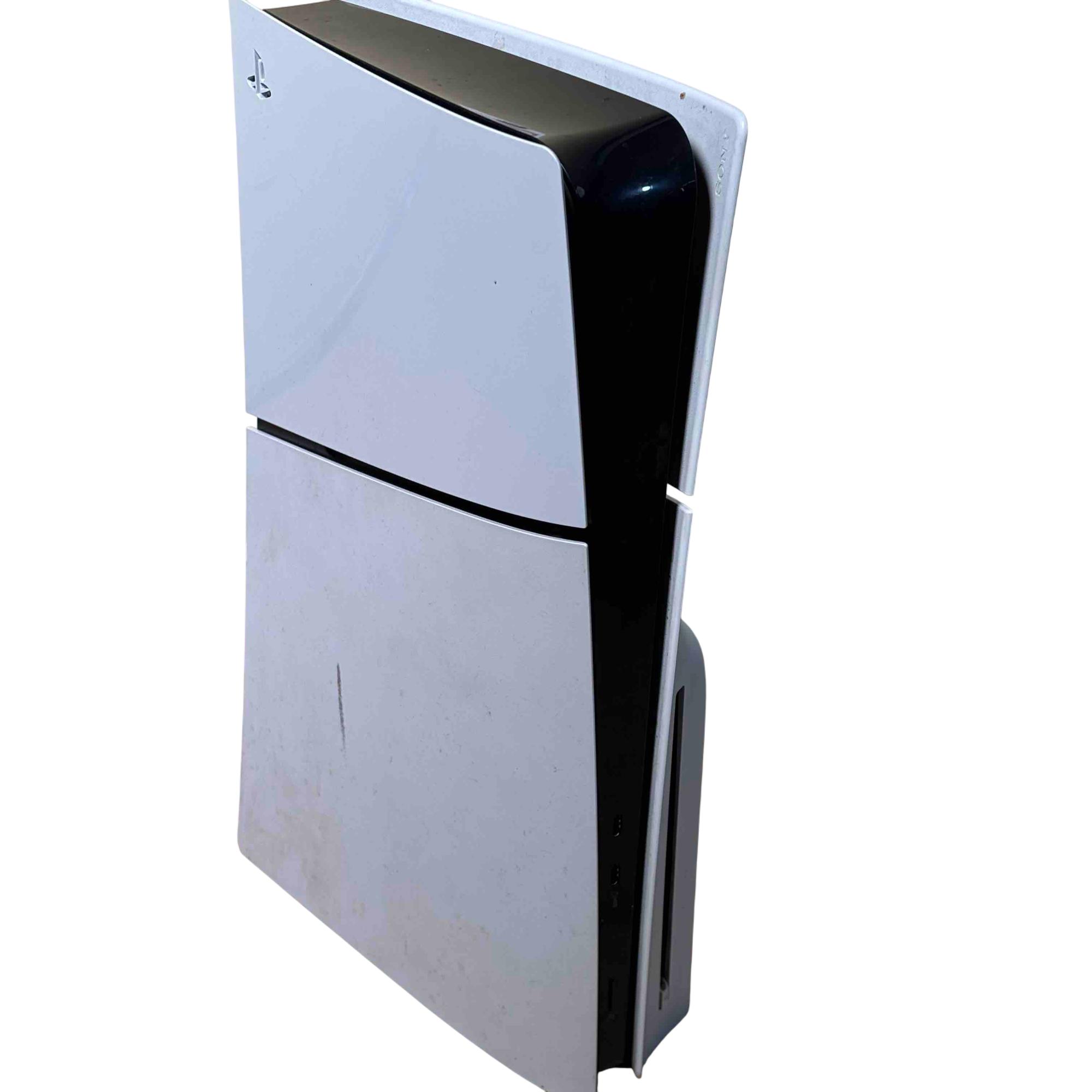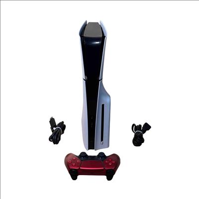 This Sony PlayStation 5 Slim CFI-2015 Disc Edition offers a sleek and compact design with enhanced performance features tailored for immersive gaming. This model includes a distinctive red and black DualSense controller known for its ergonomic design and advanced haptic feedback. Its 1TB internal SSD provides rapid load times and ample storage for a seamless gaming experience.