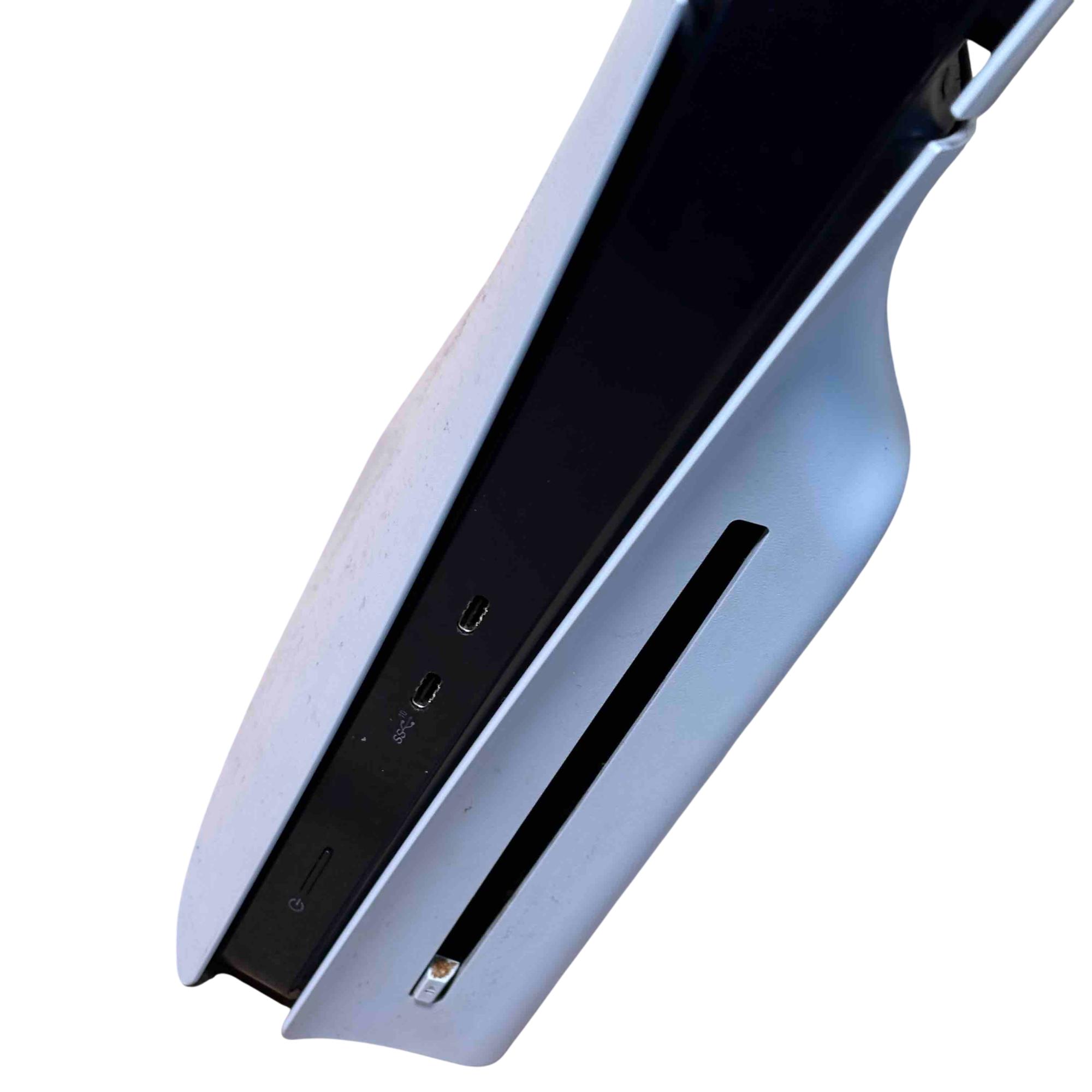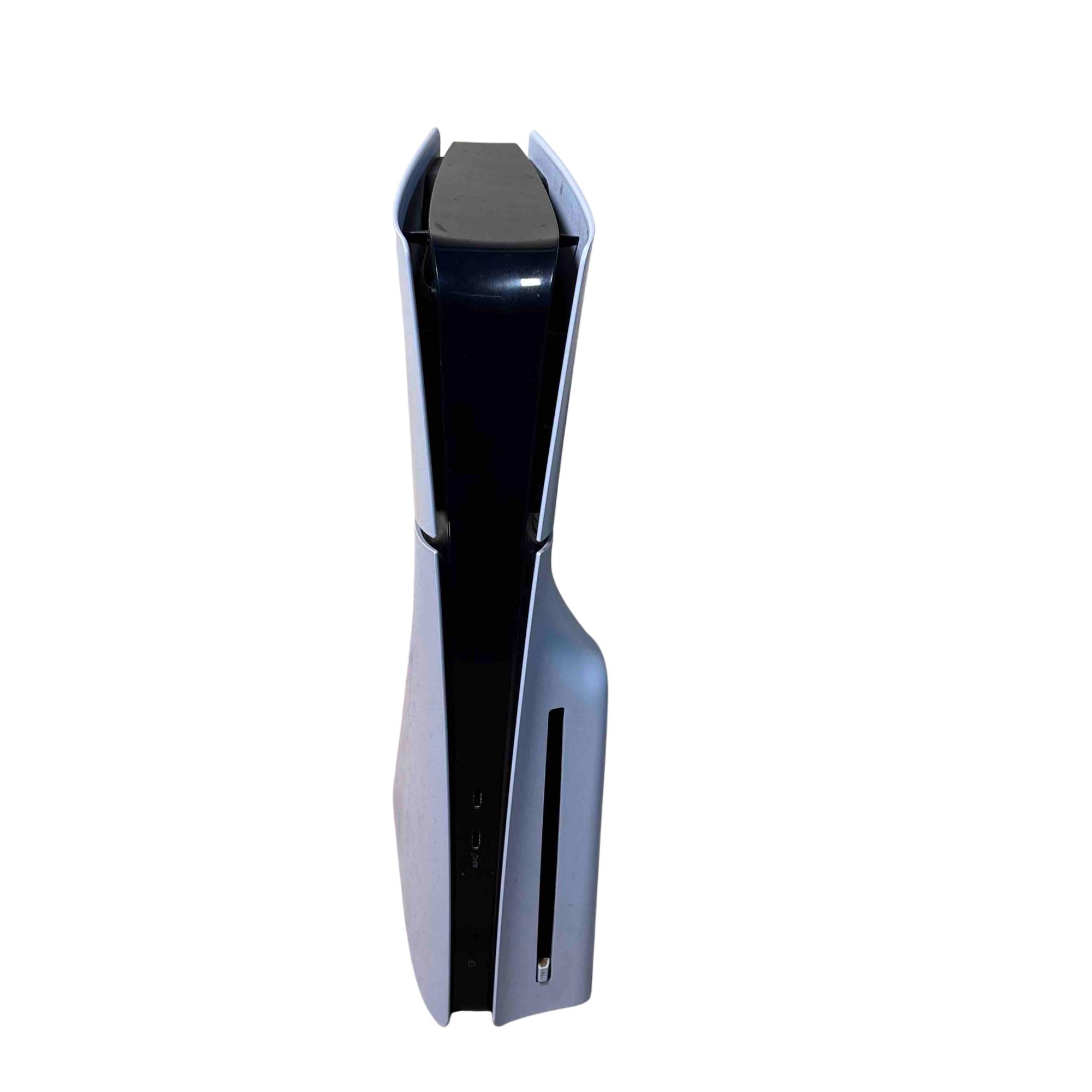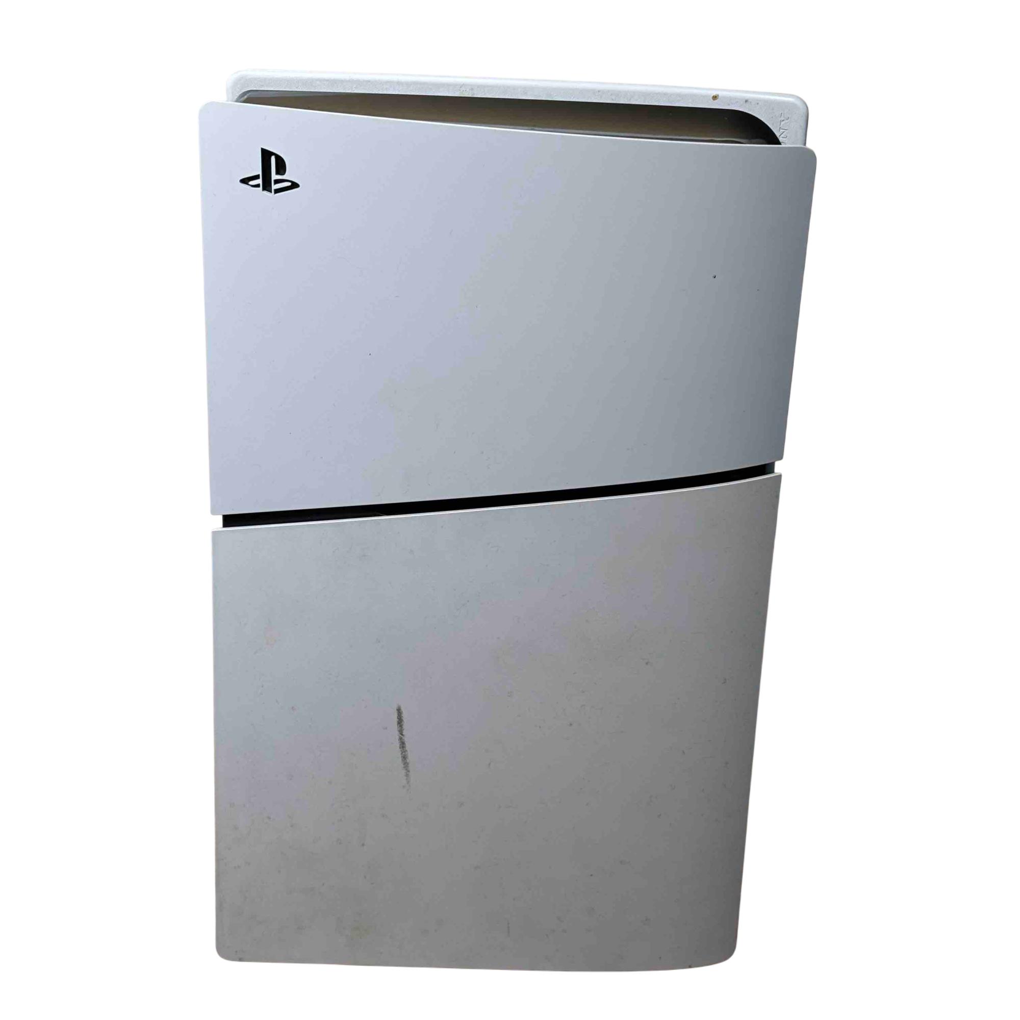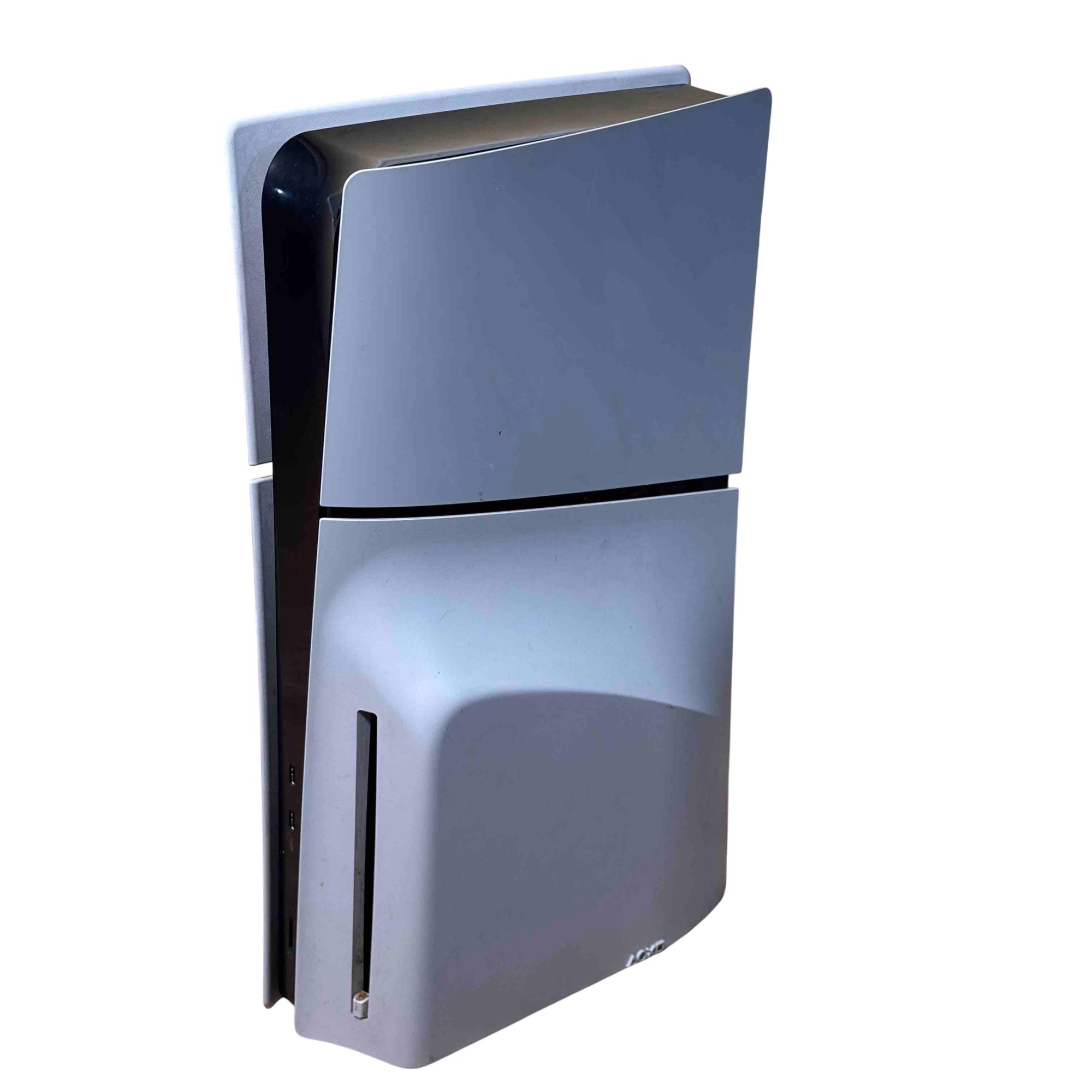 This Sony PlayStation 5 Slim CFI-2015 Disc Edition offers a sleek and compact design with enhanced performance features tailored for immersive gaming. This model includes a distinctive red and black DualSense controller known for its ergonomic design and advanced haptic feedback. Its 1TB internal SSD provides rapid load times and ample storage for a seamless gaming experience.
