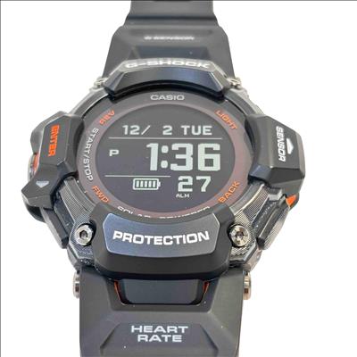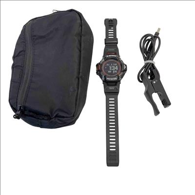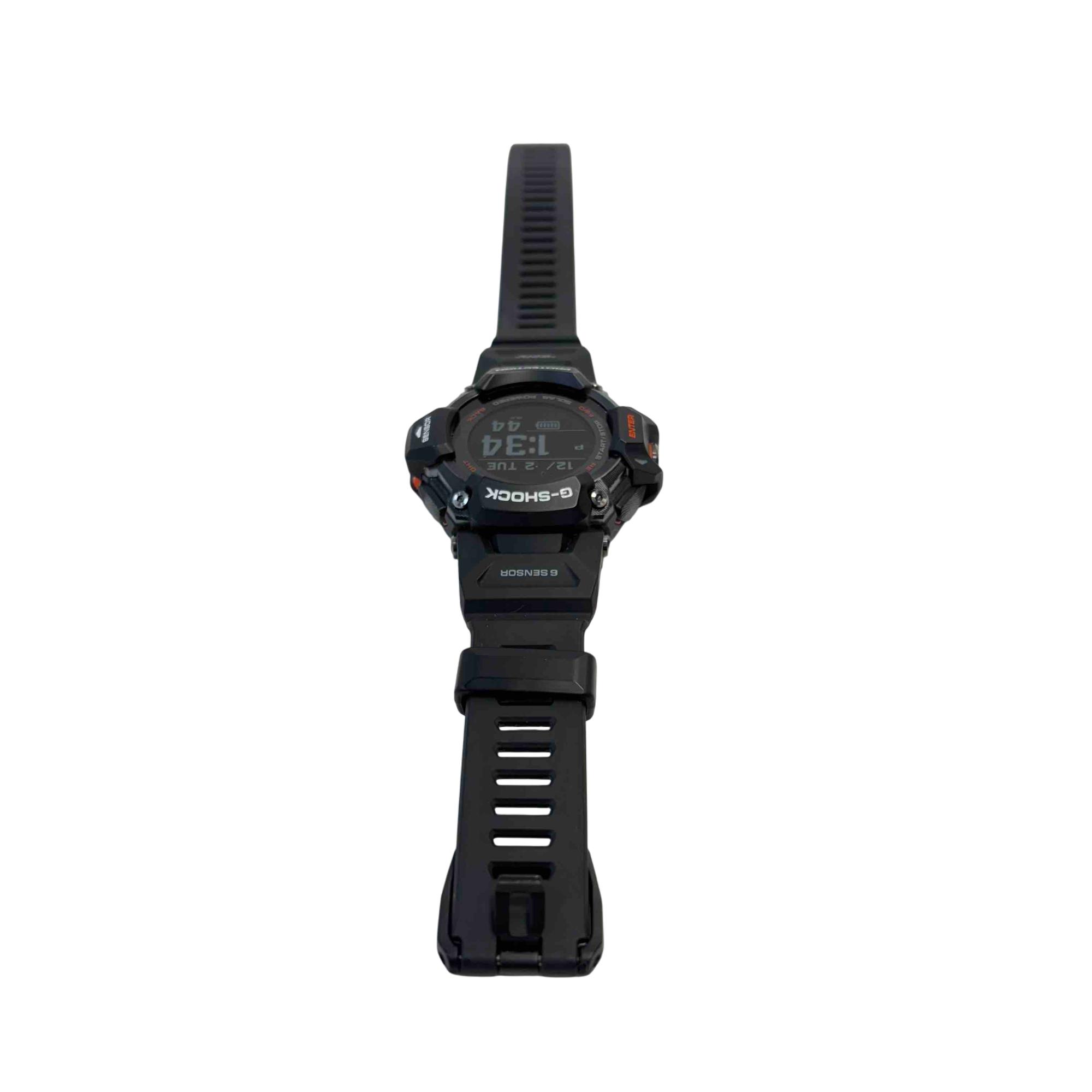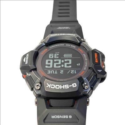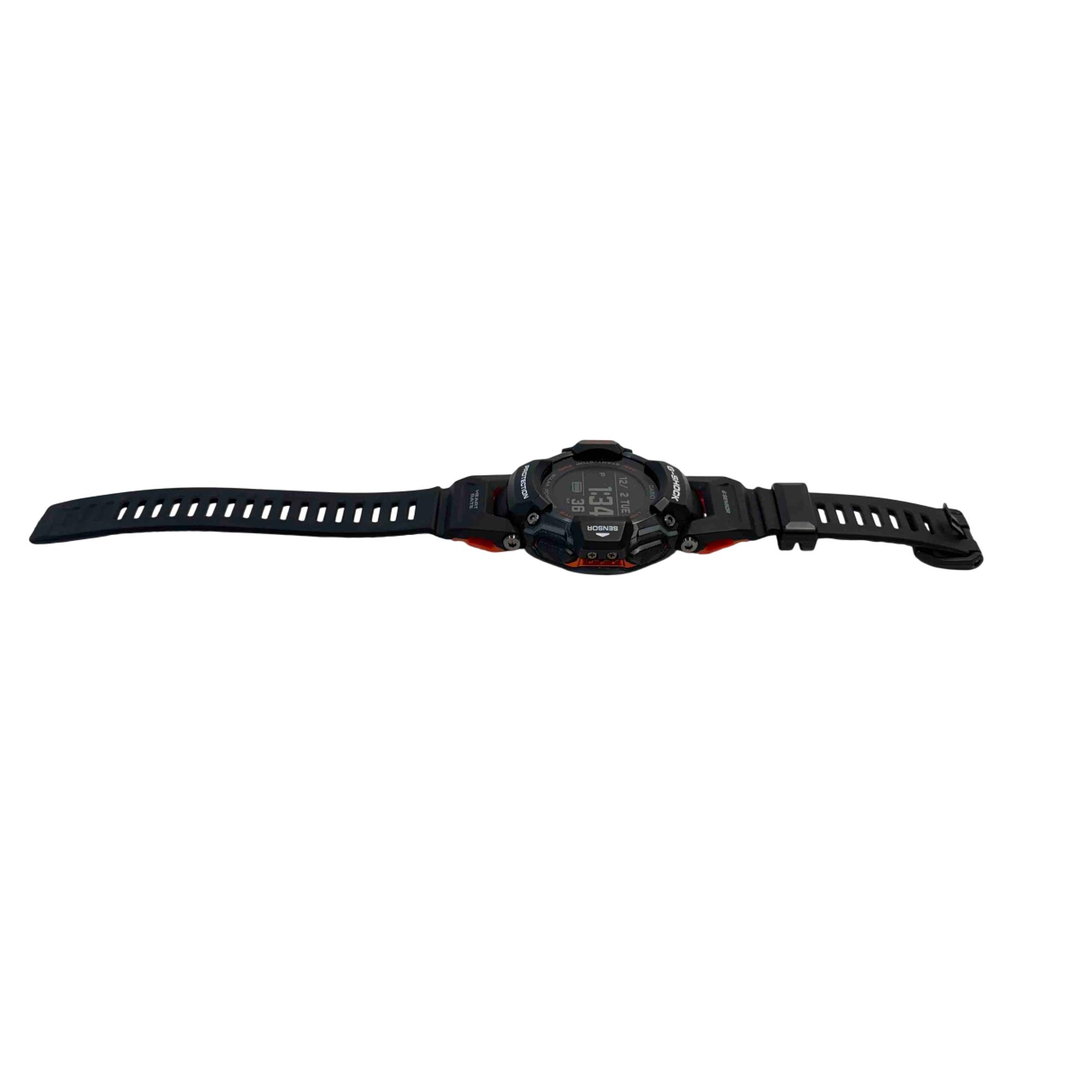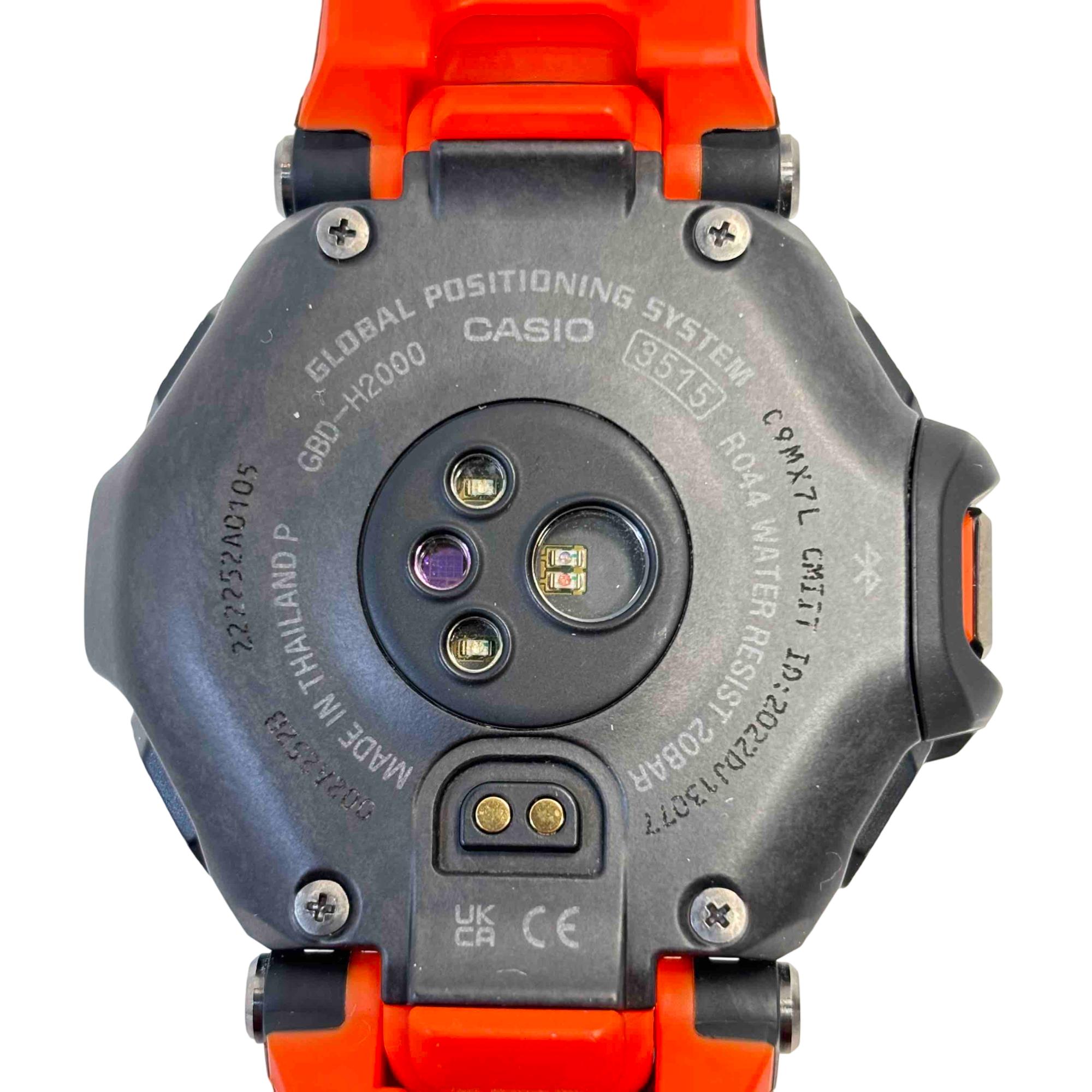 The Casio G-Shock Move GBD-H2000-1A Black Solar-Powered Bluetooth GPS Sport Watch features a durable black metallic case with red accents on the digital dial. Designed for multisport activities, it includes advanced sensors and GPS functionality to monitor performance and heart rate. This rugged watch combines solar-powered technology with Bluetooth connectivity for enhanced fitness tracking and outdoor use.