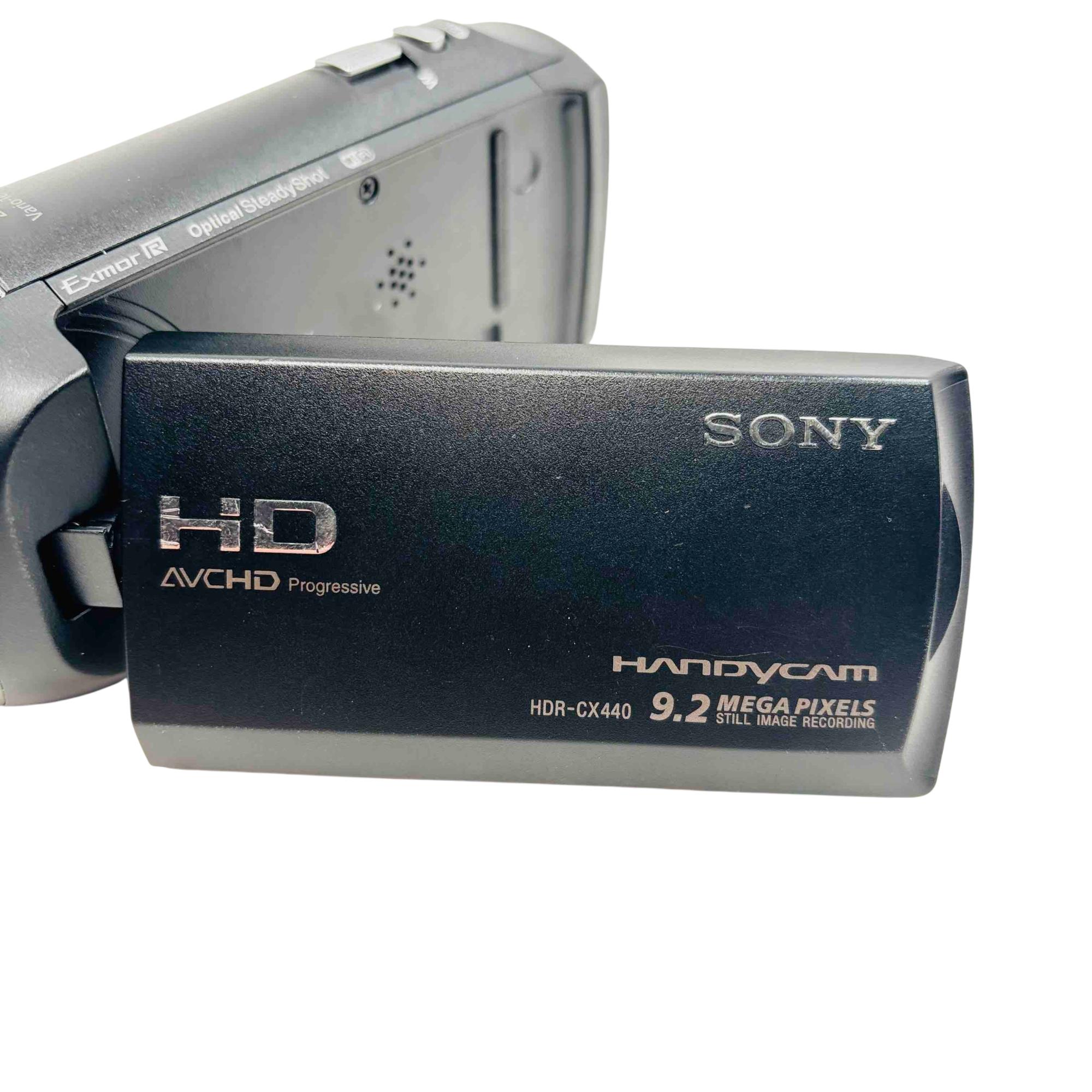 Sony HDR-CX440 Handycam Camcorder features a ZEISS lens paired with an Exmor R CMOS sensor, delivering sharp 9.2-megapixel Full HD video with AVCHD progressive recording. This camcorder includes Optical SteadyShot image stabilization and HDMI output, making it ideal for capturing smooth, high-quality footage in various settings.