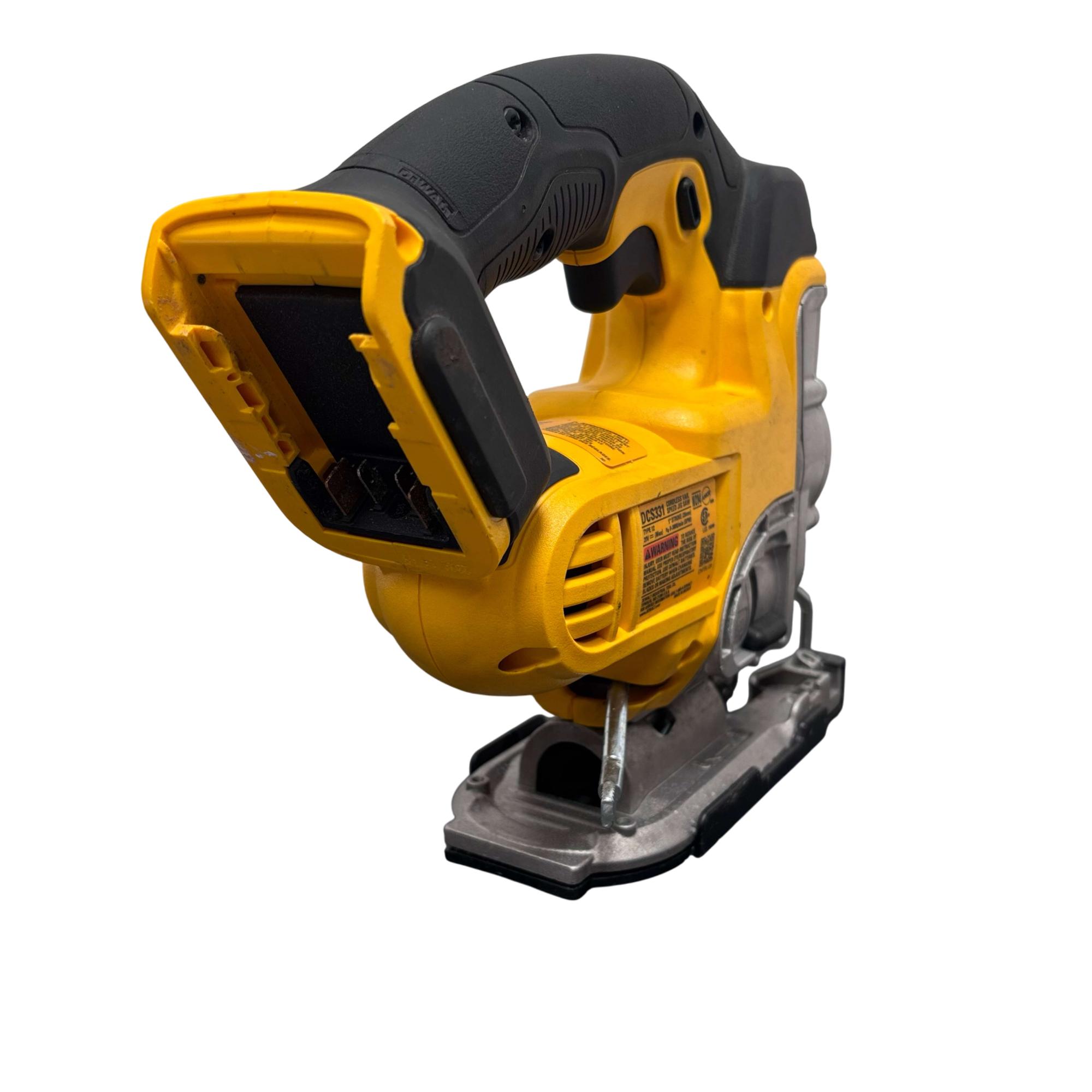 DeWalt DCS331B 20V MAX cordless jigsaw delivers powerful and precise cutting performance with its variable speed trigger and ergonomic design. This yellow and black jigsaw features a compact body for improved maneuverability and a robust 20V lithium-ion battery system compatible with DeWalt tools. Ideal for both professional and DIY use, it excels at making straight, curved, and intricate cuts on various materials.