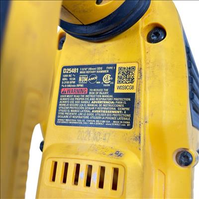 DEWALT D25481 1-9/16" SDS-Max Rotary Hammer Drill is a high-performance corded tool designed for heavy-duty masonry drilling and chiseling. Featuring a powerful 10.5 Amp motor, it delivers robust impact energy to efficiently handle tough concrete and stone applications. Its SDS-Max chuck system ensures secure bit retention and quick bit changes, making it ideal for professional contractors and construction projects.