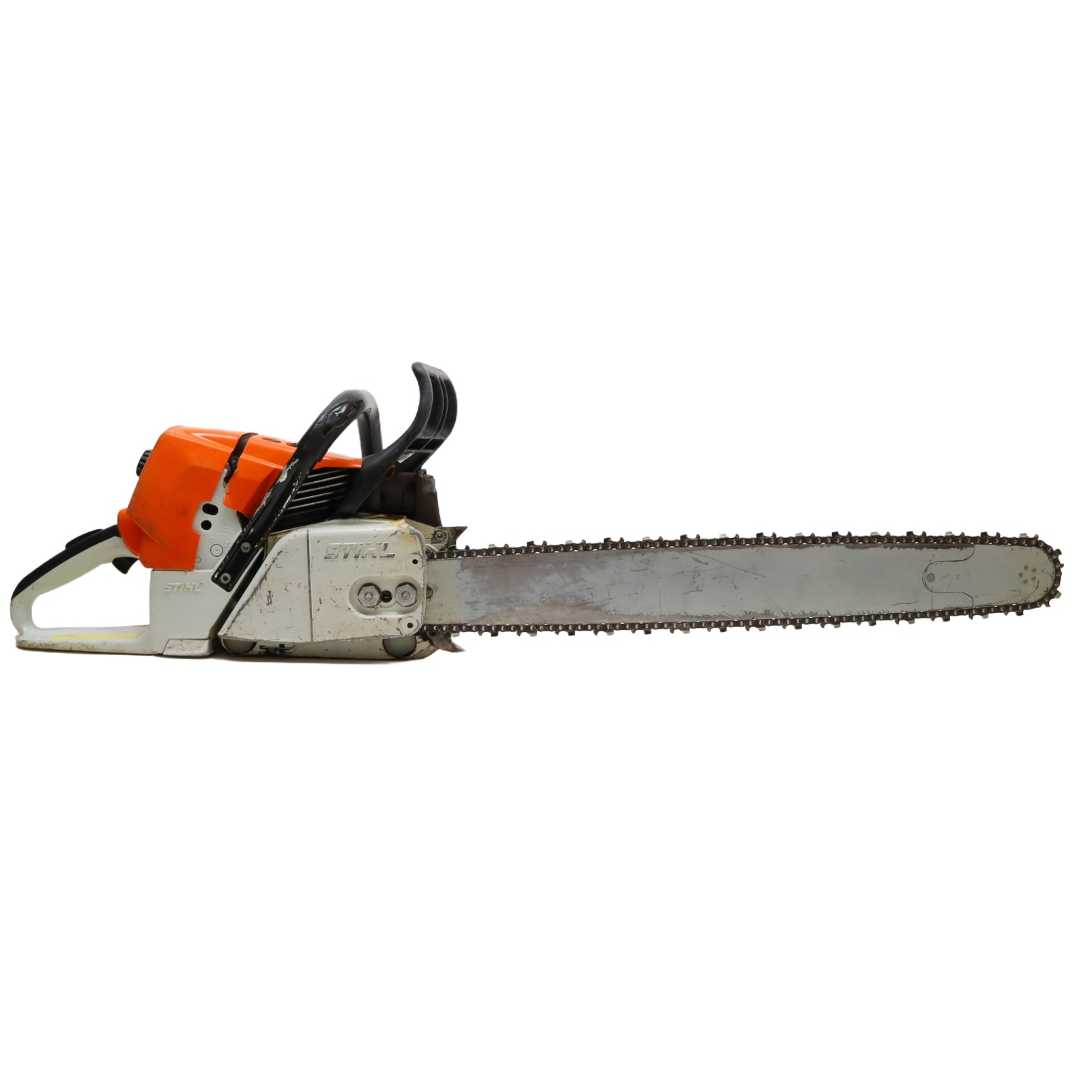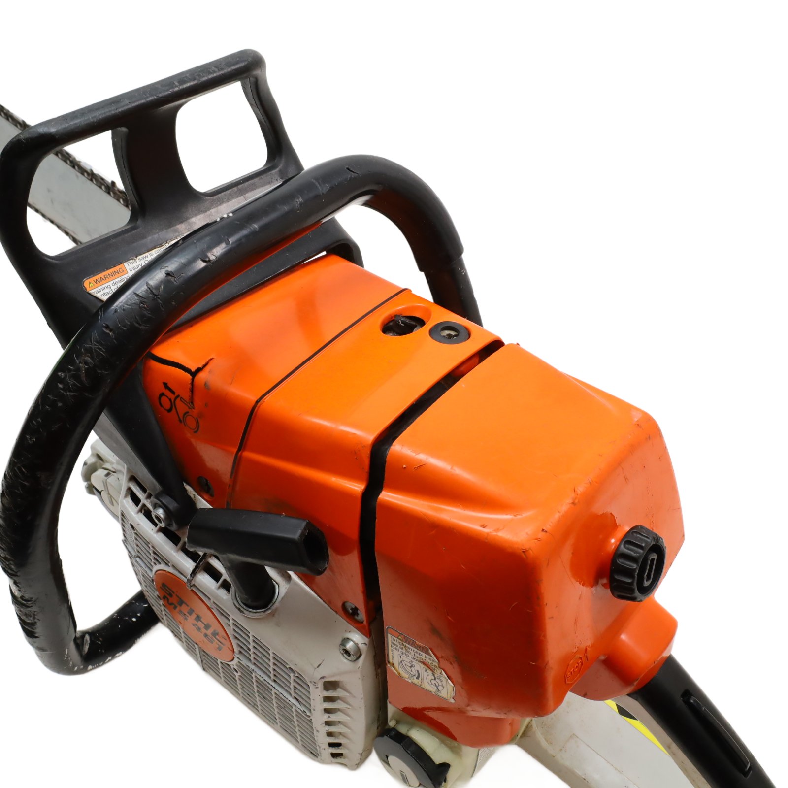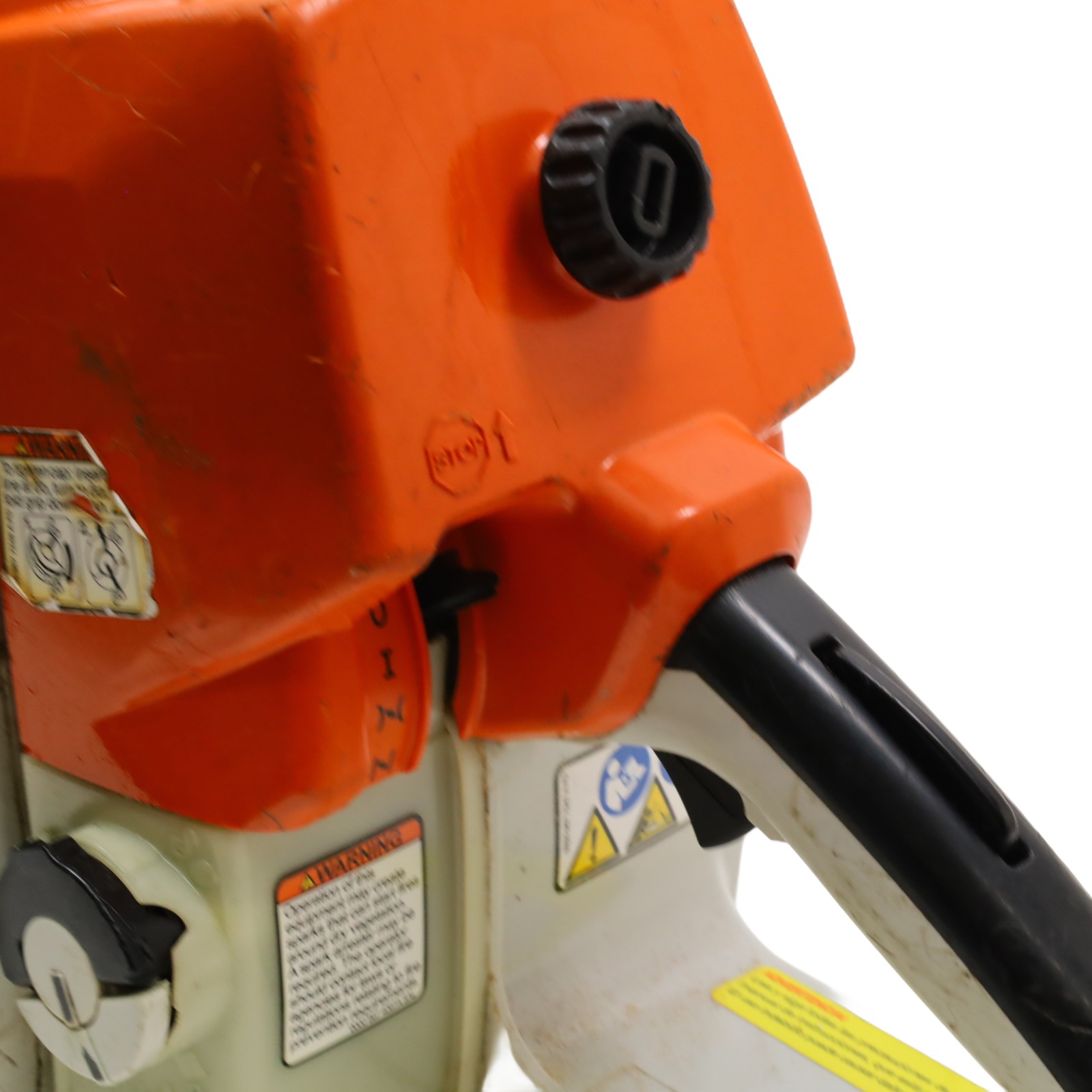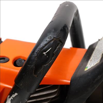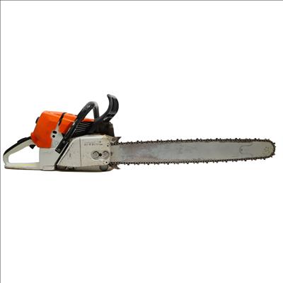 A 76.5cc gas-powered chainsaw designed for demanding cutting tasks and extended use. It includes an ElastoStart handle that incorporates a shock-absorbing grip for smoother pull starts, along with a decompression valve that reduces cylinder pressure during cranking to aid starting. The IntelliCarb compensating carburetor maintains proper engine RPM by adjusting the air–fuel ratio as the air filter becomes restricted, while the heavy-duty HD-2 filter extends the time between cleanings. A side-access chain tensioner allows straightforward adjustments with a bar wrench, and low-vibration handling improves comfort during operation. Additional conveniences include toolless fuel and oil caps with retainers and reduced-emission engine technology designed to meet EPA and CARB standards.