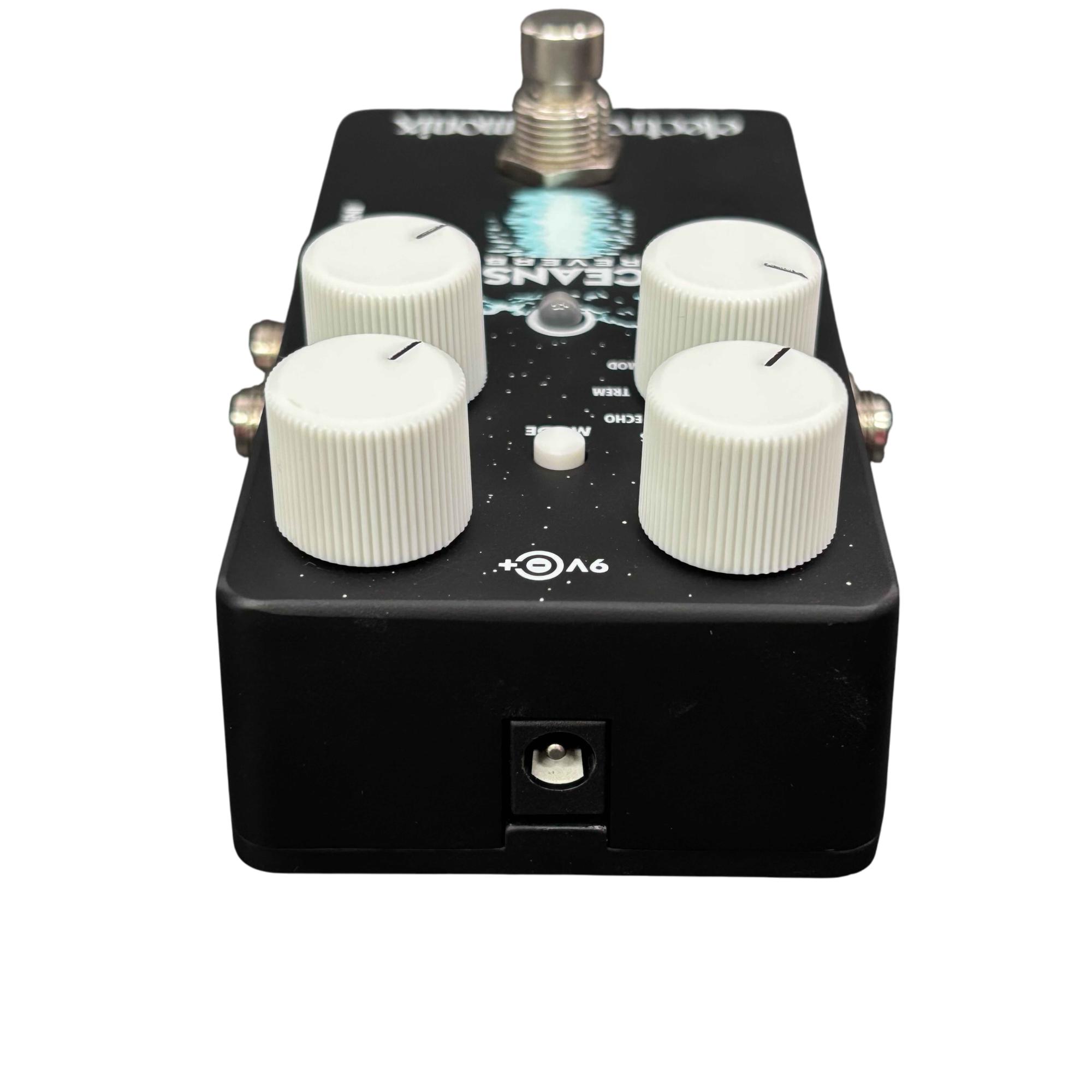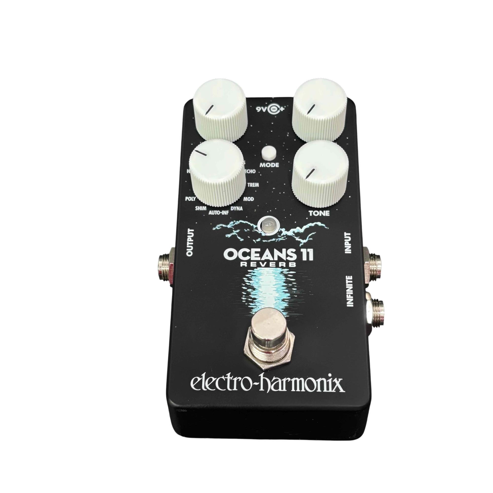 Electro-Harmonix Oceans 11 Reverb Pedal delivers a versatile range of reverb effects including spring, plate, hall, and ambient reverbs with intuitive controls for tone, mix, and decay. Its black and silver design features clearly labeled knobs and switches that allow musicians to shape rich, immersive soundscapes suitable for various playing styles and genres. This pedal is engineered to provide professional-quality reverberation and seamless integration into any effects setup.