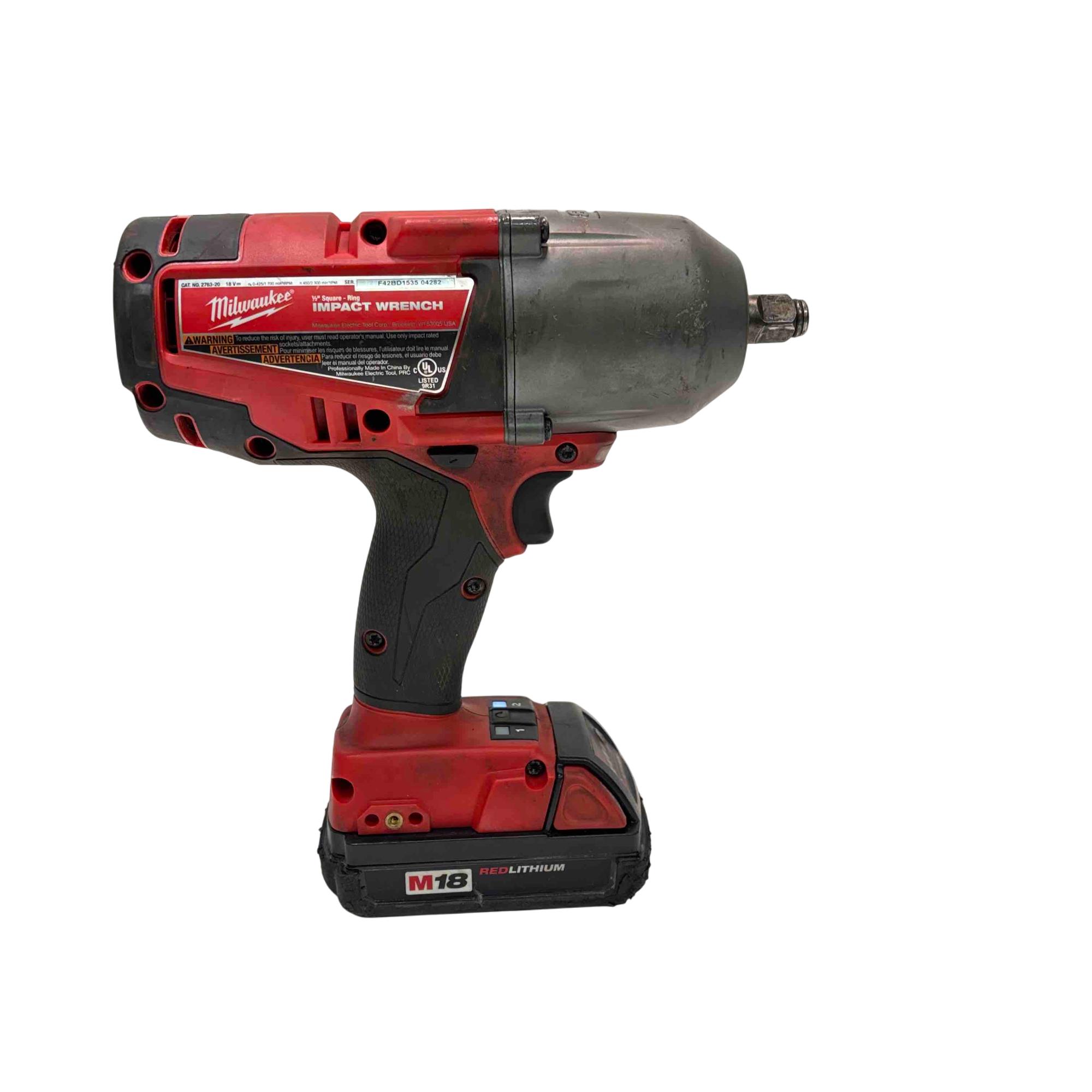 Milwaukee M18 FUEL 1/2" High Torque Impact Wrench Model 2763-20 delivers powerful performance with an 18V brushless motor capable of 0-1700 and 450-2300 RPM speeds. Engineered for professional use, this cordless impact wrench features a durable design with a friction ring and provides superior torque output for heavy-duty fastening applications. Optimized for efficient operation, it enhances productivity across automotive and industrial tasks.