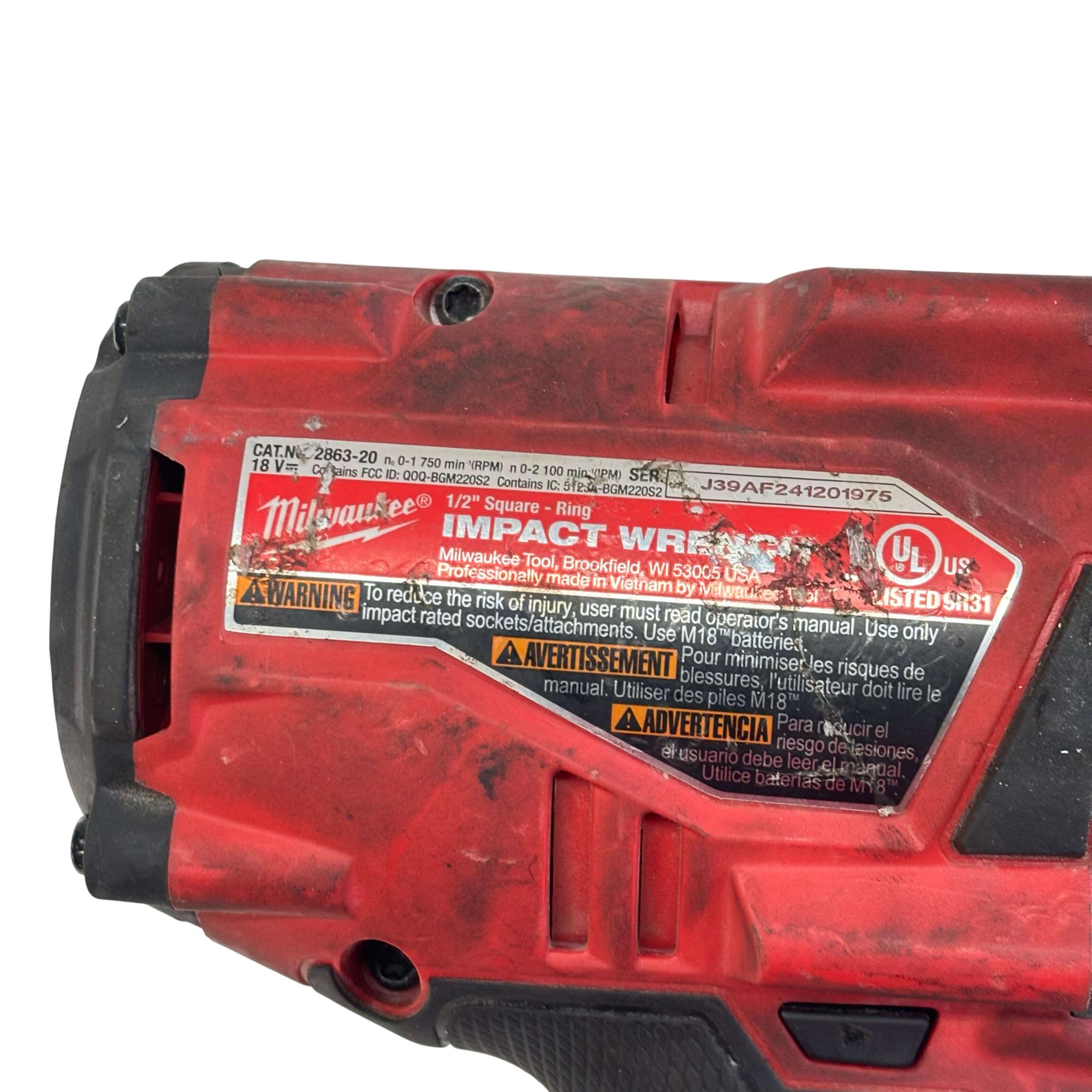 Milwaukee M18 FUEL 2863-20 18V Lithium-Ion Brushless Cordless 1/2" High-Torque Impact Wrench with ONE-KEY offers advanced cordless power with a brushless motor for increased efficiency and durability. Designed for high torque applications, this tool features a compact and ergonomic design optimized for professional use and enhanced productivity in demanding environments.