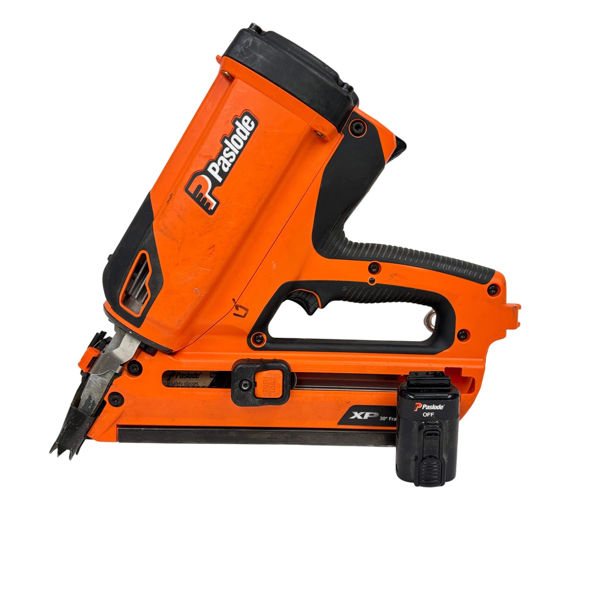 The Paslode CFN325XP 30° Cordless XP Framing Nailer is a powerful, cordless framing tool designed for efficient and precise nail driving at a 30-degree angle. Engineered for professional use, this nailer features a robust build with an ergonomic design that enhances handling and durability on job sites. Its cordless operation provides greater mobility and ease of use for framing tasks.